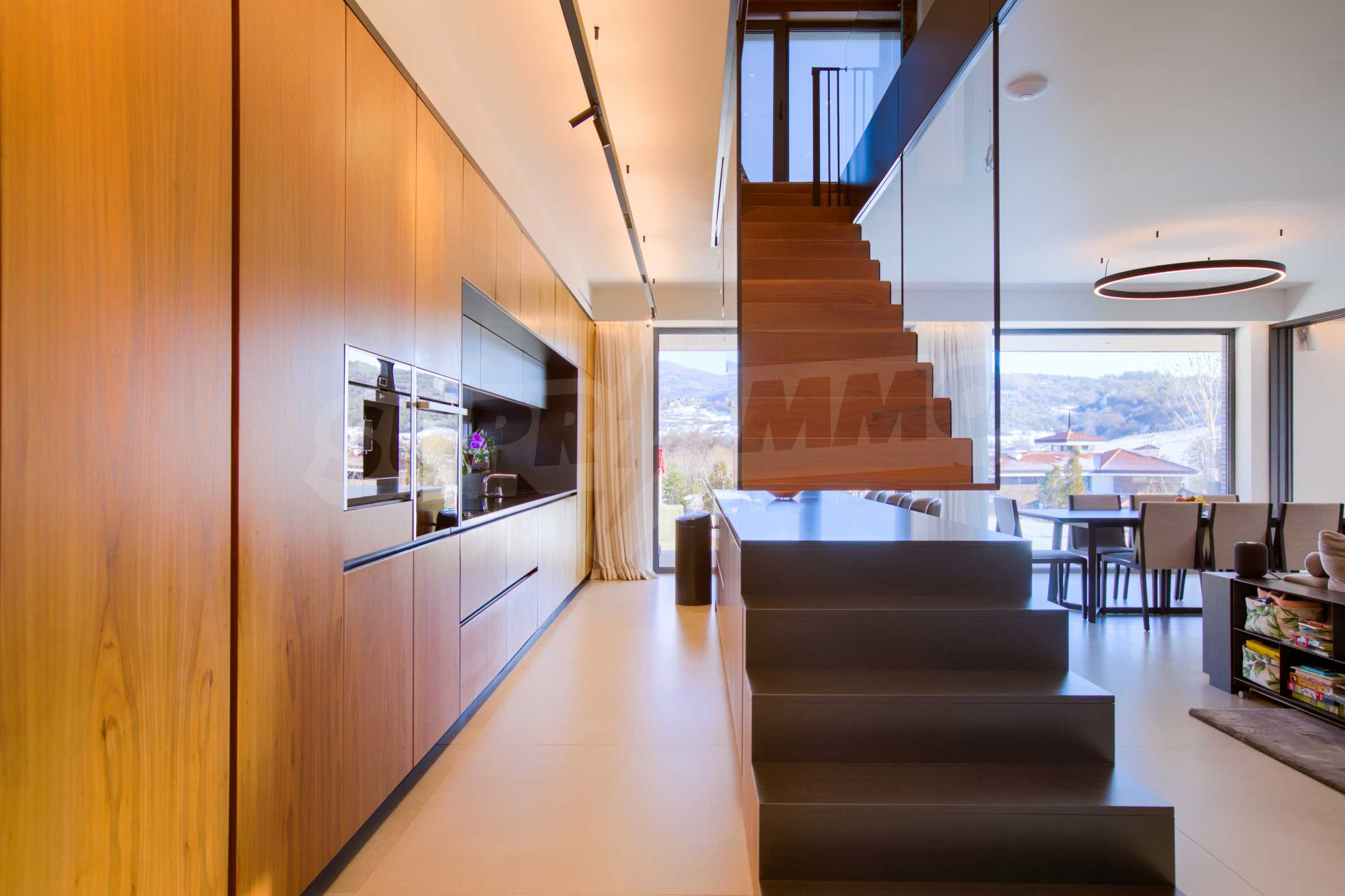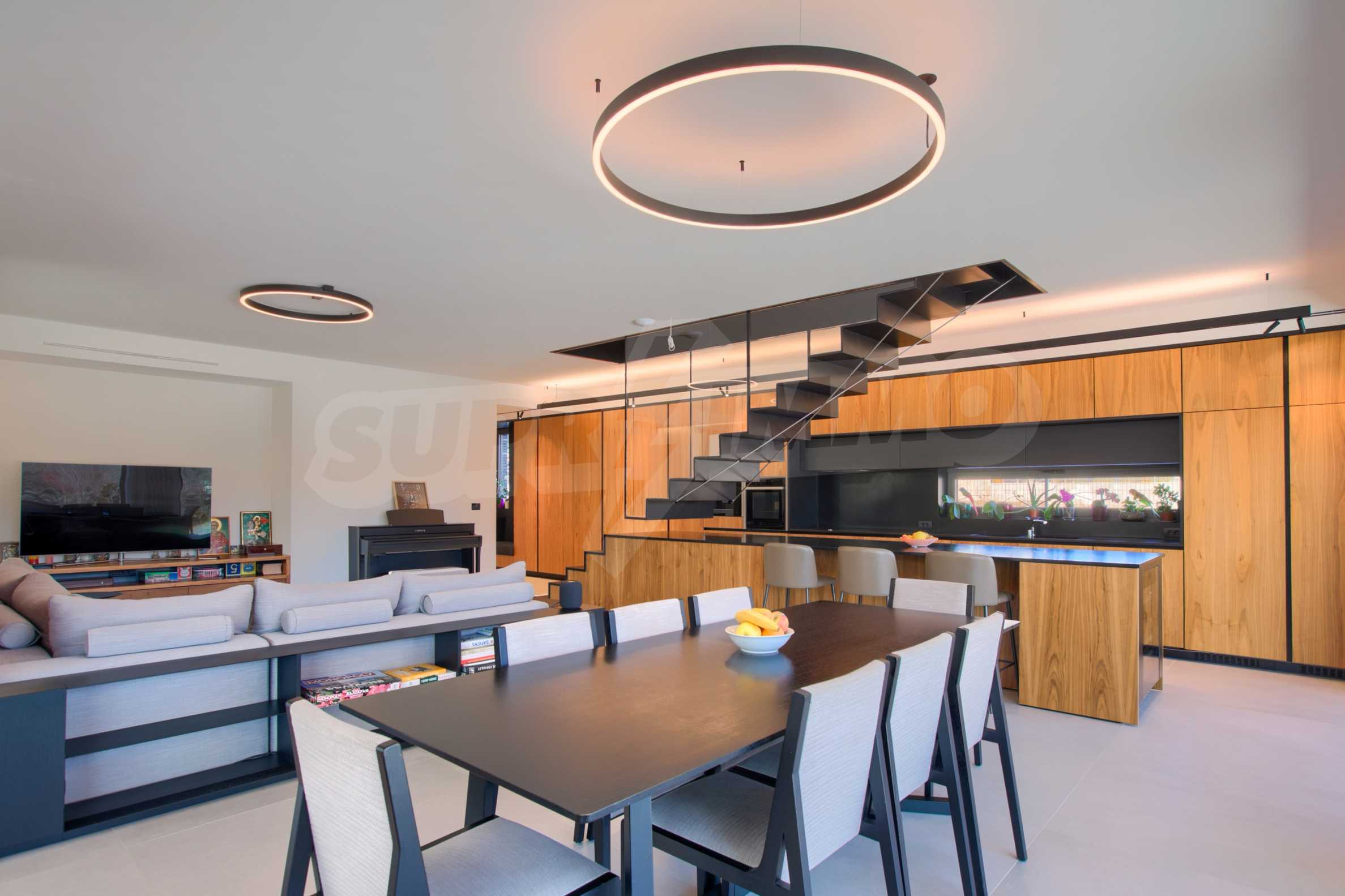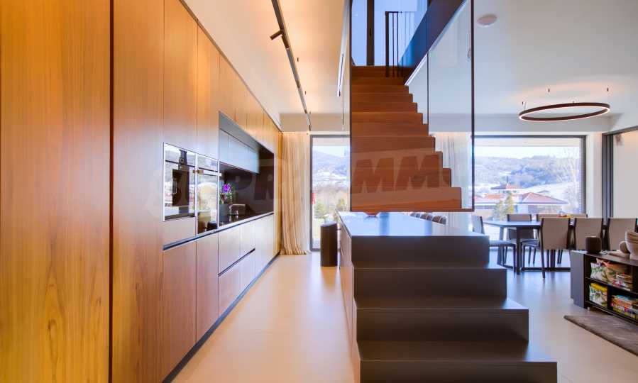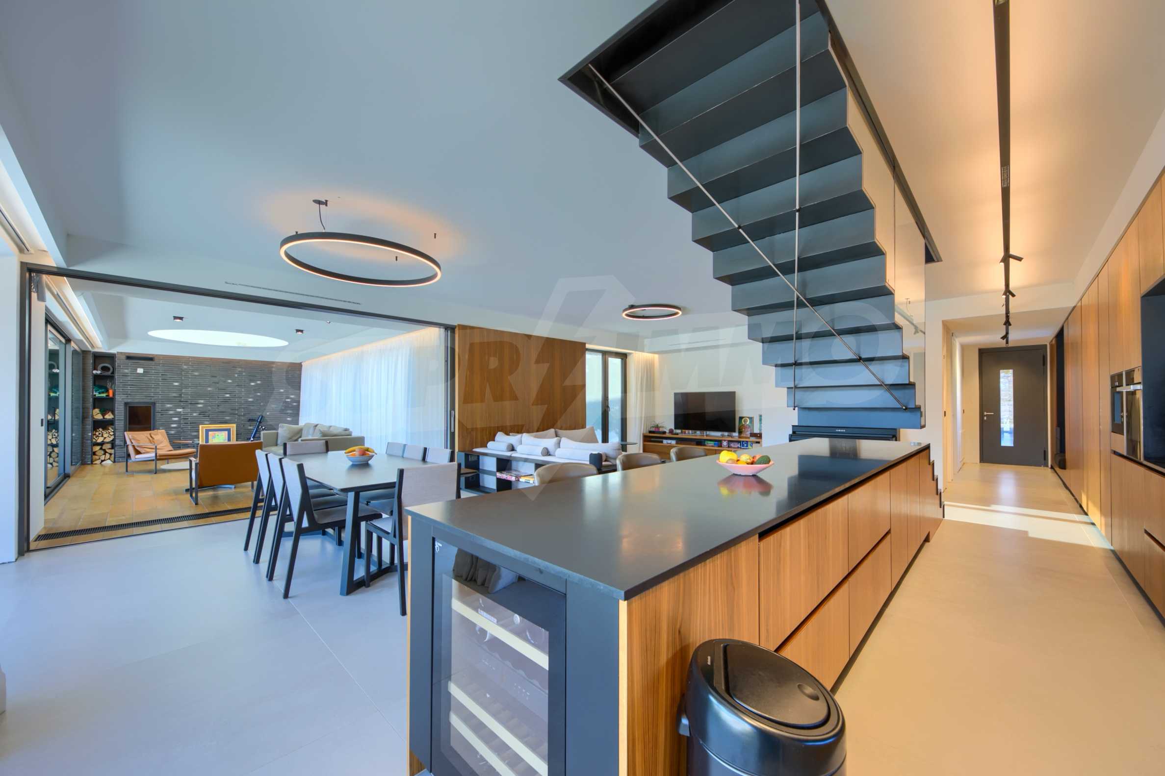 холодильник Либхерр; винный холодильник Liebherr; стиральная машина Миле; сушилка Миле; кресла, ледовое освещение "Dekko"; светодиод «Самсунг» 65; кровати, встроенные шкафы и тумбы; центральный пылесос "Rehau", система управления всеми процессами в доме с голосовой командой "KNX стандарт", солнечная система "STI solar"; система вентиляции с рекуперацией «Systemair».