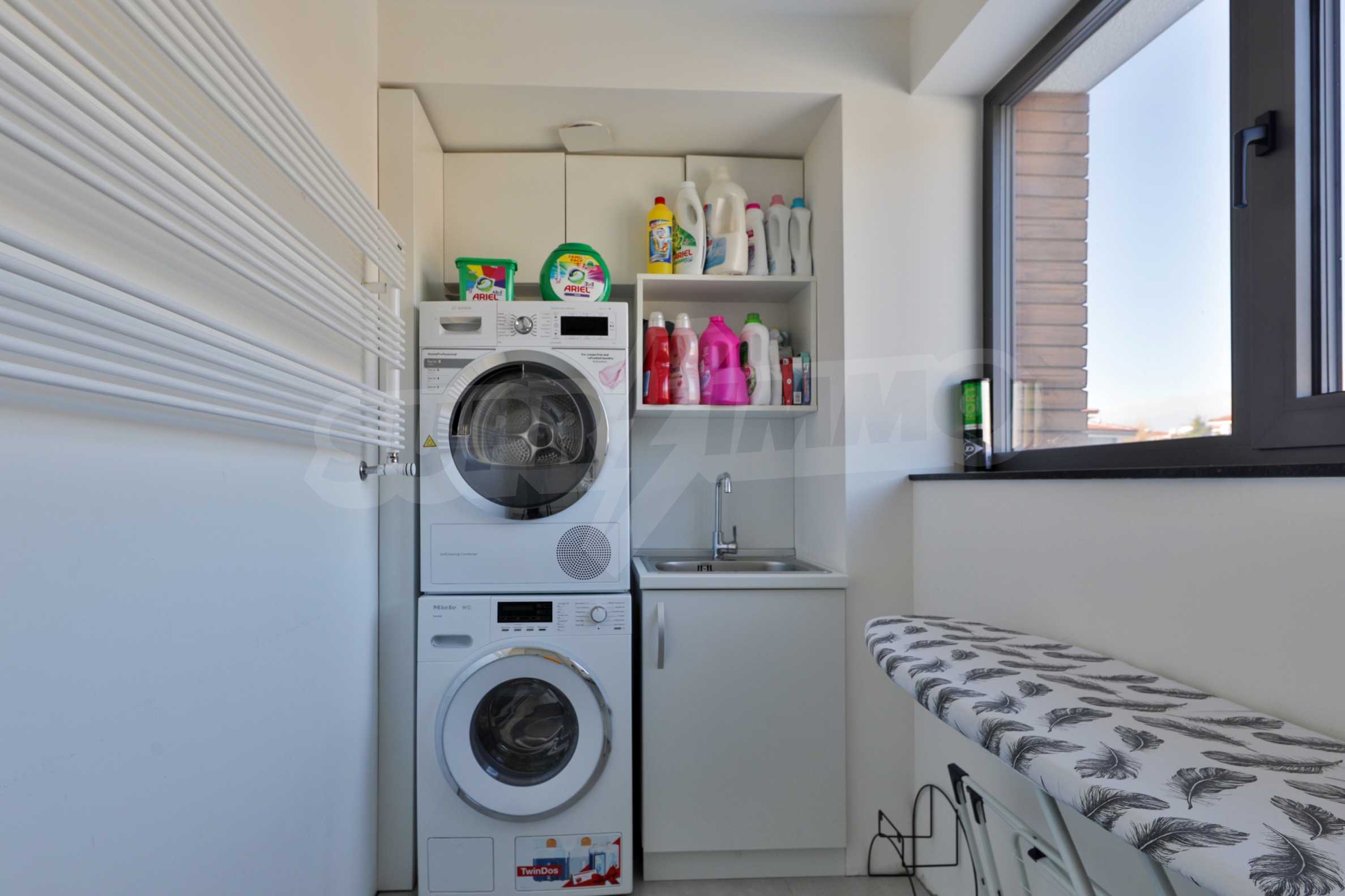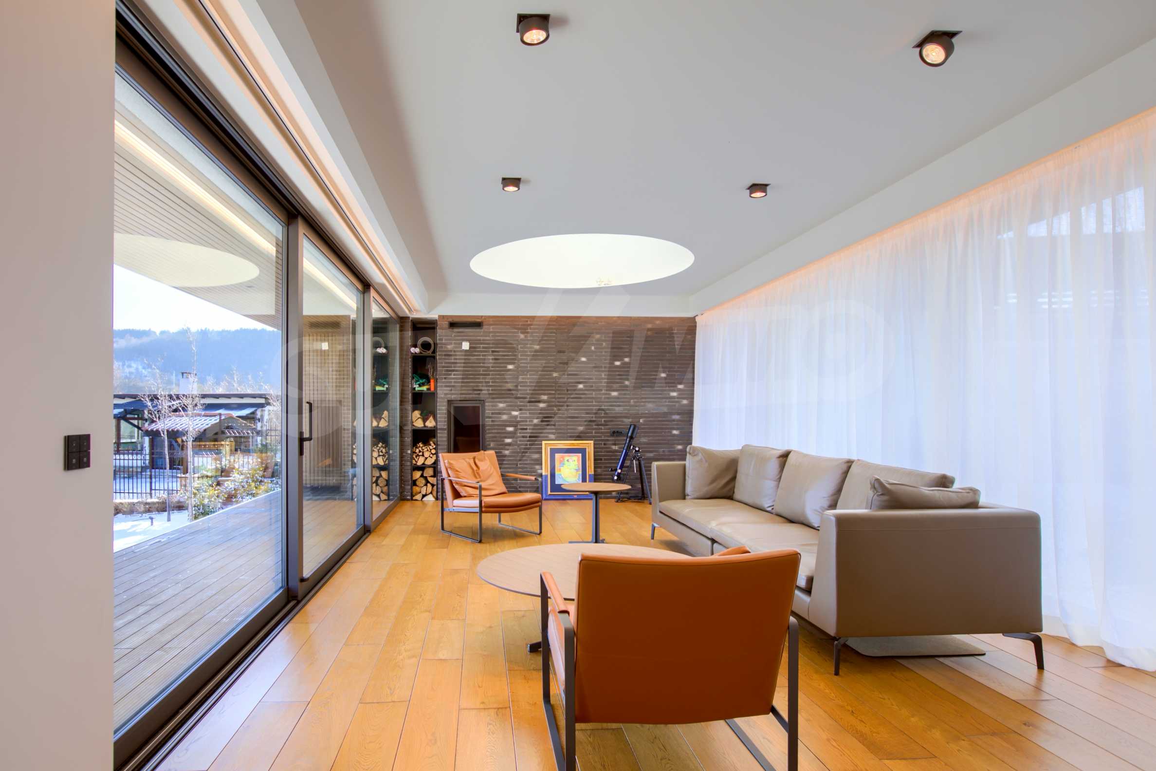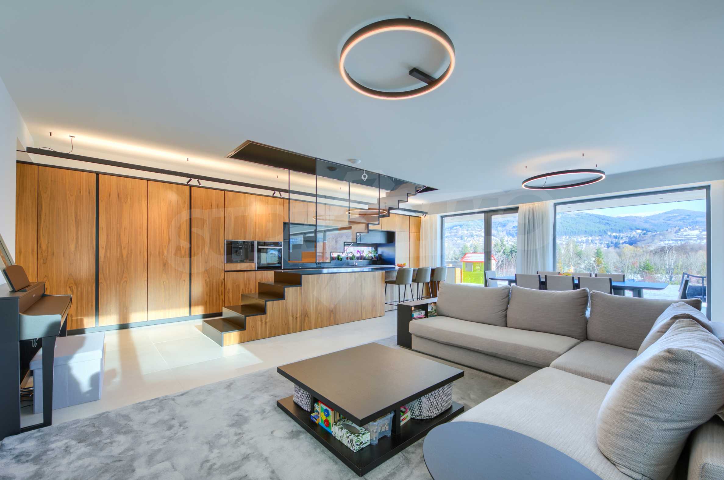холодильник Либхерр; винный холодильник Liebherr; стиральная машина Миле; сушилка Миле; кресла, ледовое освещение "Dekko"; светодиод «Самсунг» 65; кровати, встроенные шкафы и тумбы; центральный пылесос "Rehau", система управления всеми процессами в доме с голосовой командой "KNX стандарт", солнечная система "STI solar"; система вентиляции с рекуперацией «Systemair».