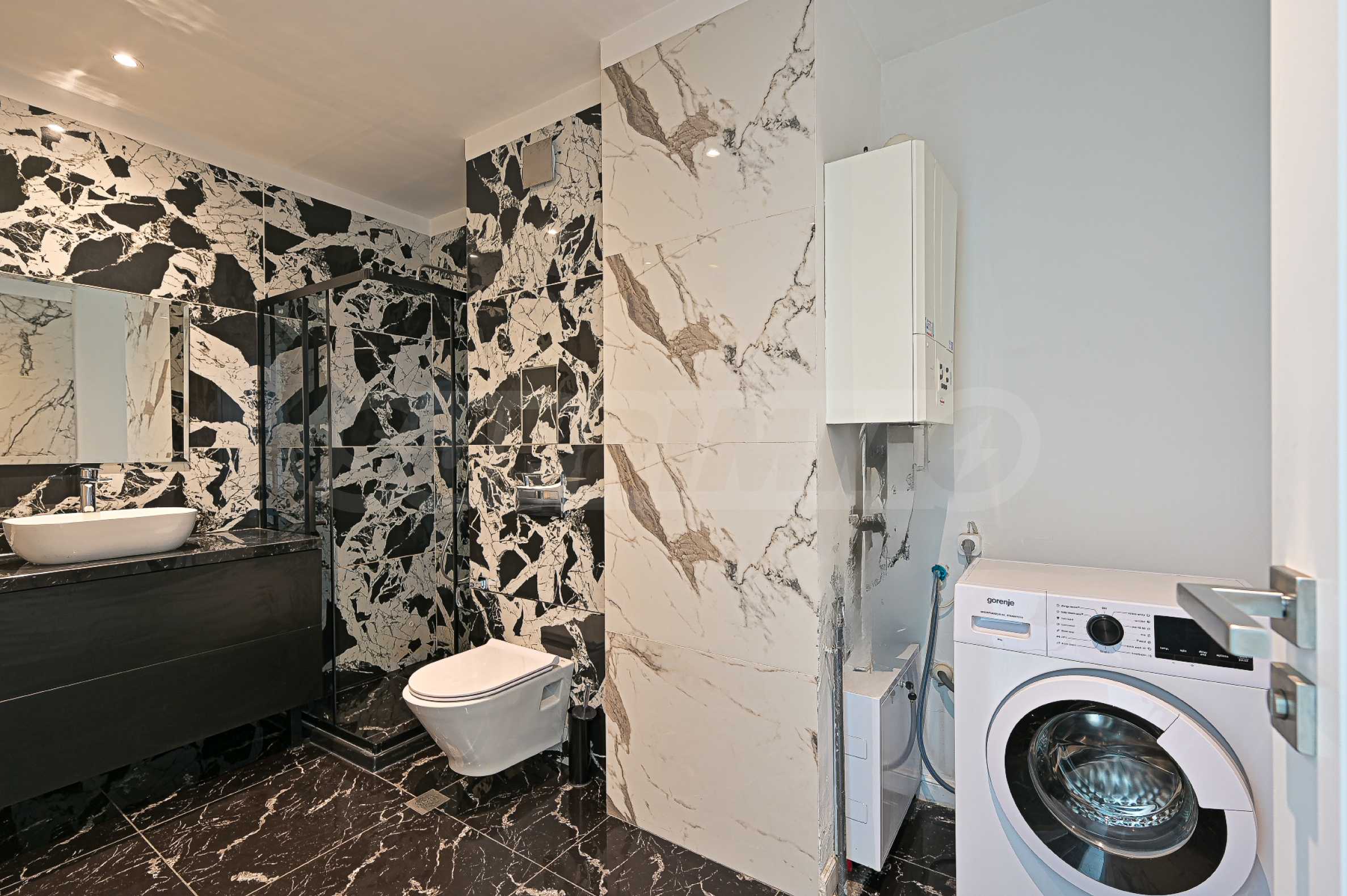 - прихожая, просторная гостиная /с террасой/, спальня, вторая спальня, две ванные комнаты с туалетом, кладовая/душевая комната/. Отопление газовое и кондиционер.