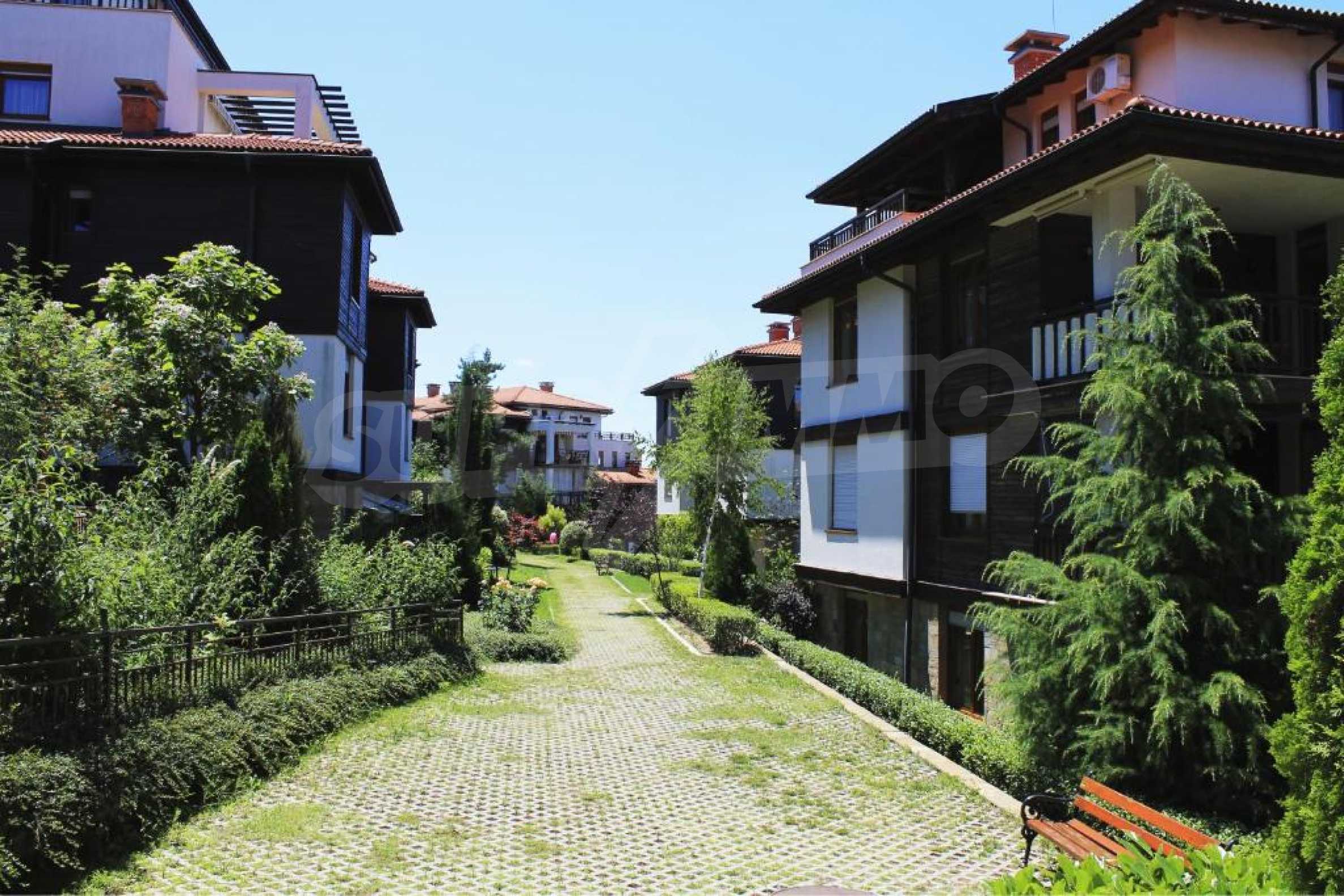 Предлагаем в аренду комфортабельную двухкомнатную квартиру с кухней и террасой в популярном дачном поселке с первоклассными удобствами и бассейнами, расположенном в зеленом парке и красивом саду недалеко от города Созополь.