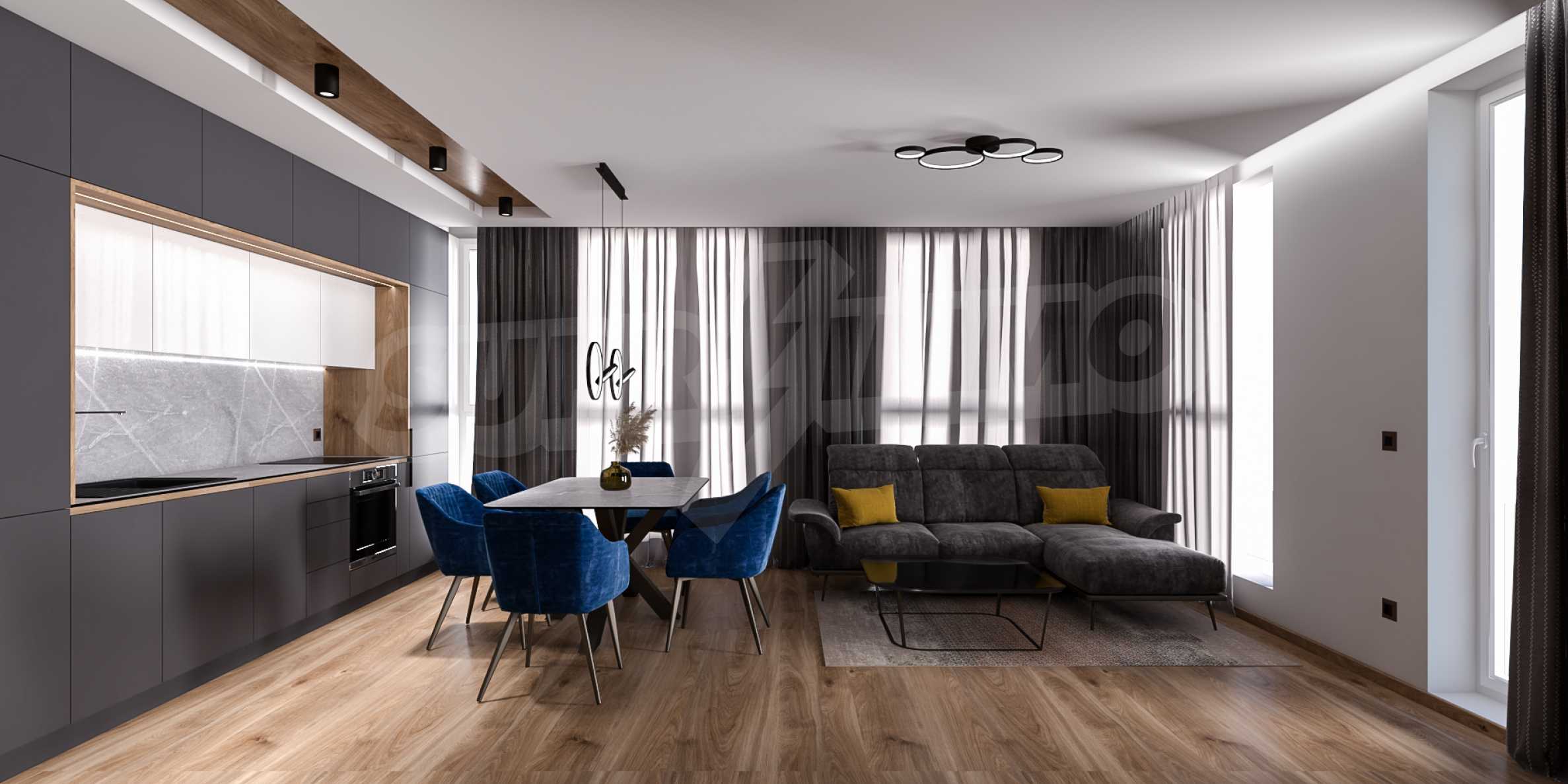 Квартира является частью нового дома с роскошными помещениями общего пользования, контролируемым доступом, подземным паркингом, лифтом высокого класса и красиво благоустроенным двором с ландшафтным проектом. Расположение отличное, близко к торговому центру Болгарии, ресторанам, магазинам и удобствам. Доступ к центру и всем точкам столицы прост и удобен, благодаря бульвару Болгария и кольцевой дороге.
