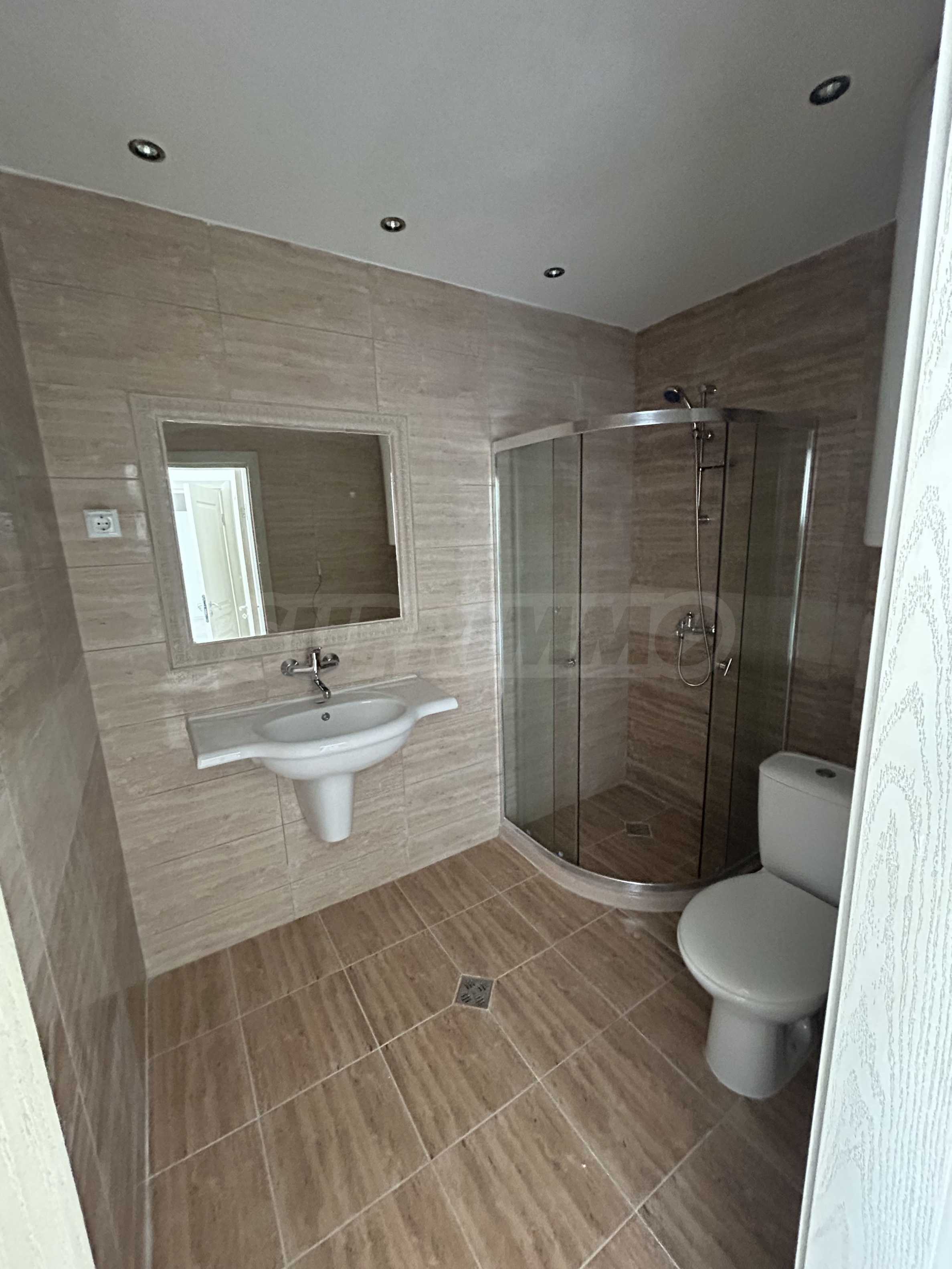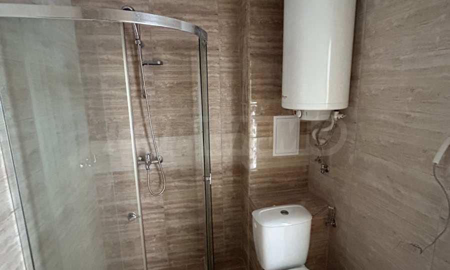 - ванная комната - пол - терракота, стены - фаянс, смеситель для душа, моноблок, раковина, душевая кабина и водонагреватель.