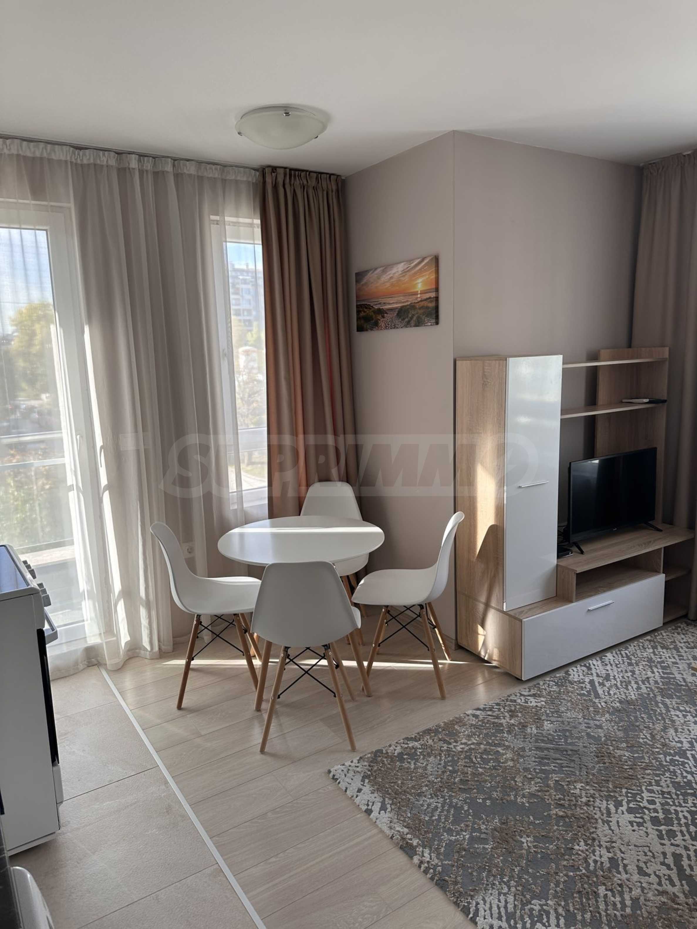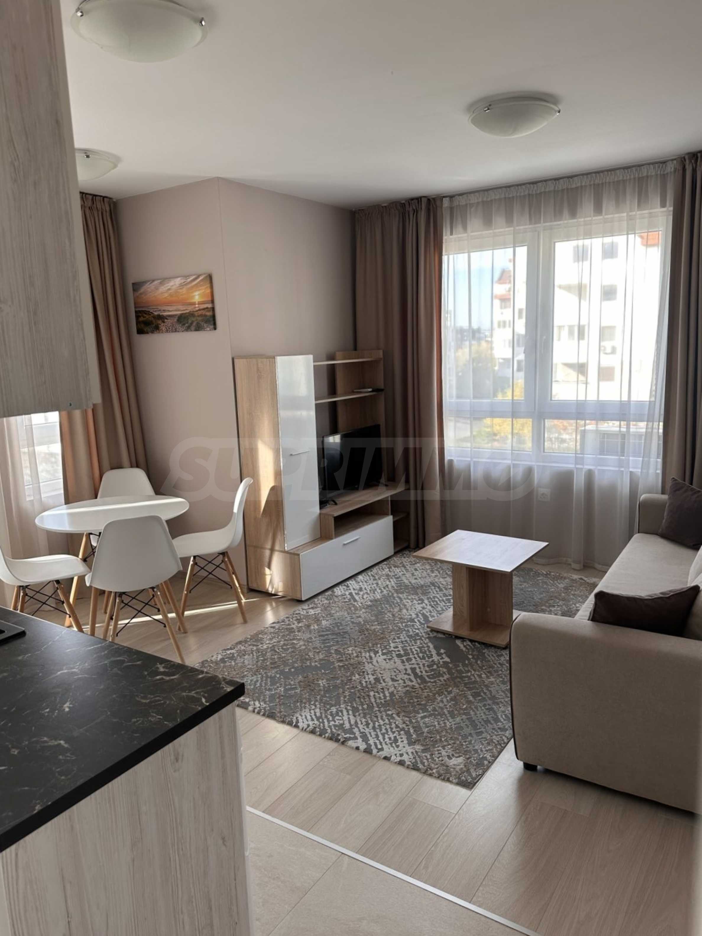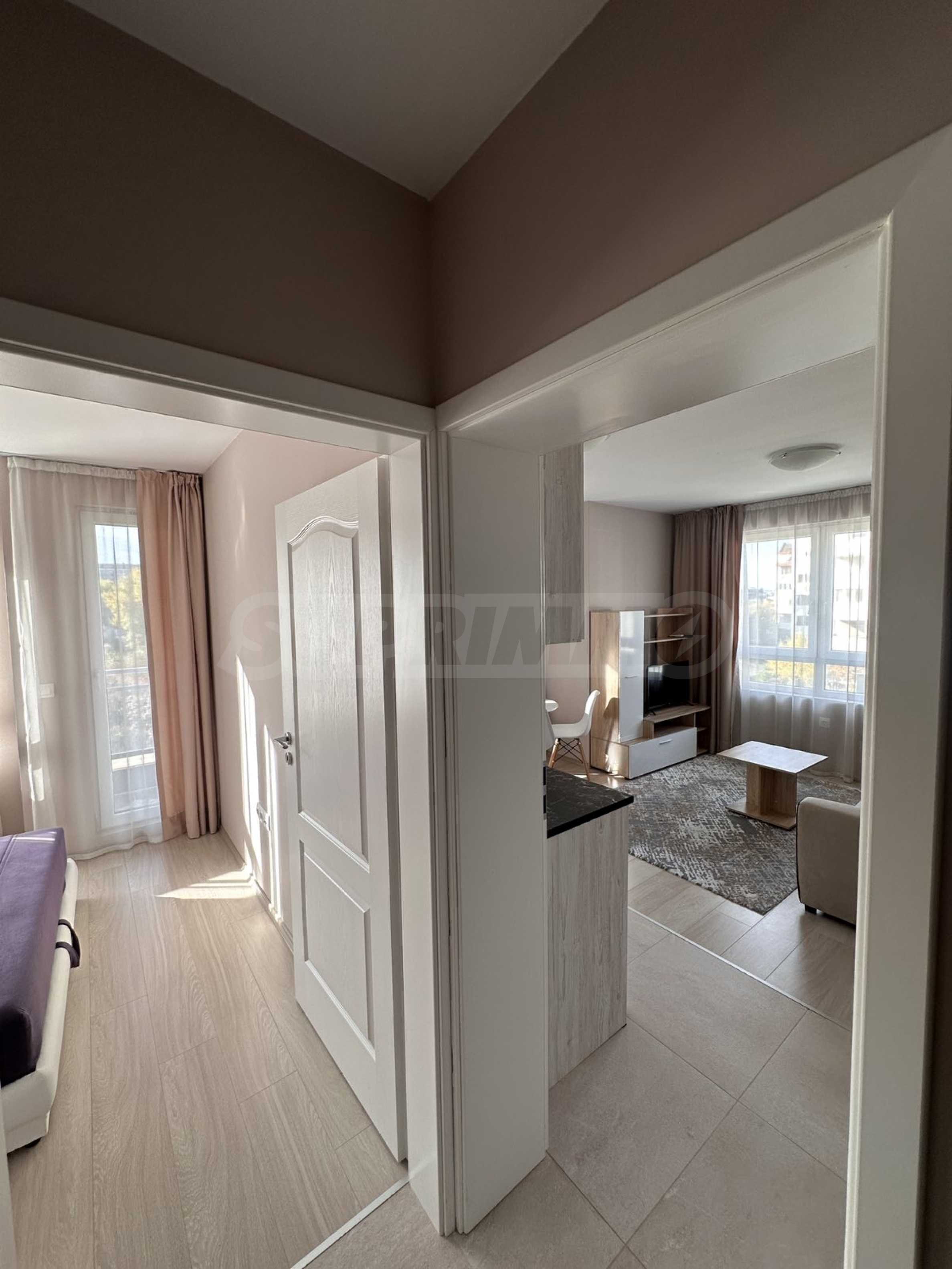 Представляем вашему вниманию стильную и новую однокомнатную квартиру в аренду, расположенную в современном здании на тихой и спокойной улице в районе Малинова Долина, в непосредственной близости от Симеоновского шоссе. Расположение обеспечивает отличное транспортное сообщение и быстрый доступ как к Кольцевой дороге, так и к центру Софии.