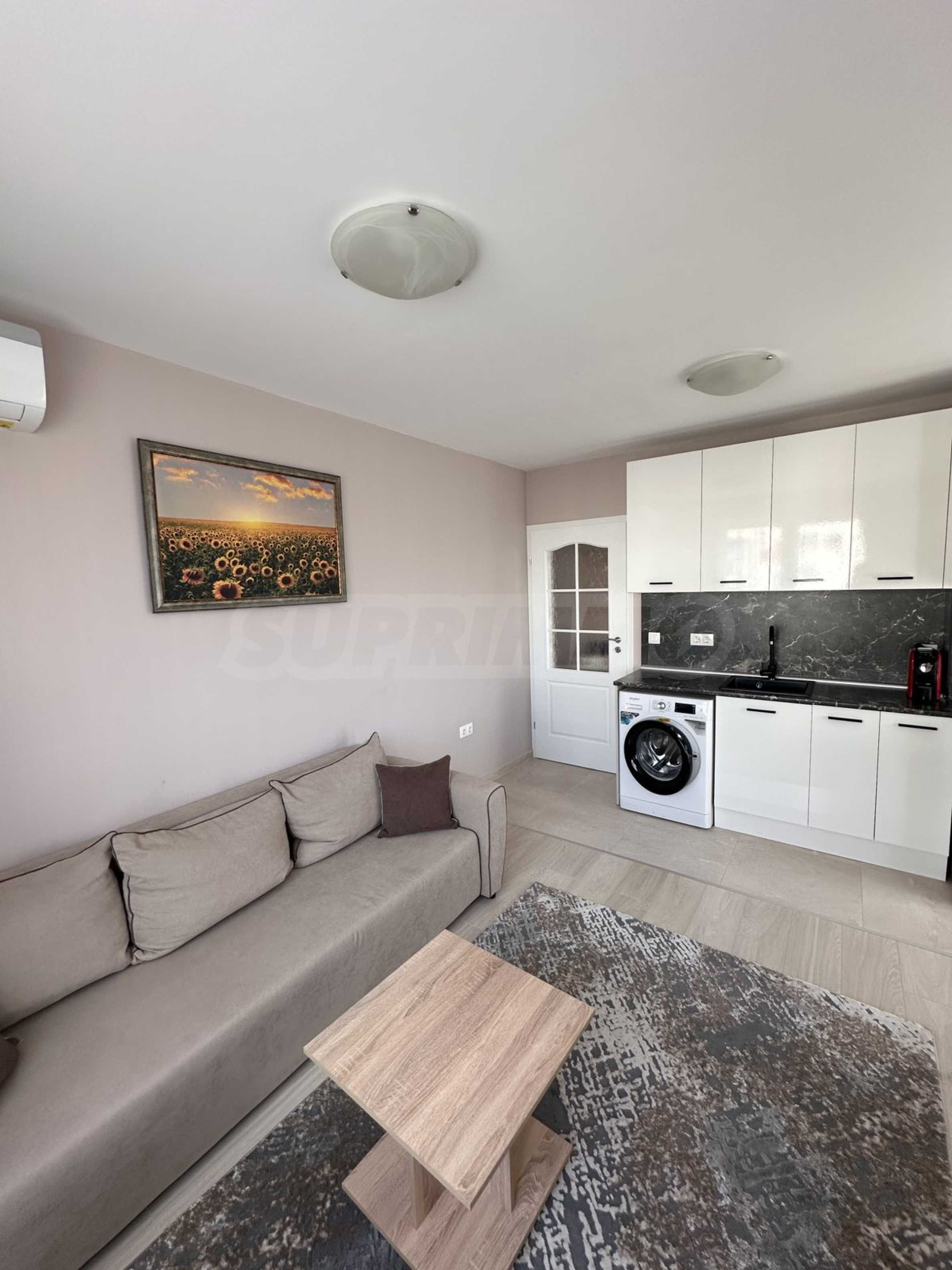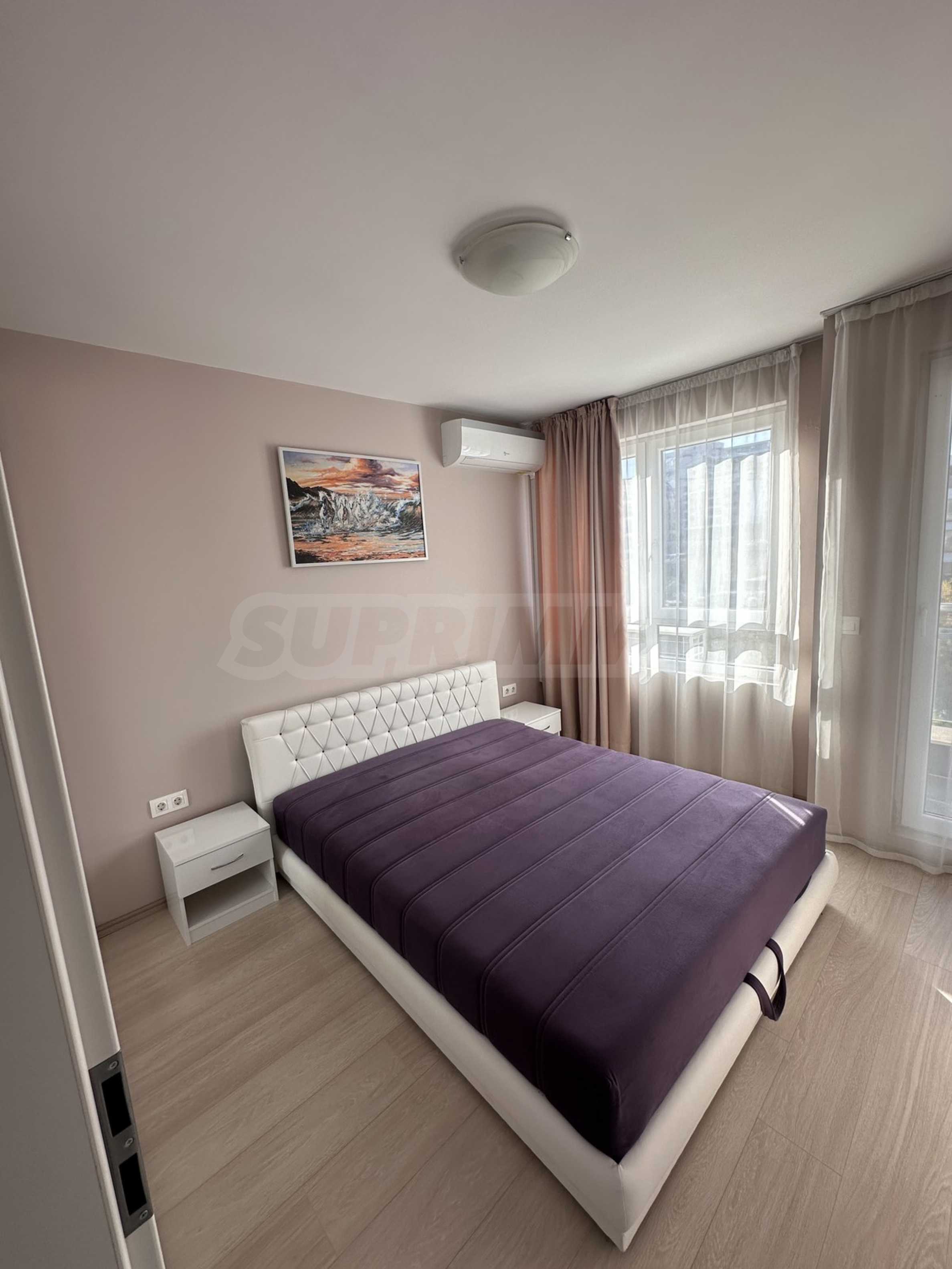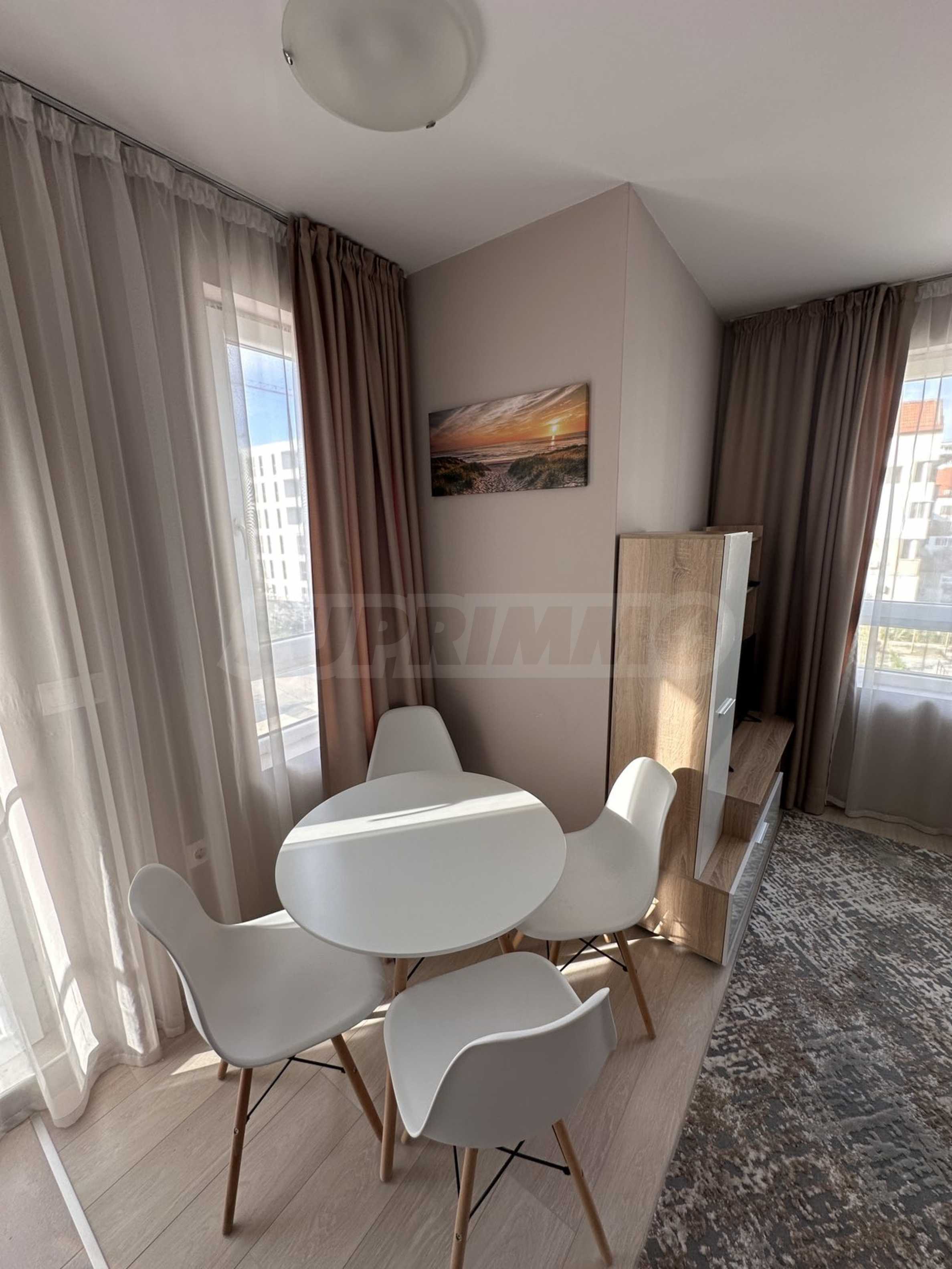 Представляем вашему вниманию стильную и новую однокомнатную квартиру в аренду, расположенную в современном здании на тихой и спокойной улице в районе Малинова Долина, в непосредственной близости от Симеоновского шоссе. Расположение обеспечивает отличное транспортное сообщение и быстрый доступ как к Кольцевой дороге, так и к центру Софии.