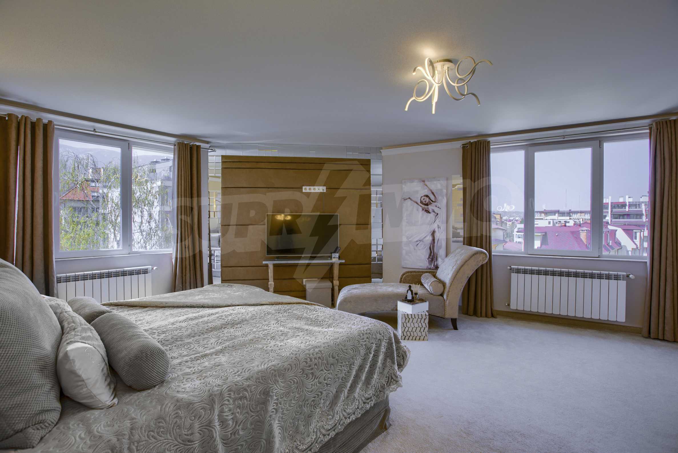 Квартира общей площадью 174,03 кв. метров. расположена на пятом этаже и впечатляет панорамным, захватывающим дух видом на гору Витоша. Южная сторона обеспечивает обилие естественного света в течение дня и создает ощущение тепла, простора и гармонии.
