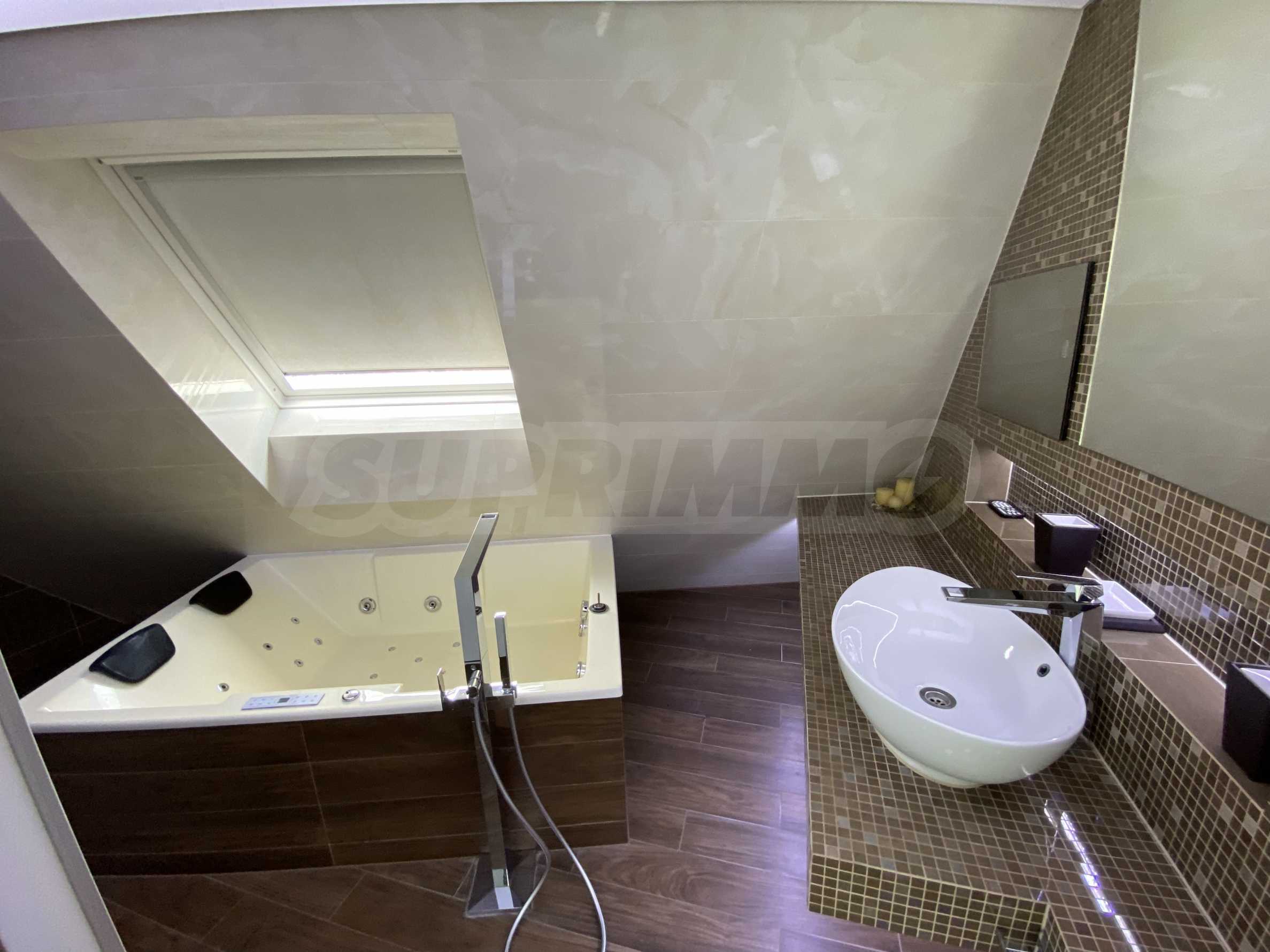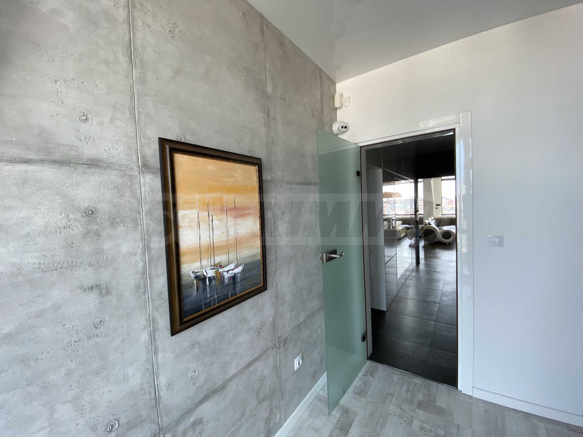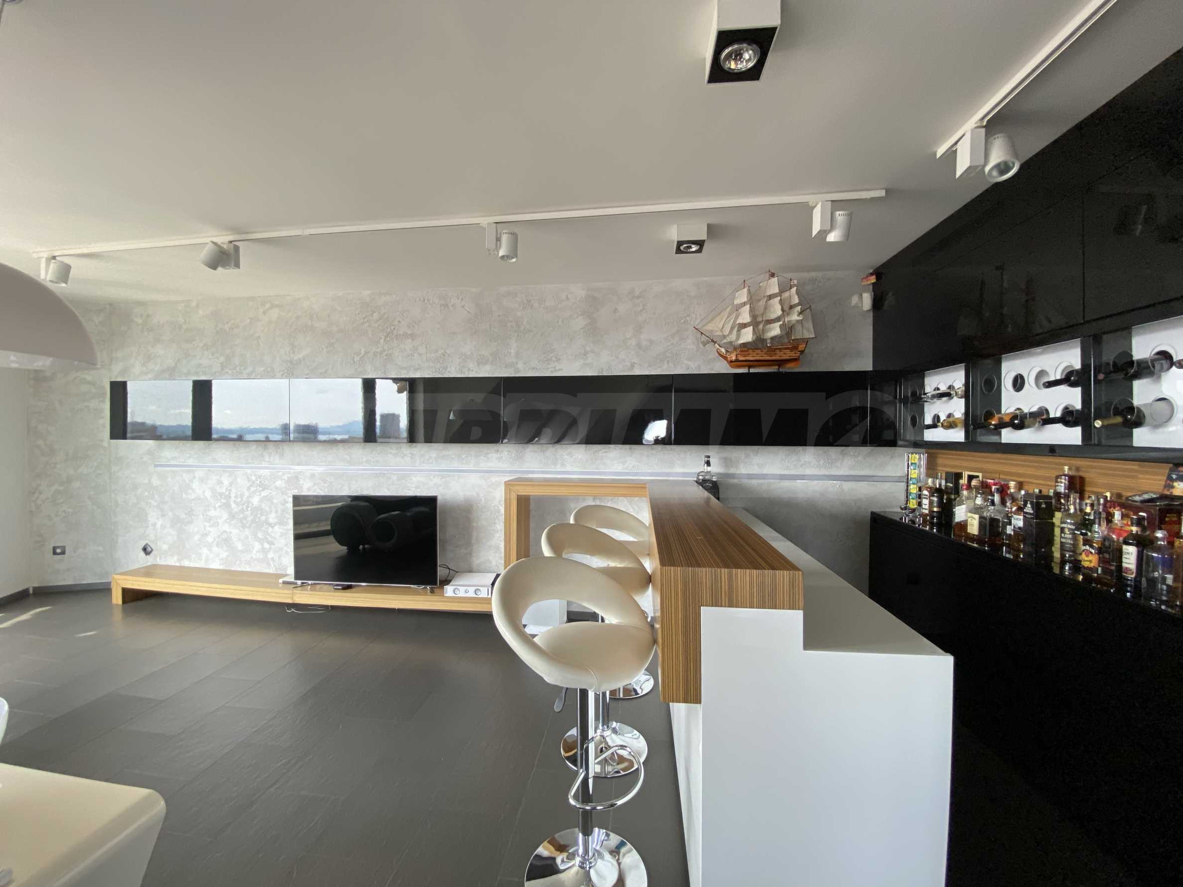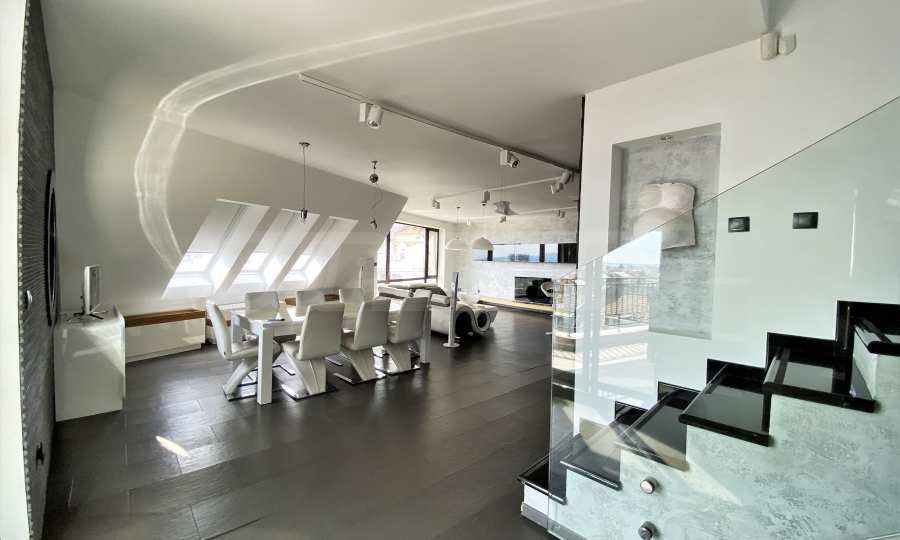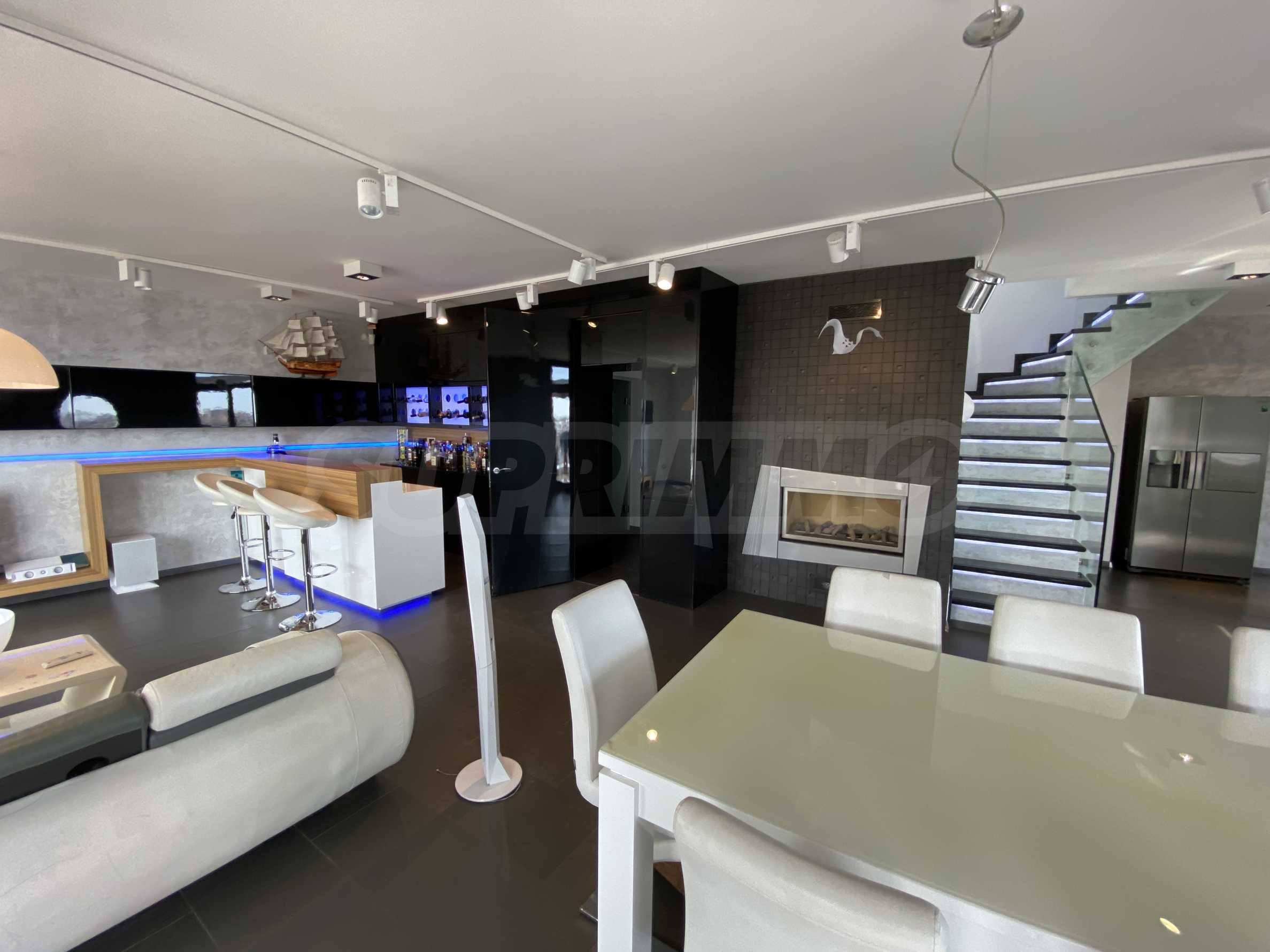 Квартира площадью 274 кв. м расположена на двух уровнях, с панорамными террасами открывается обширный вид на населенный пункт и море.