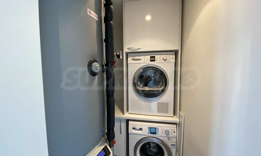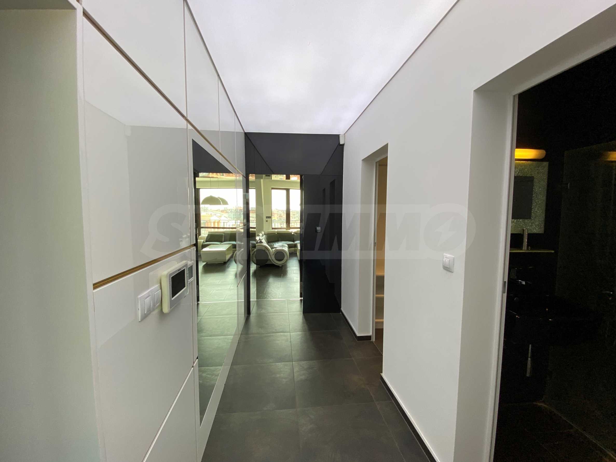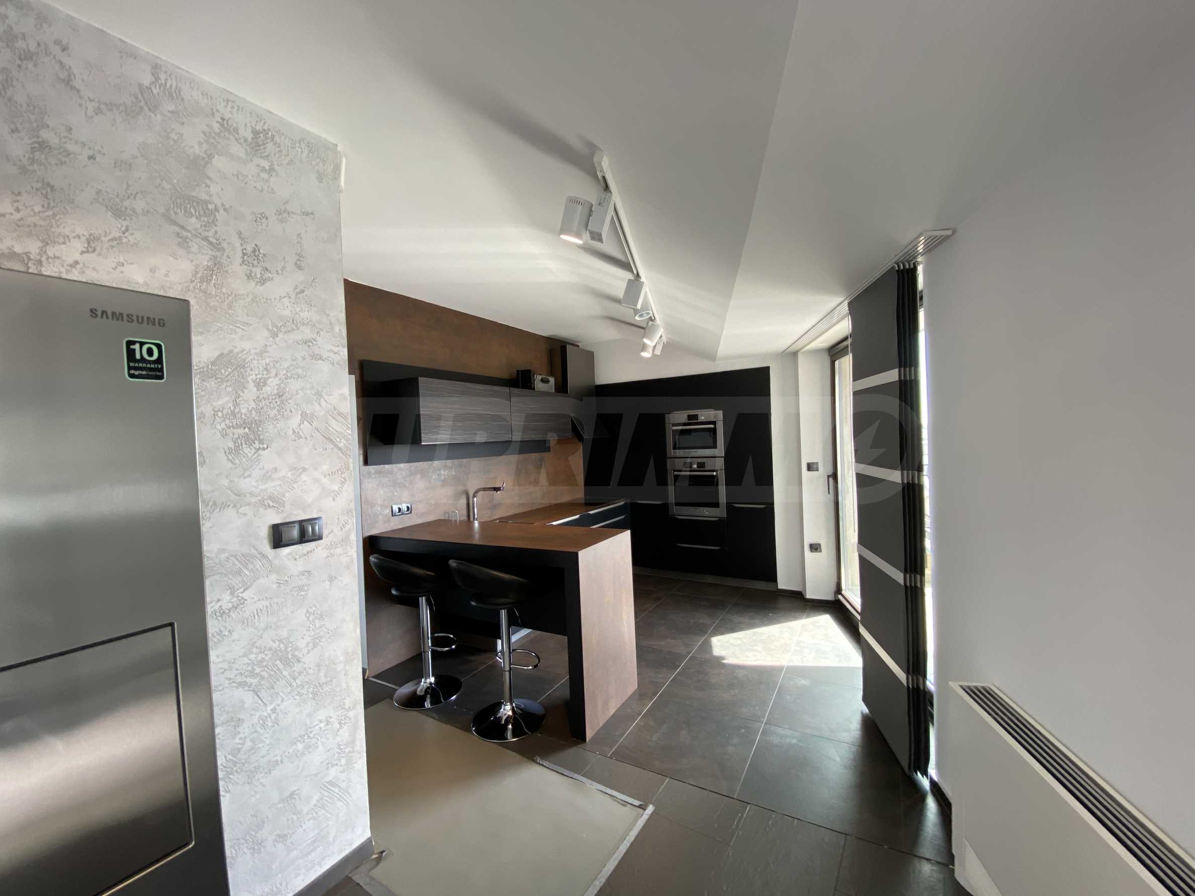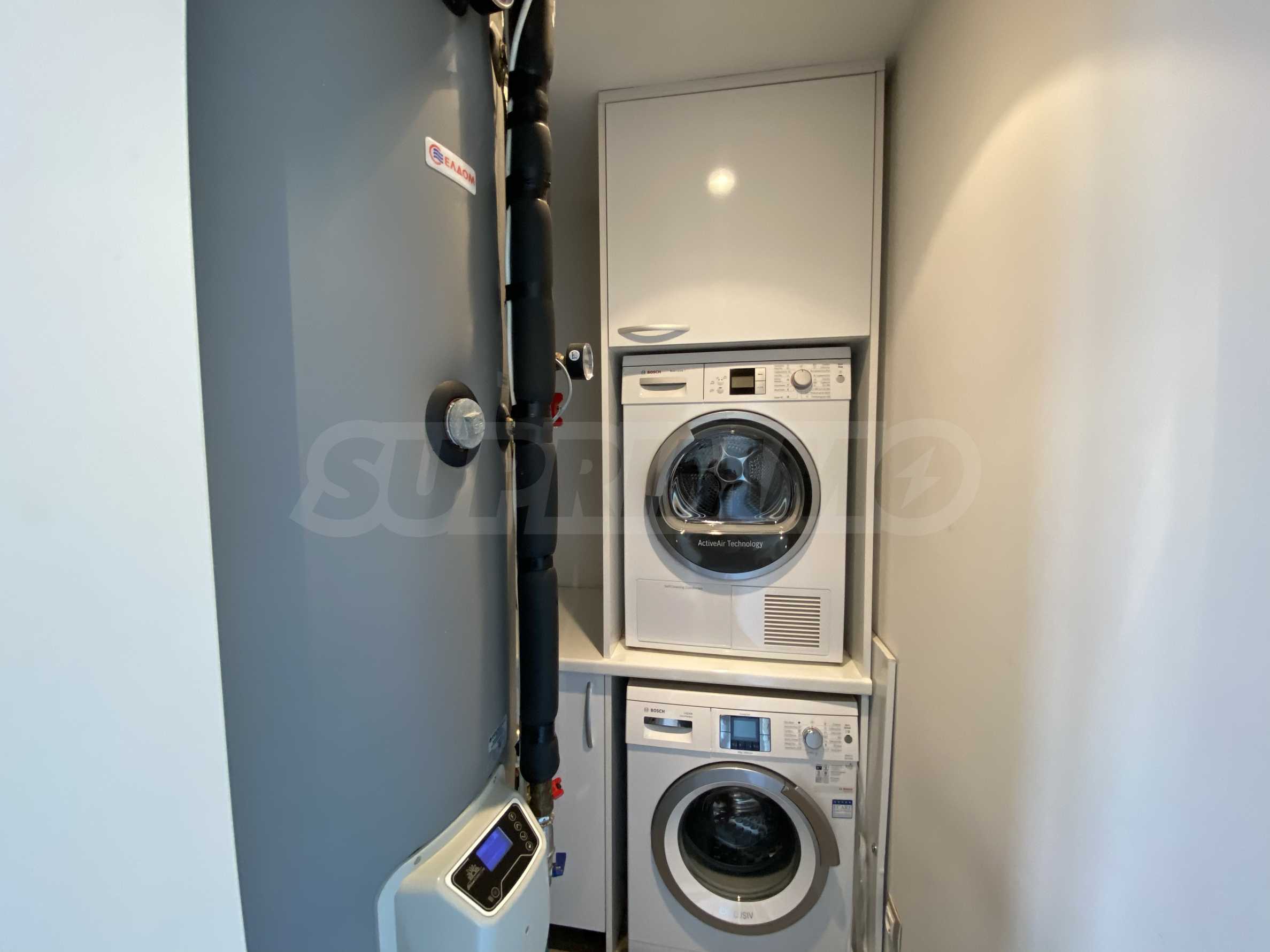 Квартира меблирована и оборудована высококачественной чёрно-белой техникой, сигнализацией, видеонаблюдением, аудиосистемой и другими современными удобствами. Квартира предлагается с полной меблировкой и оборудованием, включая дизайнерскую кухню SYKORA (Чехия), меблировку производства MORATO MEBEL. Отделочные работы в квартире дополняют современный интерьер, выполненный в серо-бело-коричневых тонах с использованием отборных материалов, таких как японский облицовочный камень.