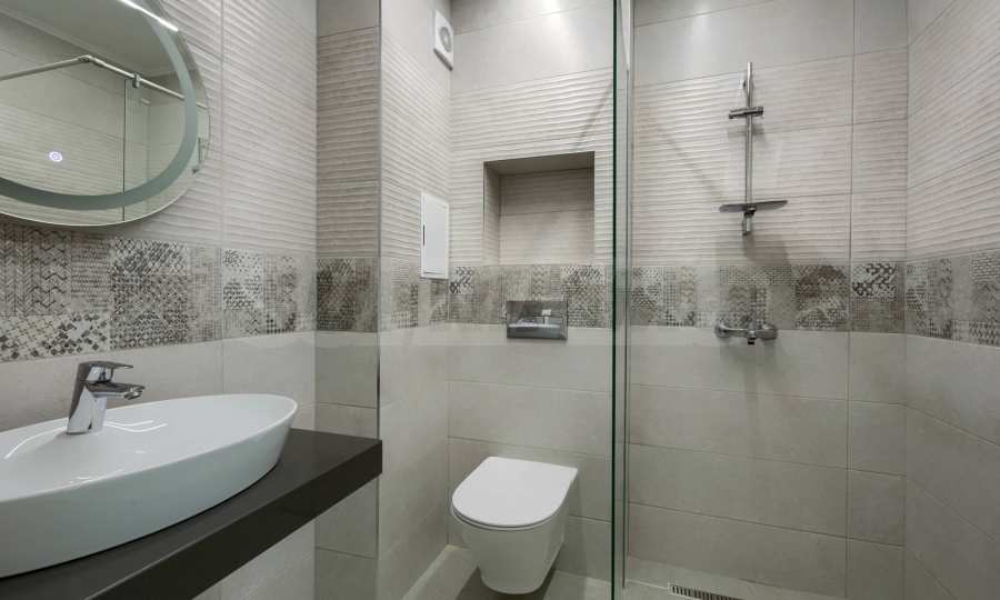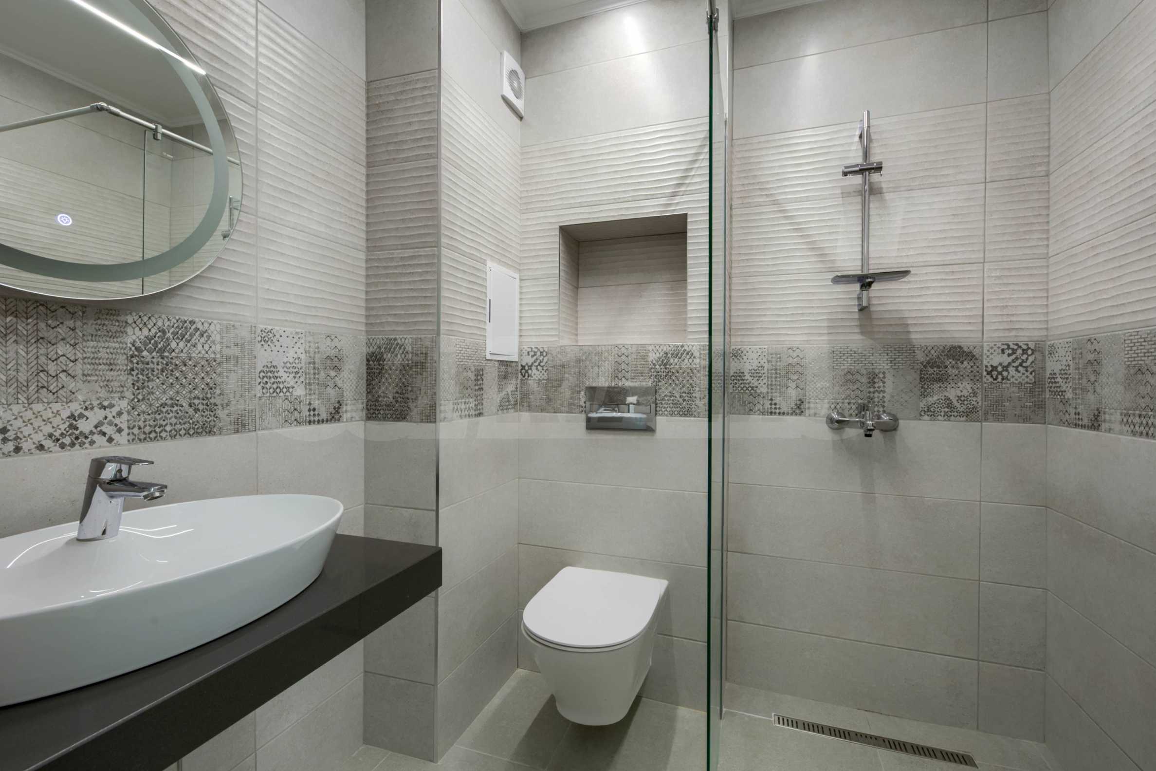 - сантехника в ванных комнатах – Roca, испанские настенные и напольные покрытия, стеклянные перегородки, освещение и аксессуары;