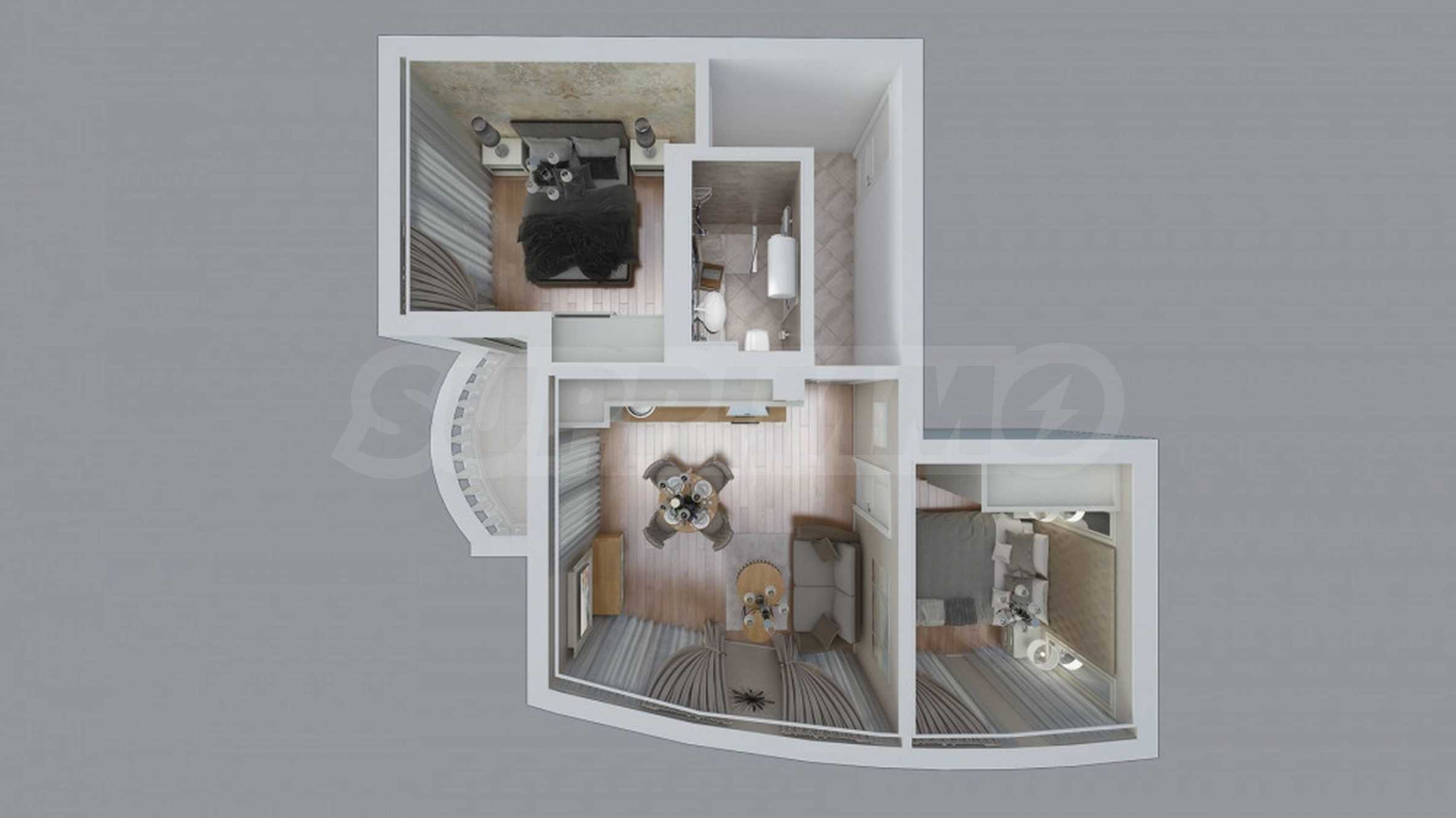 Корпус Б предлагает 10 шт. таунхаусы, студии, апартаменты с двумя и тремя спальнями, два лифта на 8 человек и роскошный вестибюль.