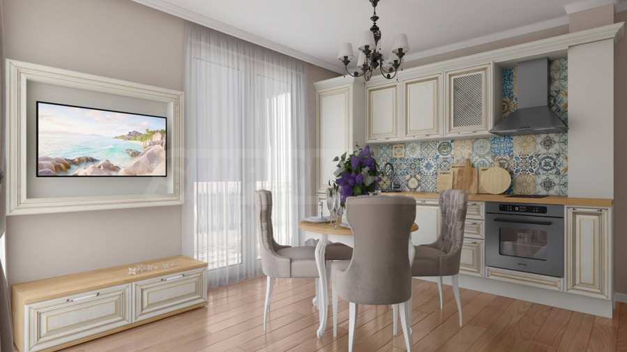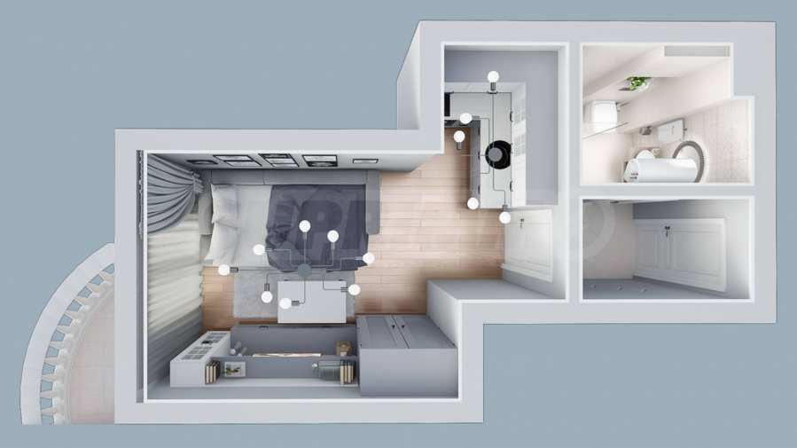- стены – латексная краска, обои и декоративные профили – по индивидуальному проекту;
