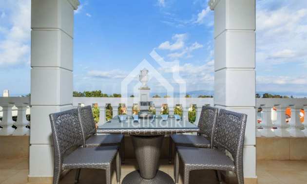 Элитная недвижимость, Уникальный особняк с роскошным бассейном, в замечательном месте на Кассандре, в маленьком раю Халкидики. Недвижимость расположена на площади 1000 кв. метров. , с прекрасным видом на море, на расстоянии 1,5 км от центра поселка. Состоит из 3-х уровней общей площадью 300 кв. метров. жилой площади. Недвижимость включает в себя 5 спален, кладовую и 4 ванные комнаты.