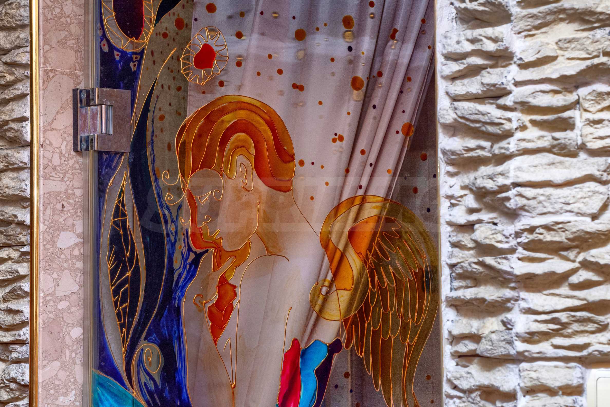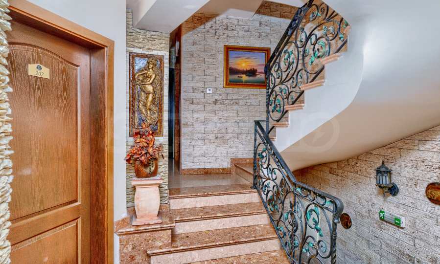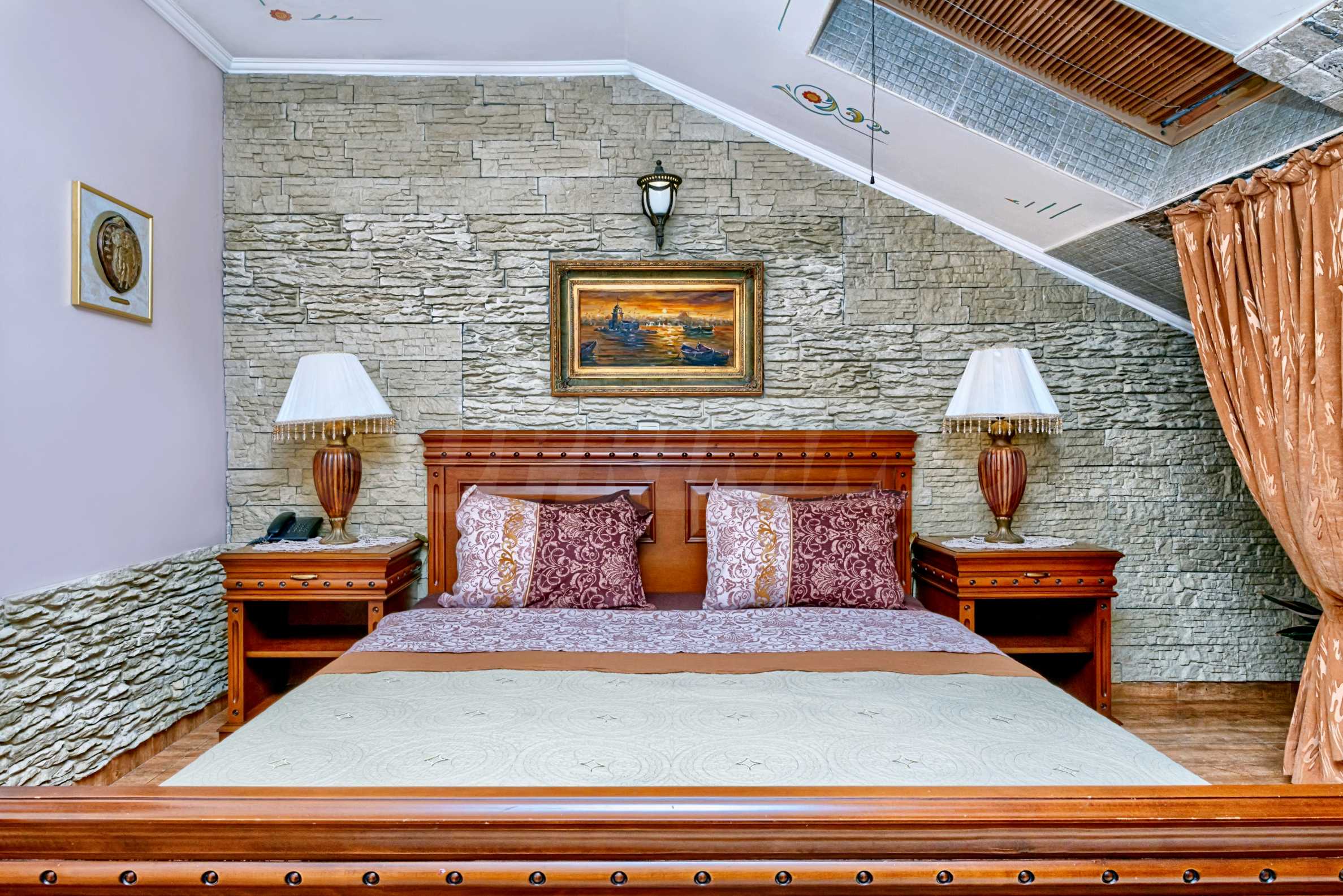 Недвижимость представляет собой дом, подходящий для проживания, гостиницы или гостевого дома. В доме есть ресторан, пиано-бар и винный дегустационный центр с уникальным стилем и архитектурой. Общая площадь застройки составляет 1130 кв.м. Цена: 3500 евро (6846 левов)/кв.м без НДС .