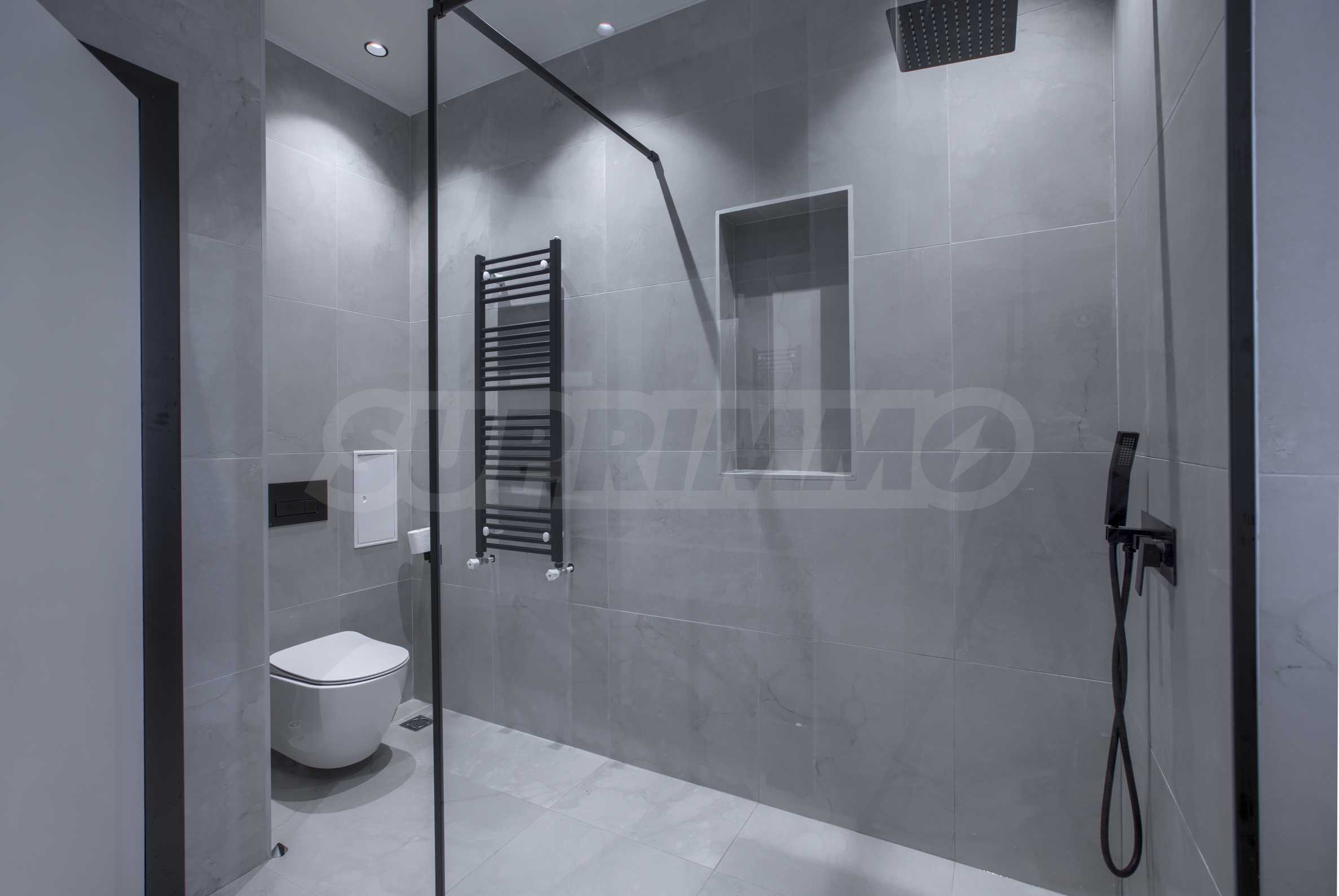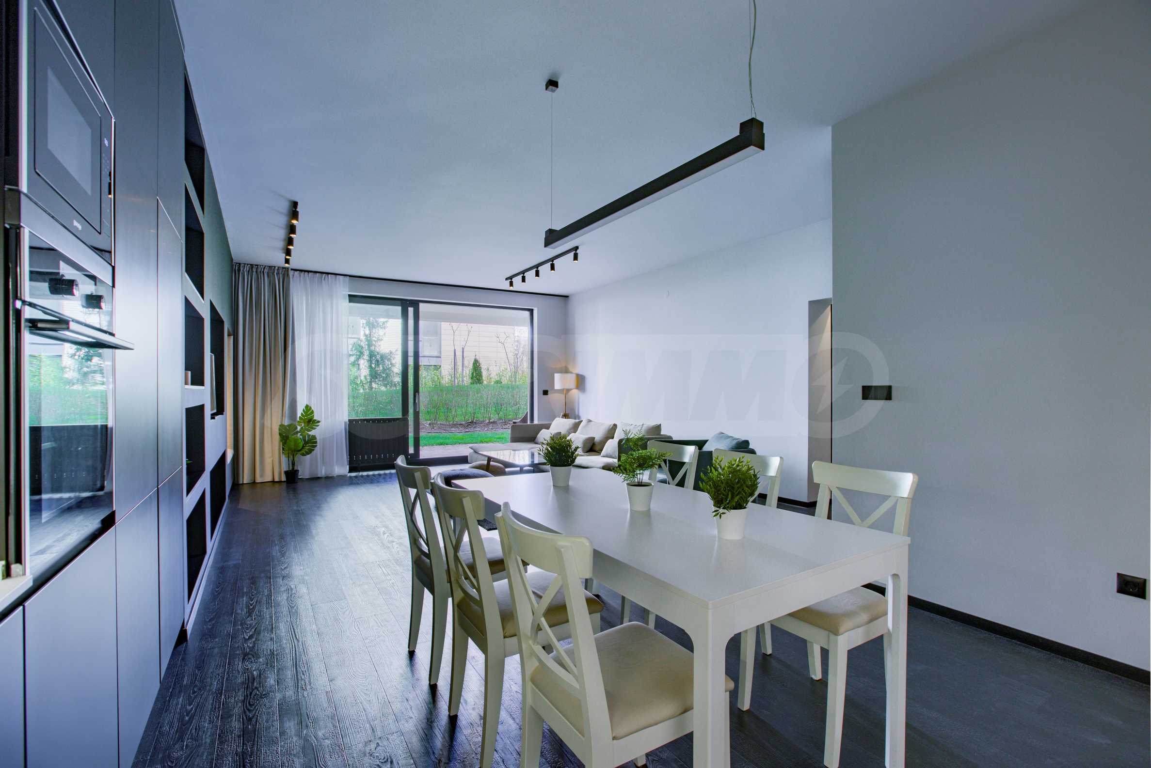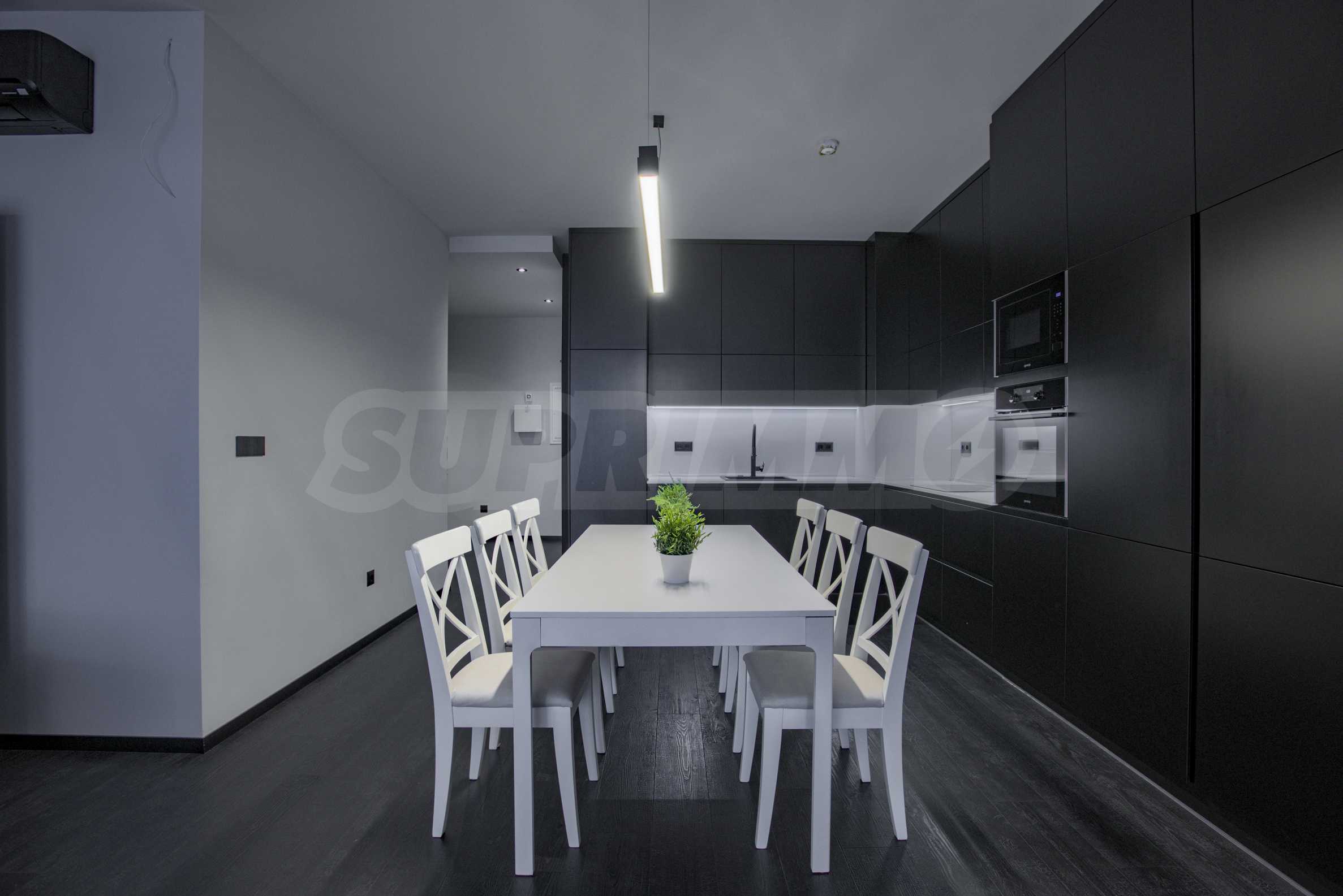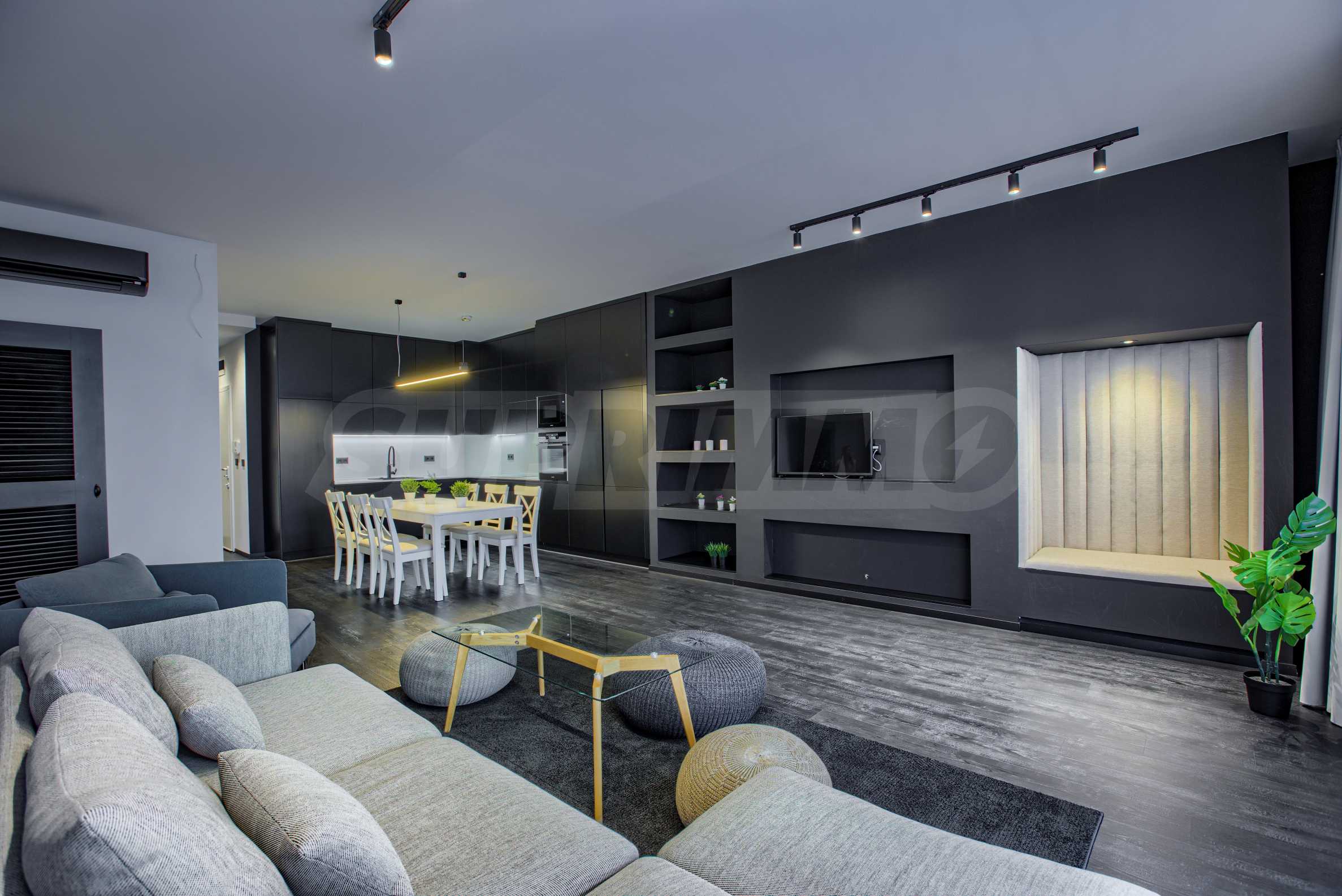Квартира предлагается со всей меблировкую и техникой. Интерьер чистый, с преобладающими цветовыми решениями в белом и графитово-сером цветах, с элегантной меблировкую и высококачественным оснащением.