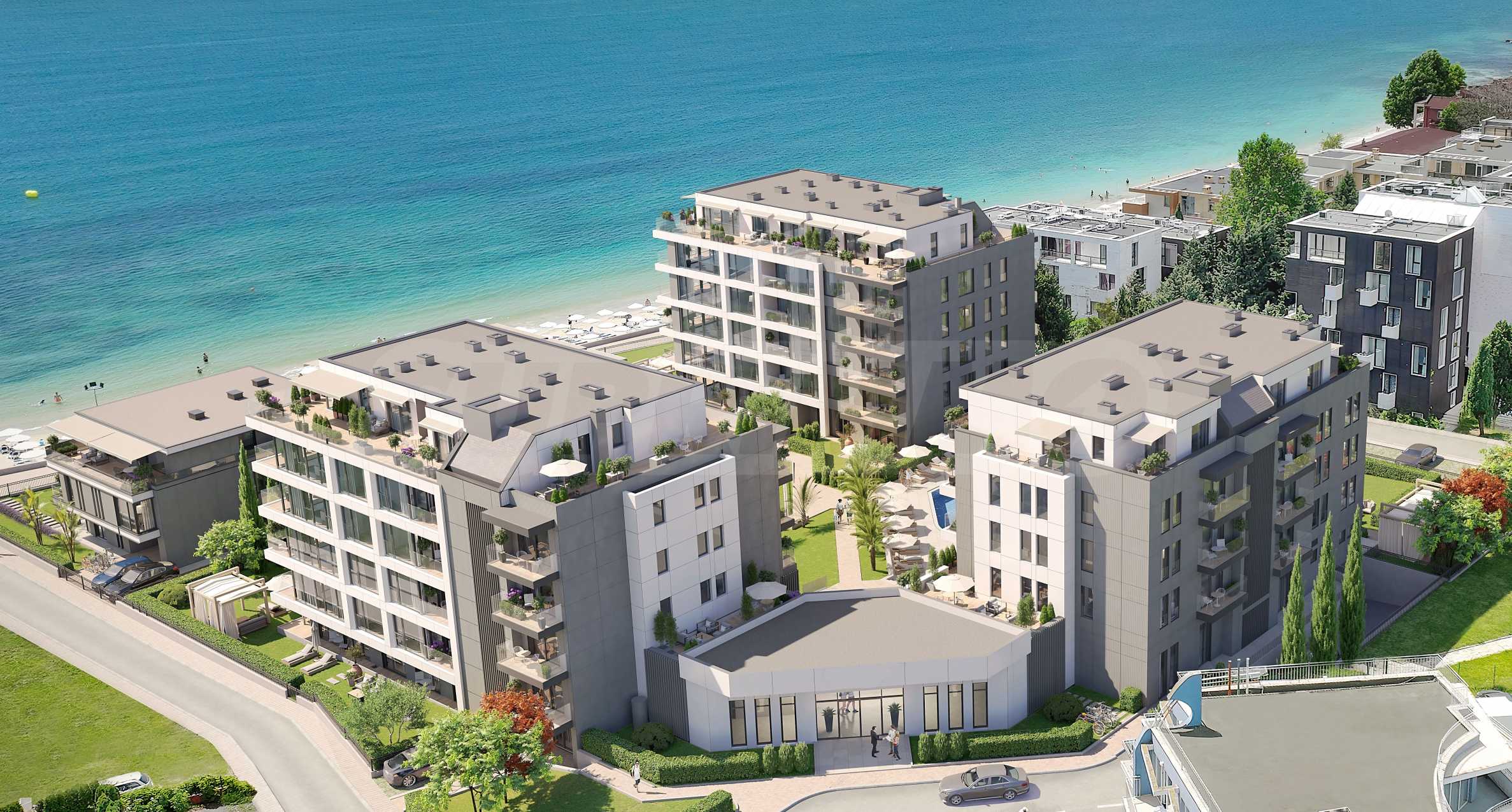 Расположенный на земельном участке площадью 6200 кв. м, выходящем на четыре улицы и имеющем перепад высот в 2 м, комплекс включает в себя четыре отдельных жилых здания с прямым доступом к бассейну и внутреннему двору комплекса, а также с прямым выходом на пляж. Архитектурная концепция современна, с вентилируемым фасадом, а общие зоны будут выполнены в соответствии с дизайн-проектом, с использованием крупноформатной керамической плитки, панелей, облицовки, гранитного напольного покрытия на лестничных клетках и подвесных потолков по индивидуальному проекту. Лифты будут производства швейцарской компании Schindler, звукоизолированные и крупногабаритные.
