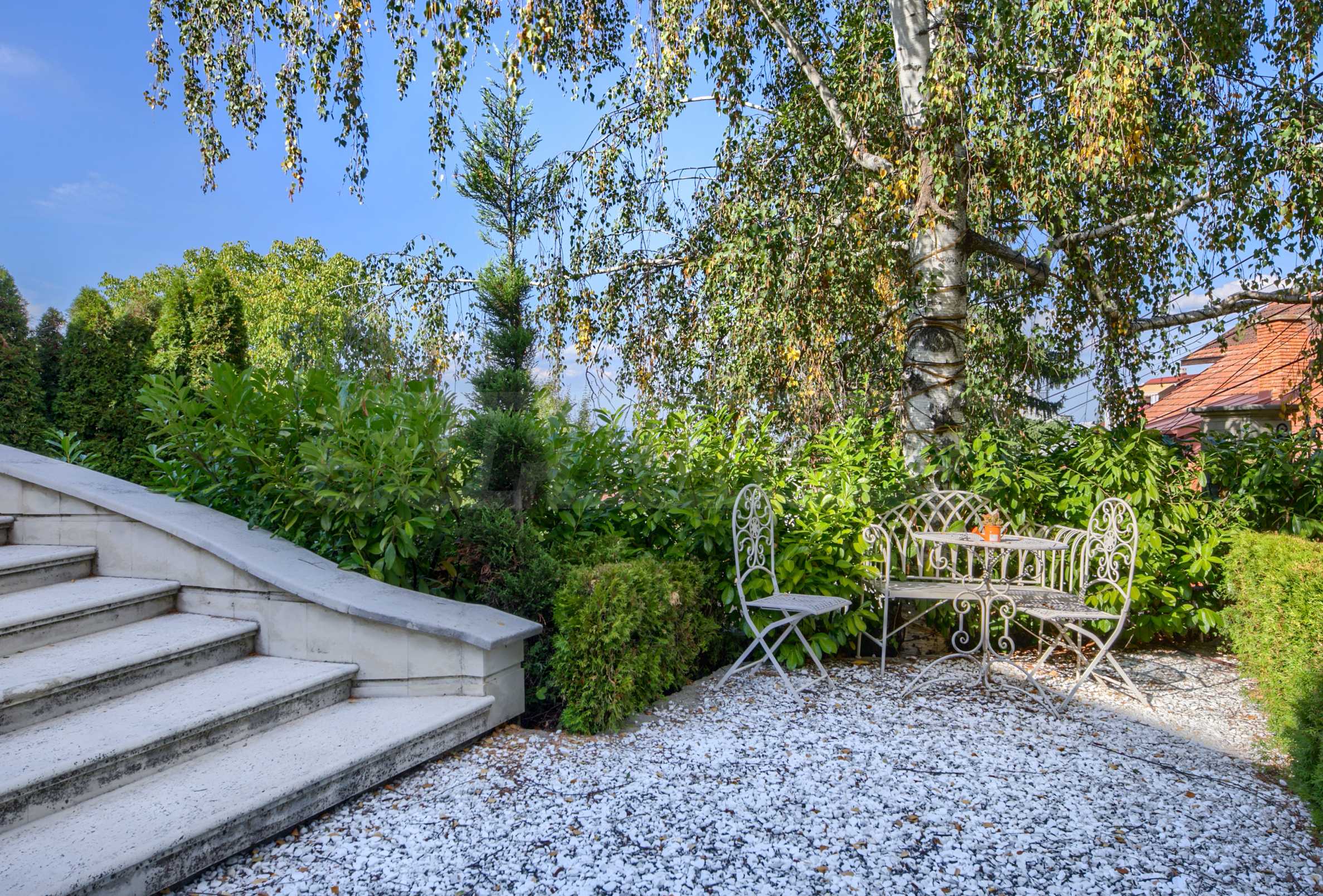 Дом подключен к центральной канализации, во дворе можно припарковать до 5 автомобилей, а общая атмосфера создает ощущение роскошной приватности и аристократического комфорта.