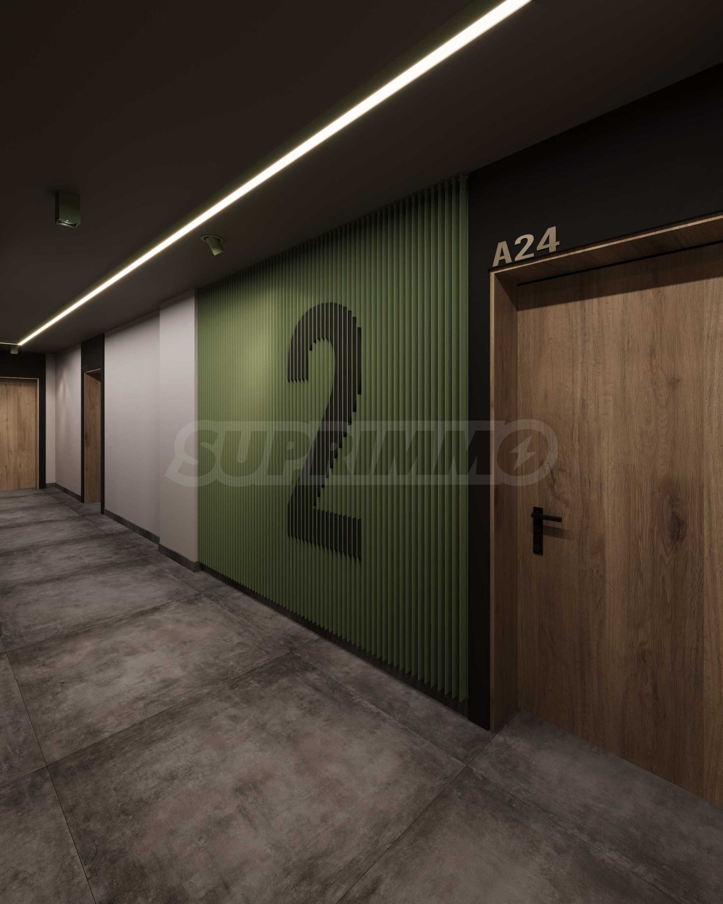 Комплекс представляет собой новую интерпретацию идеи здания с современным и инновационным фасадом в сочетании с квартирами с правильным распределением и оптимизированными помещениями общего пользования.