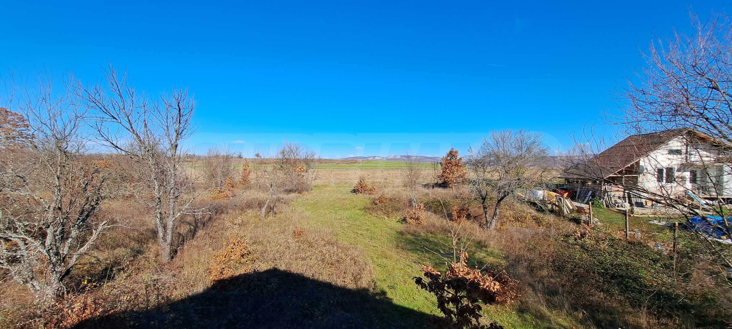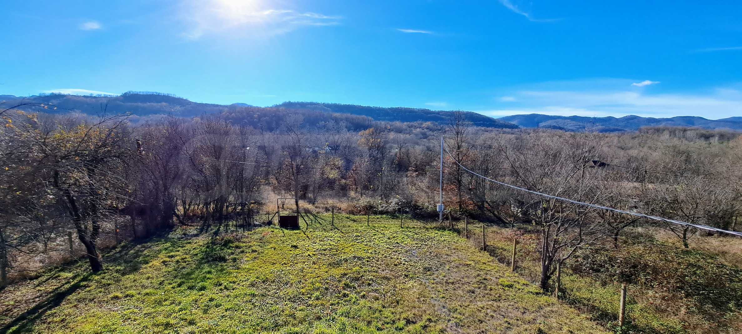 Двор 600 квадратных метров, ровный, солнечный и с видом на Балканы.
