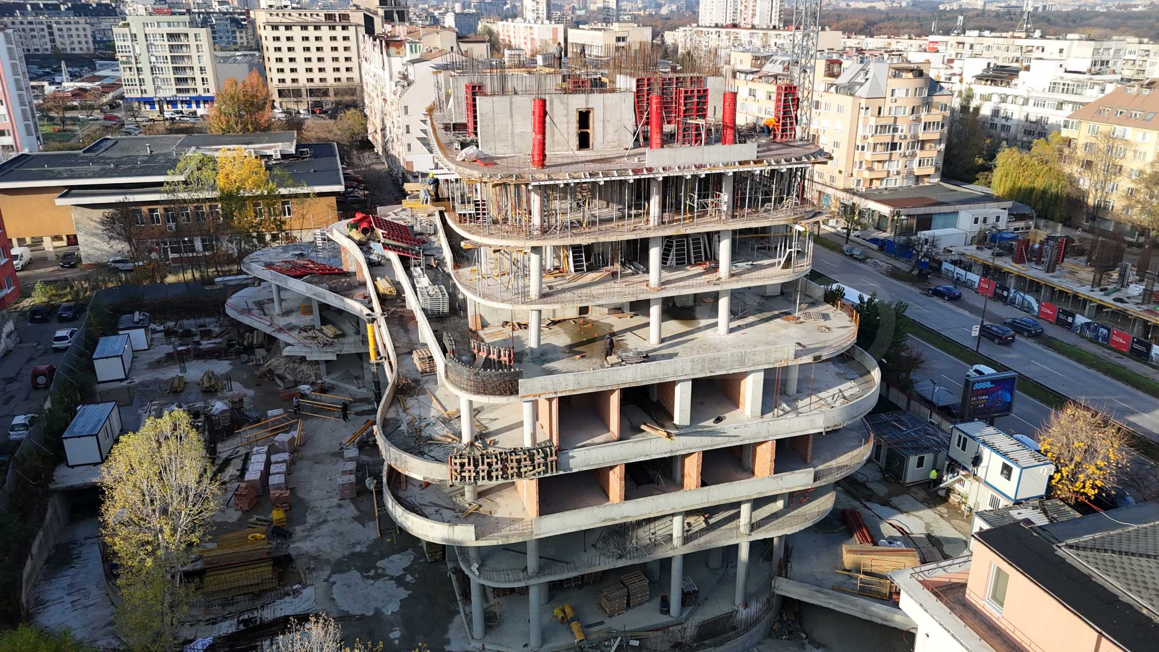 В здании на партерном этаже запланированы три магазина и один ресторан высотой в 4,10 м, с видом на бульвар «Г.М. Димитров», а на втором уровне - 6 офисов. Подход к жилой части будет осуществляться через просторный вестибюль высотой 8 м, расположенный во внутренней части здания. На выбор предлагаются студии и квартиры с 1, 2 и 3 спальнями, с функциональной планировкой, с черновой отделкой (штукатурка и стяжка), с армированными входными дверями Solid и высококачественными алюминиевыми окнами с термомостом и тройным остеклением. Объекты отличаются просторными площадями, прекрасными видами и качественным исполнением. В здании будет установлена система кондиционирования и центральное отопление.