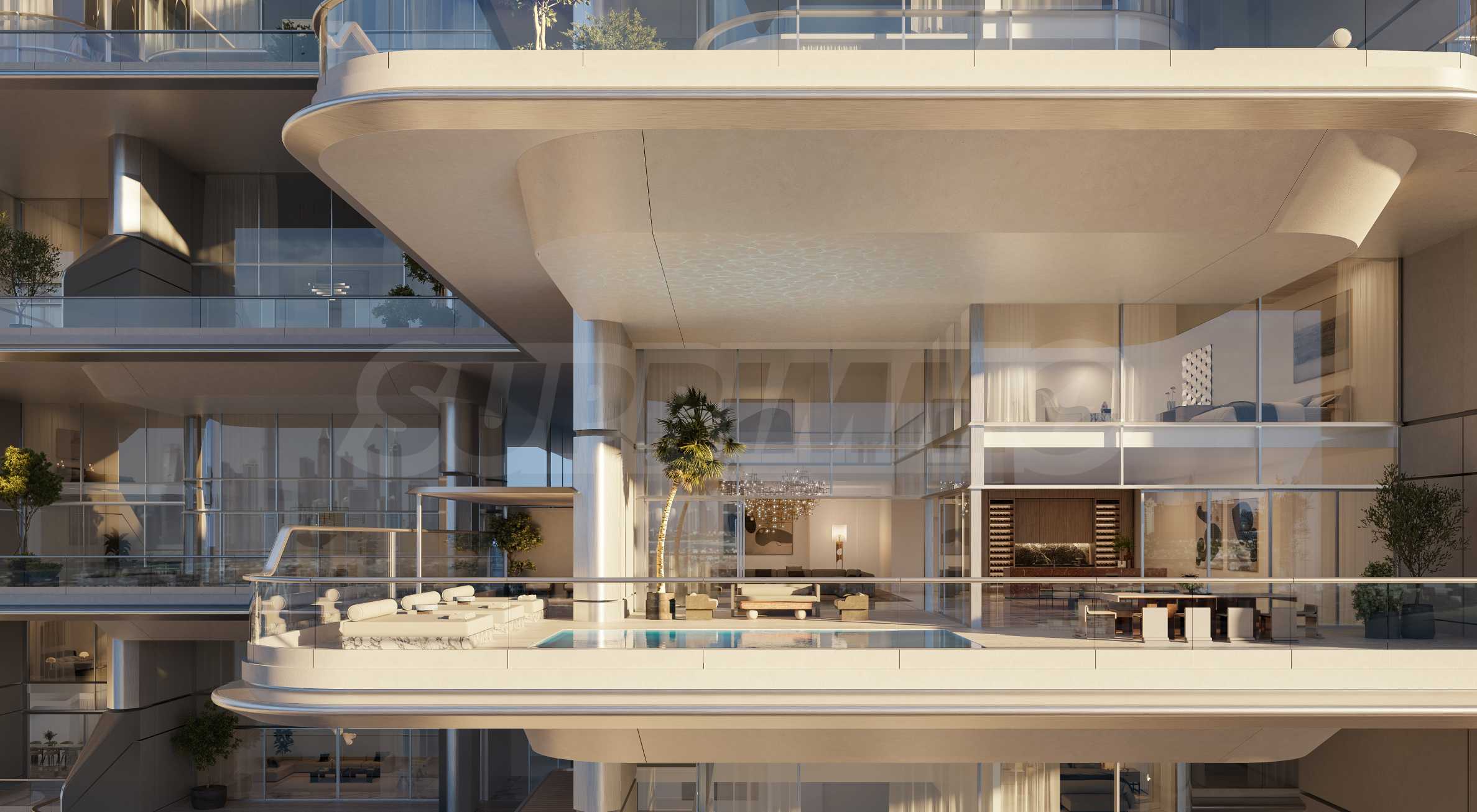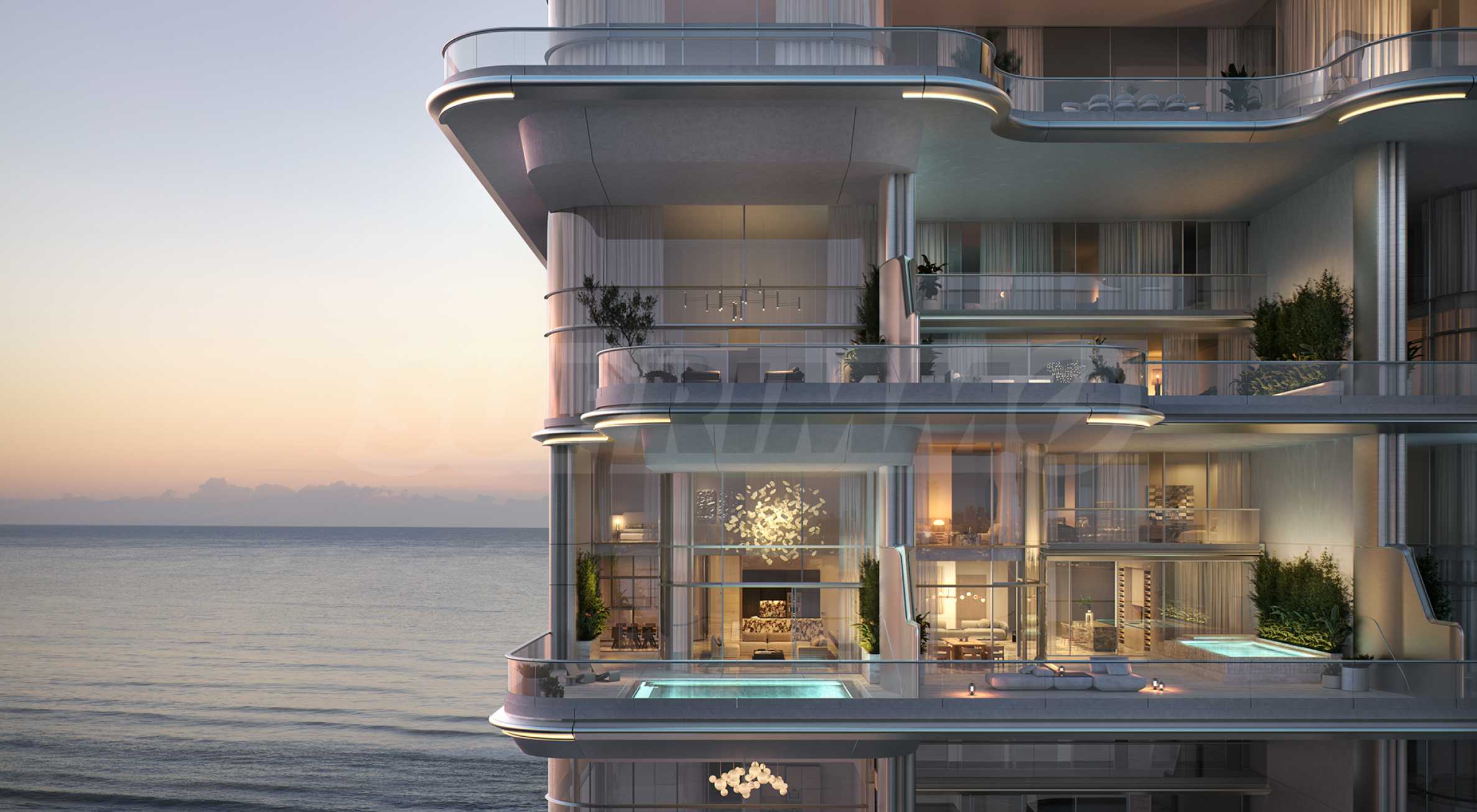 Эстетика домов сочетает в себе разнообразие цветов, фактур и высококачественных материалов. В домах имеются интеллектуальные системы, полностью оборудованные современные кухни и элегантные ванные комнаты. Граница между внутренним пространством и внешним миром плавно размывается благодаря окнам высотой 6,5 м и большим террасам, открывающим обширную панораму на 270 градусов на бирюзовые воды Персидского залива, горизонт Дубая и район Дубай Марина, которой жители могут наслаждаться от восхода до заката.