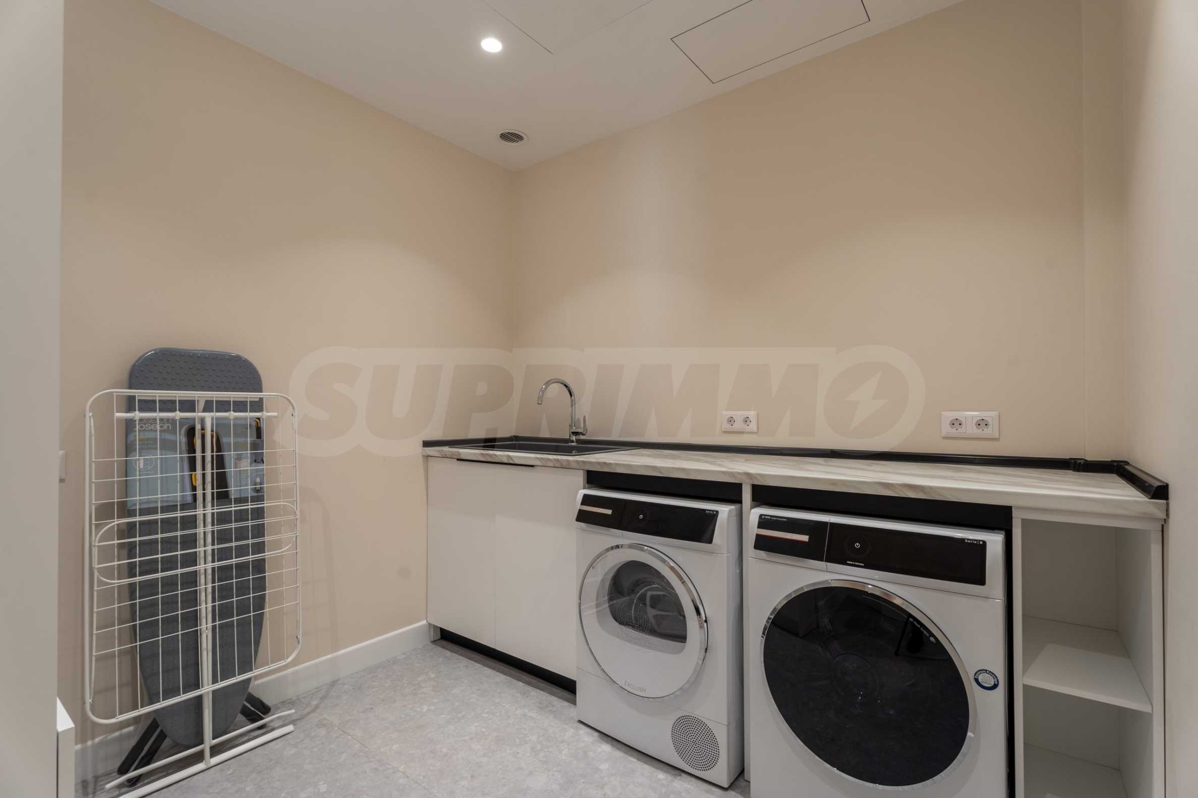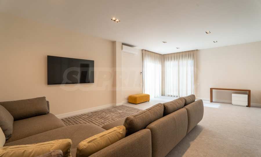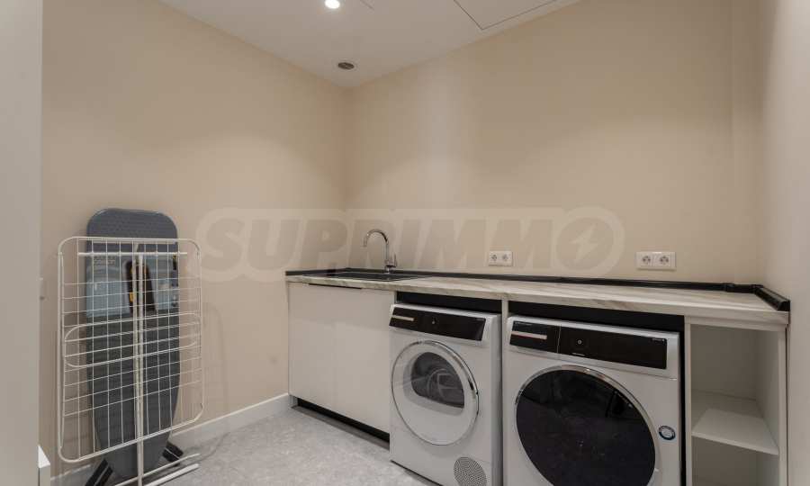 Первый этаж может служить полноценной, самостоятельной резиденцией, функциональной квартирой. Полуподвал 100 кв. метров., имеет отдельный вход с улицы. Этот этаж можно использовать для приема гостей или как игровую комнату, также на уровне есть санузел, прачечная и технические помещения.