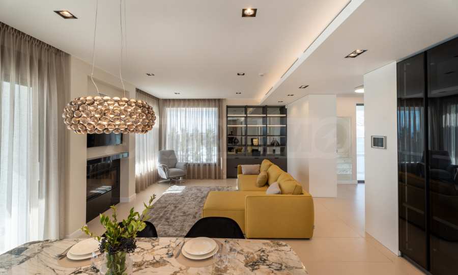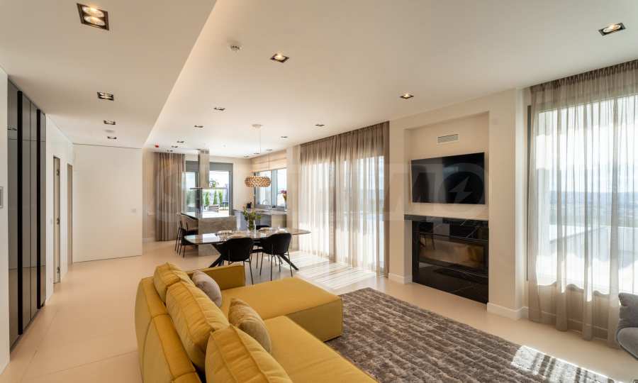 Основная идея дизайна – единое гармоничное пространство интерьера и экстерьера дома на ровной поверхности. Создание больших открытых функциональных террас, балконов и веранд для максимального использования преимуществ и комфорта проживания в условиях мягкого средиземноморского климата. Практичность, удобство и комфорт были тщательно продуманы и воплощены в дизайне объекта.