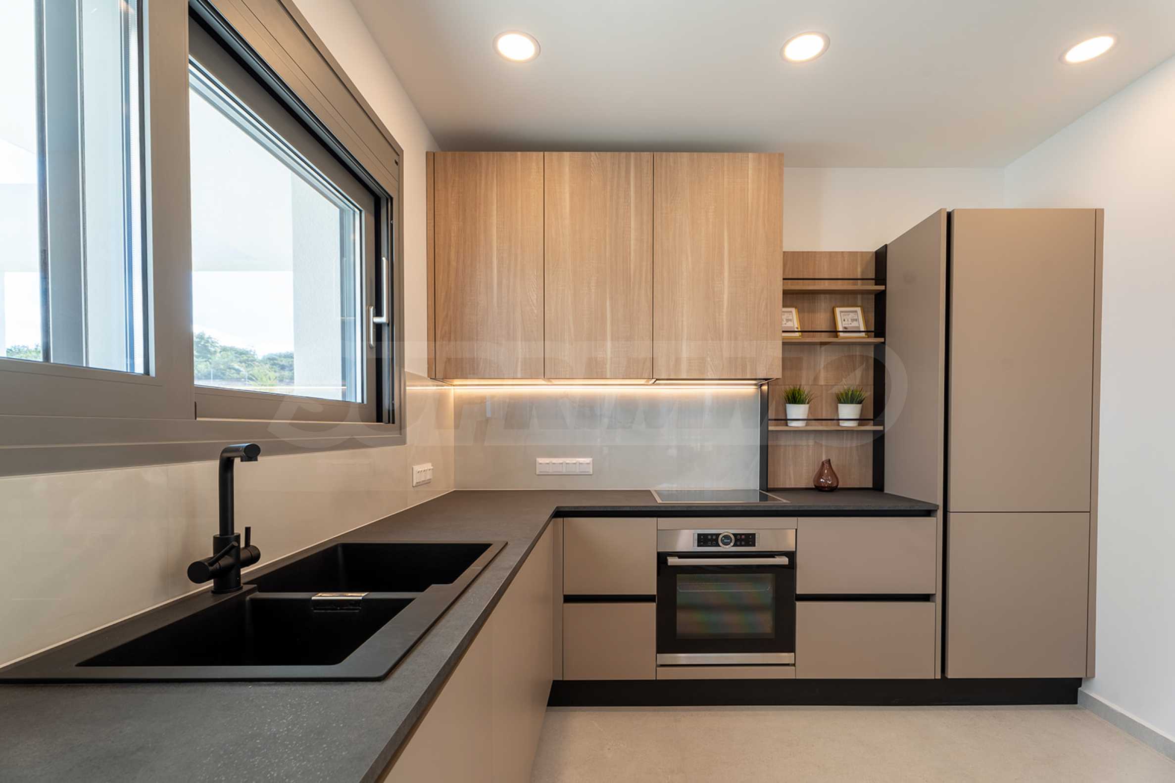 Кухня спроектирована по всем правилам эргономики. Он оснащен лучшим оснащением и имеет достаточно места. Приготовив любимую еду, вы можете выйти на летнюю террасу и позавтракать, любуясь видом на море и горы.