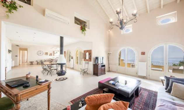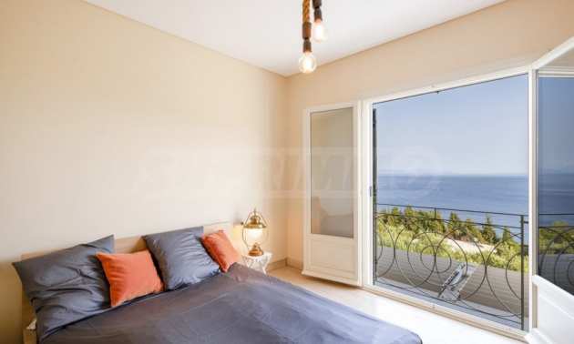 Большие ветровые двери ведут на крытый балкон, который является идеальным местом для отдыха с семьей и друзьям, где вы сможете любоваться синевой ионического моря.
