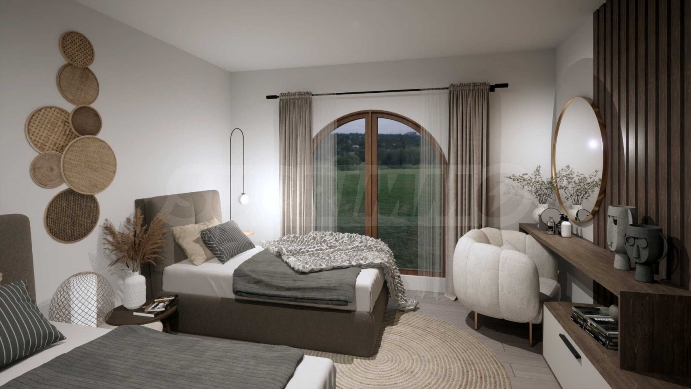 Каждое здание состоит из 8 квартир. дома разных типов, с уникальным видом на холмы Старой Планины и морскую панораму. Здания спроектированы по типу «дома», состоят из трех жилых этажей с 3 жилыми помещениями на первом этаже, 3 жилыми помещениями, одно из которых представляет собой мезонет, на втором этаже и двумя жилыми помещениями на третьем уровне.
