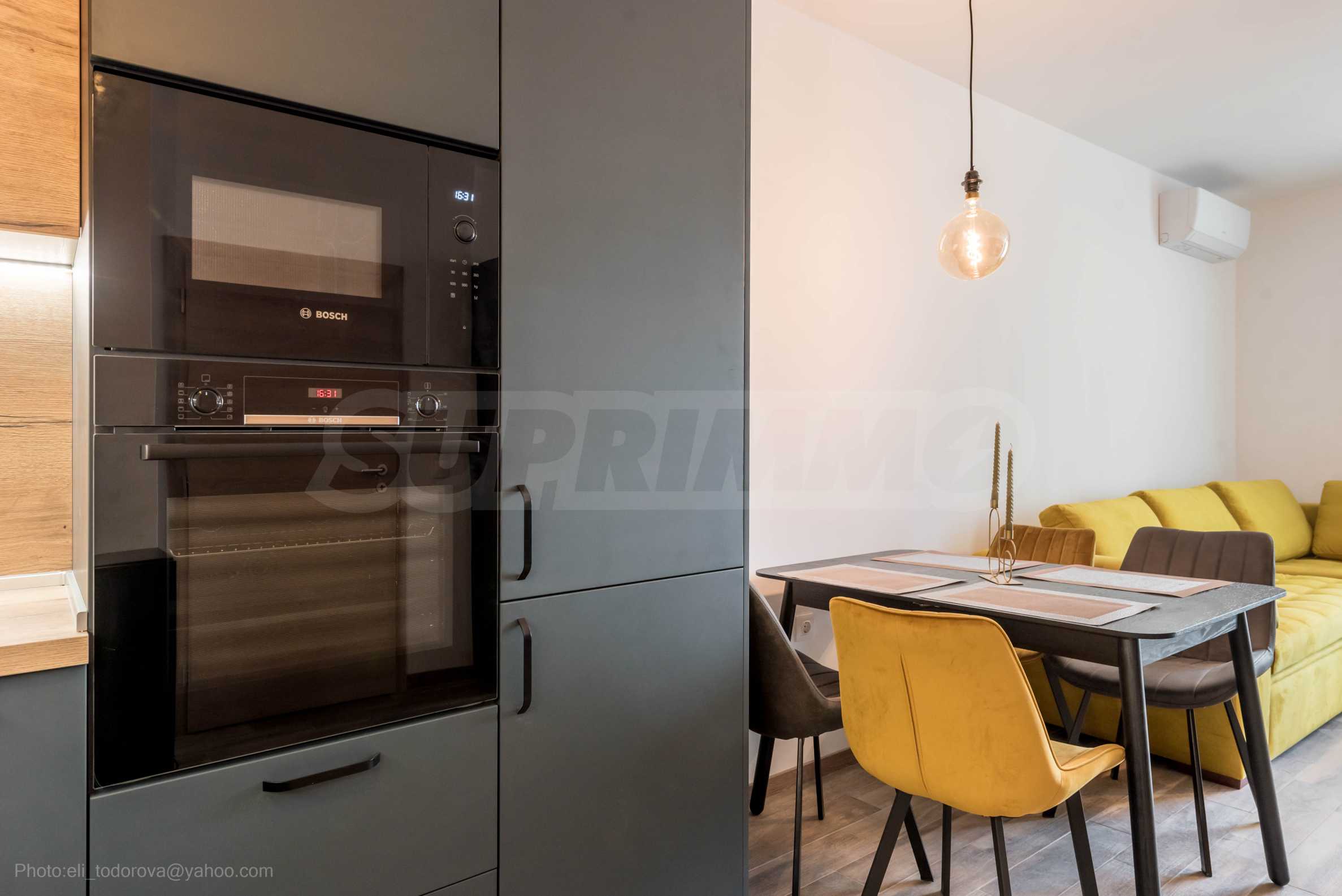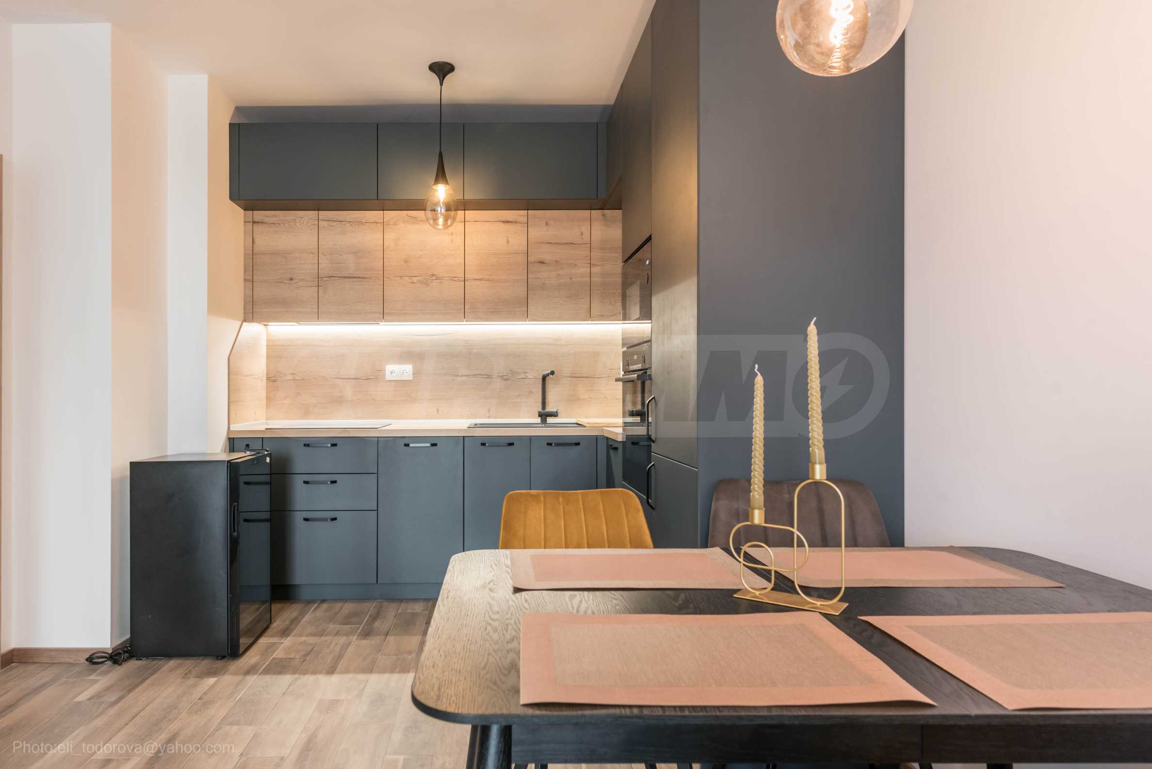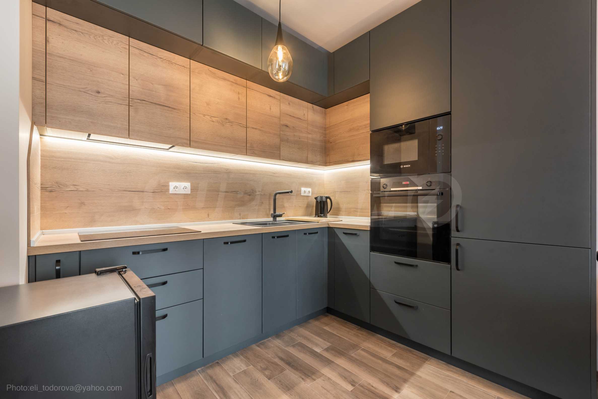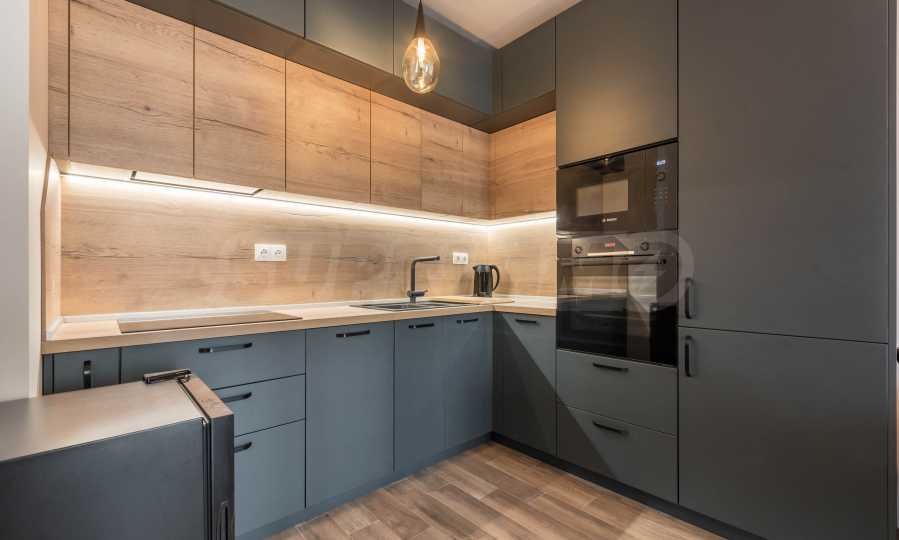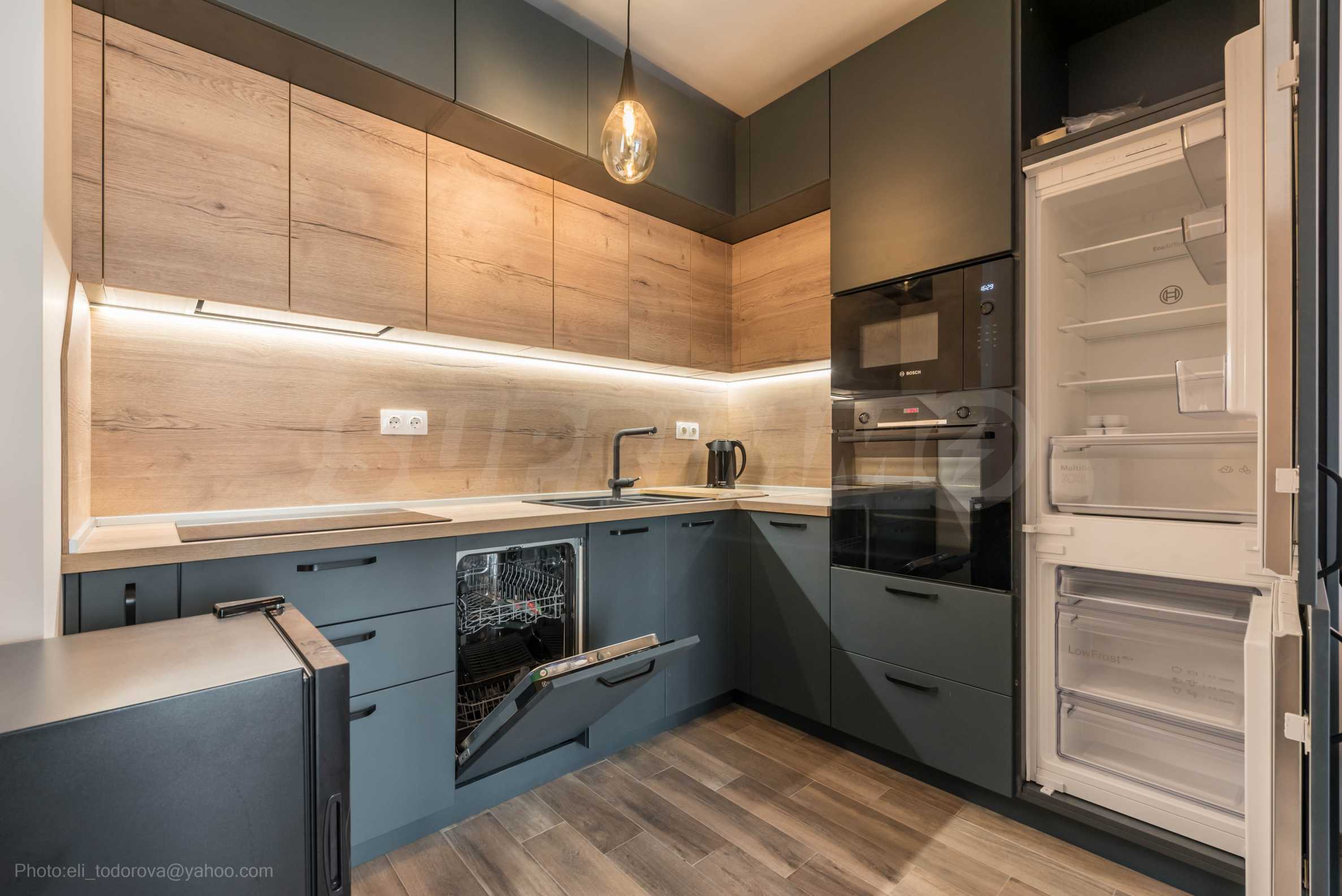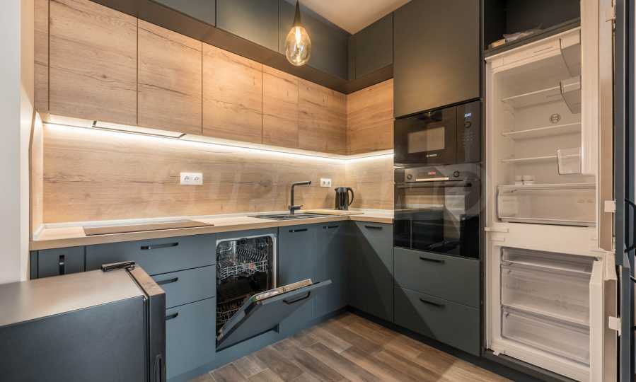 Квартира полностью меблирована и оборудована всем необходимым для комфортного проживания. Элегантный интерьер, современная мебель, кухня полностью оборудована встроенным холодильником, духовкой, керамической варочной панелью, посудомоечной и стиральной машинами.