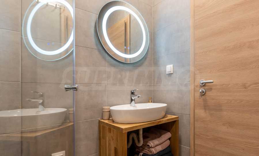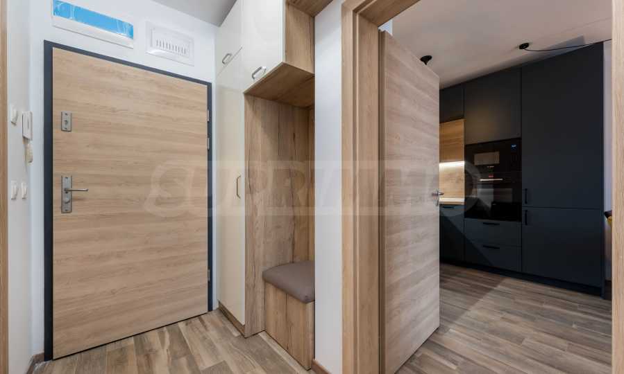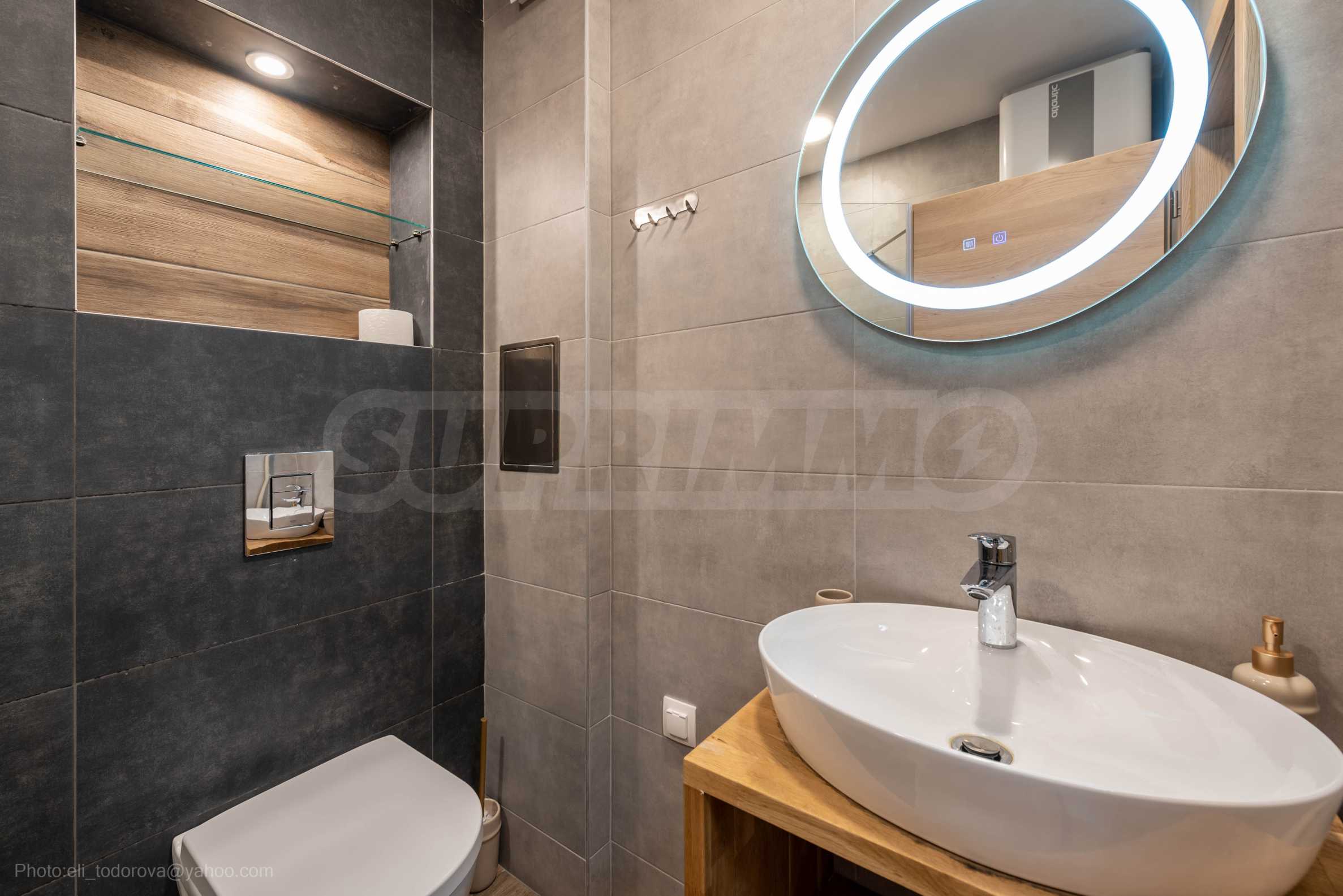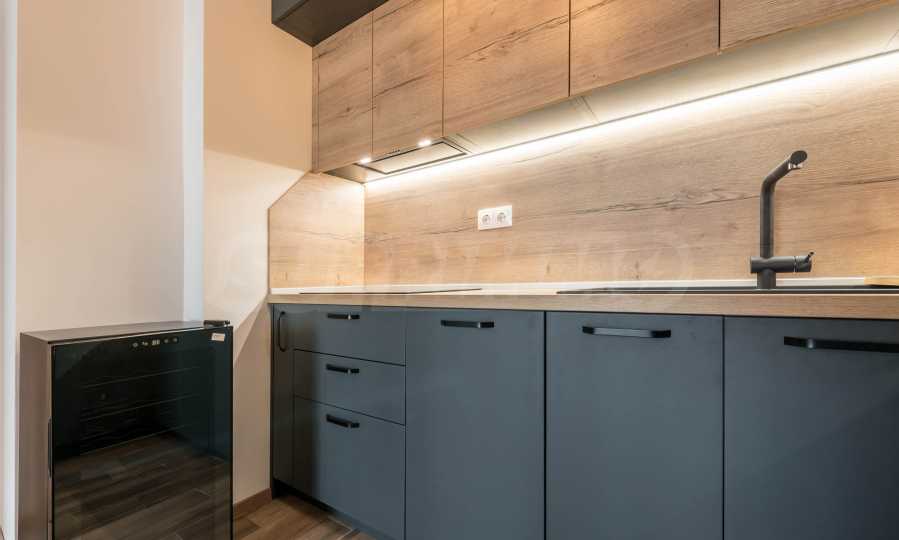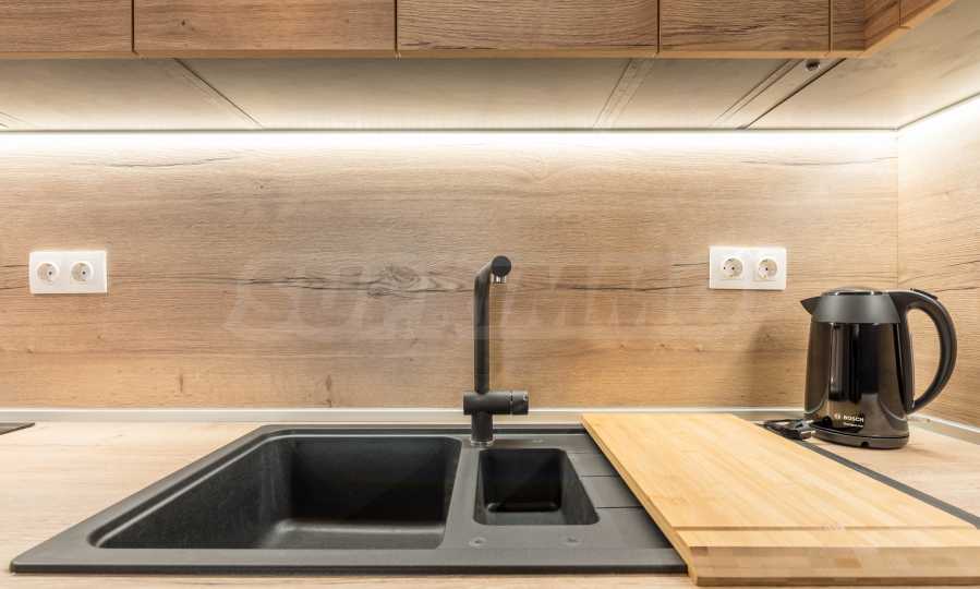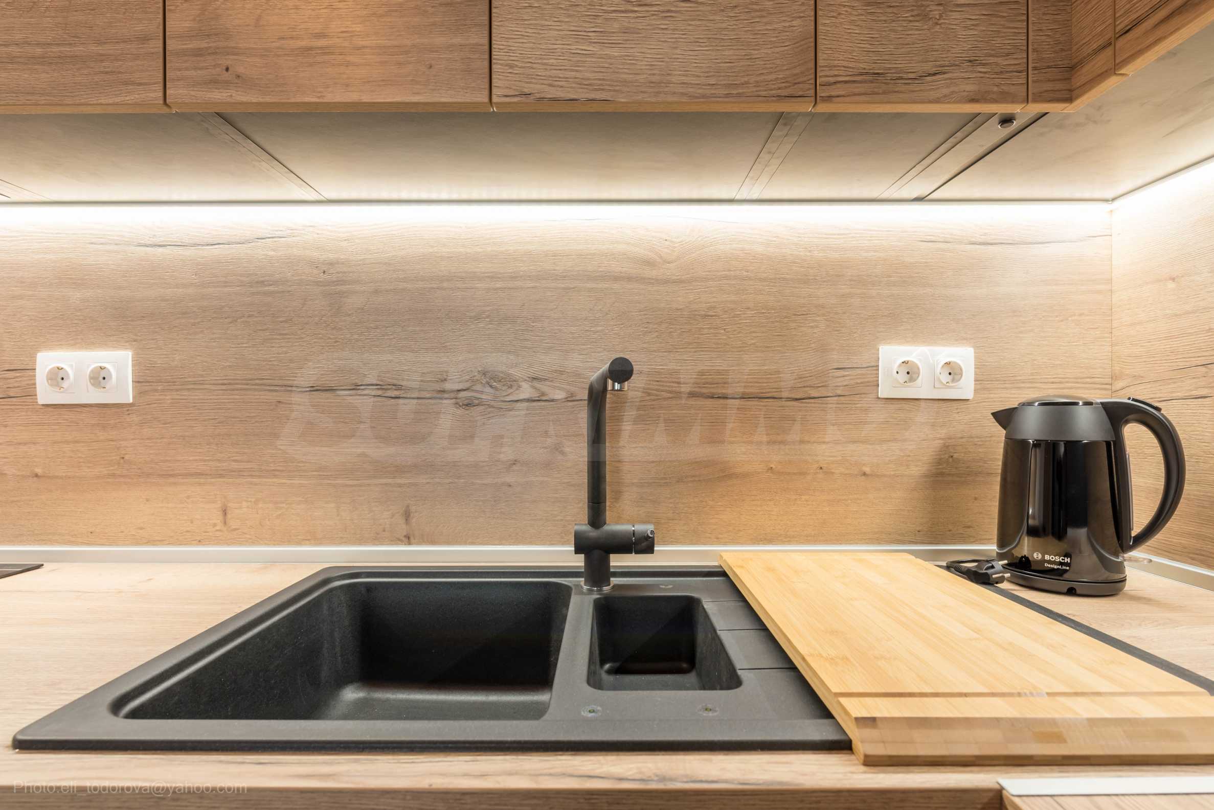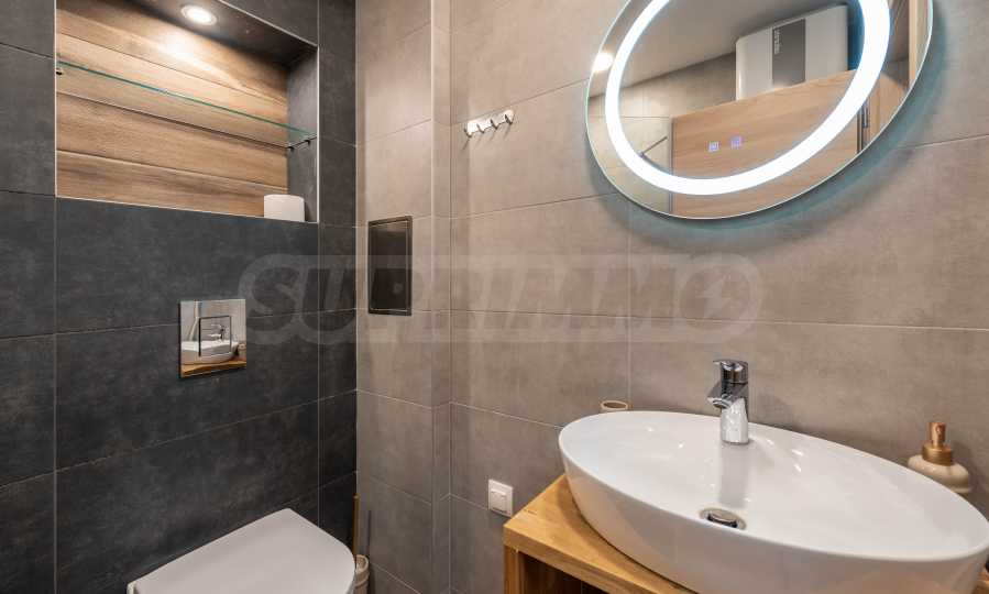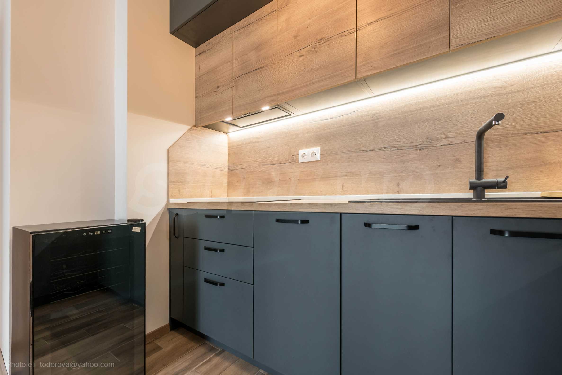 Квартира полностью меблирована и оборудована всем необходимым для комфортного проживания. Элегантный интерьер, современная мебель, кухня полностью оборудована встроенным холодильником, духовкой, керамической варочной панелью, посудомоечной и стиральной машинами.