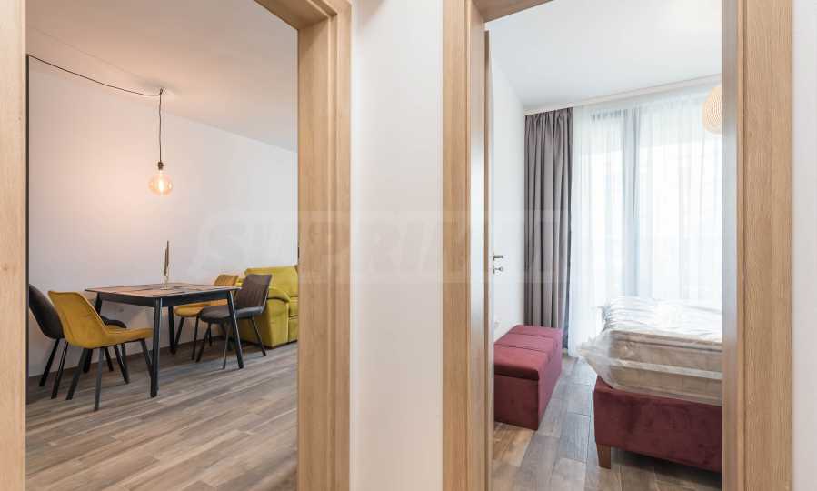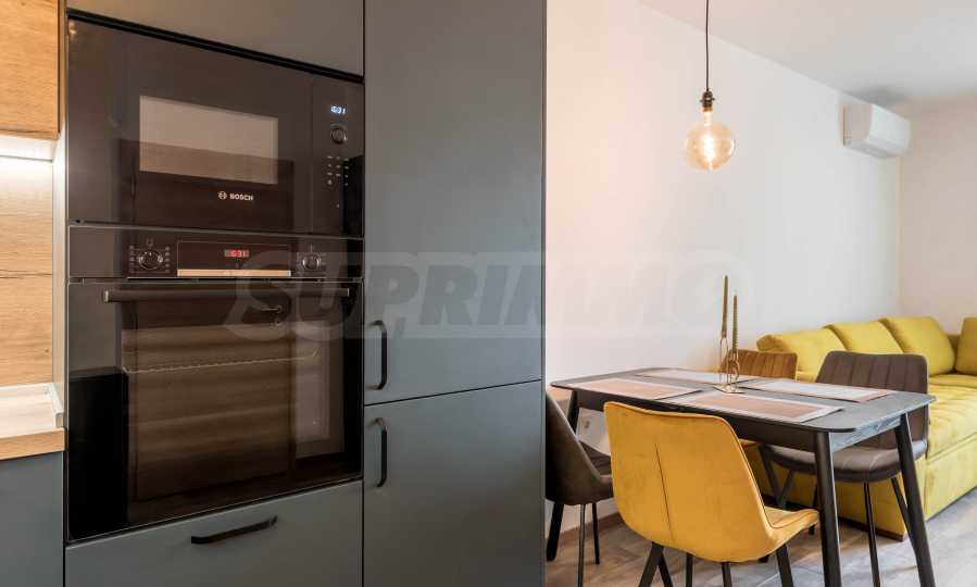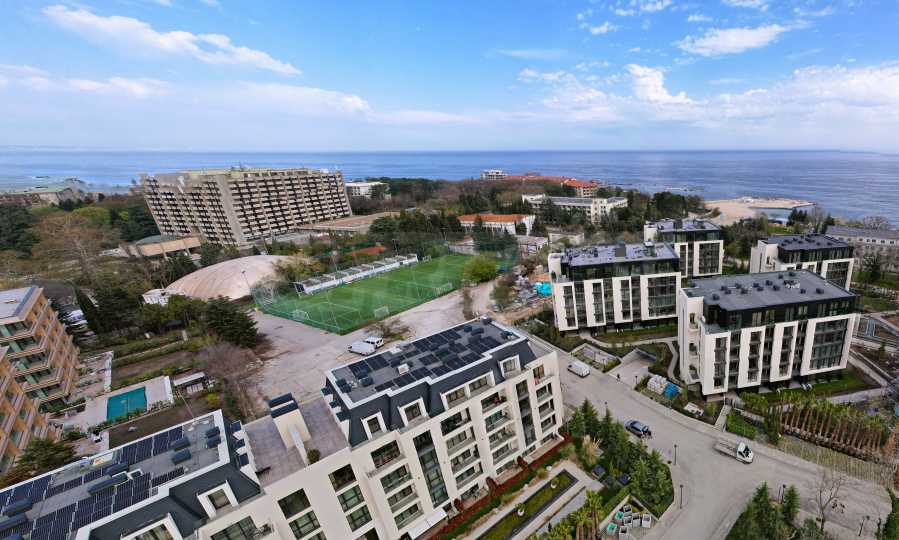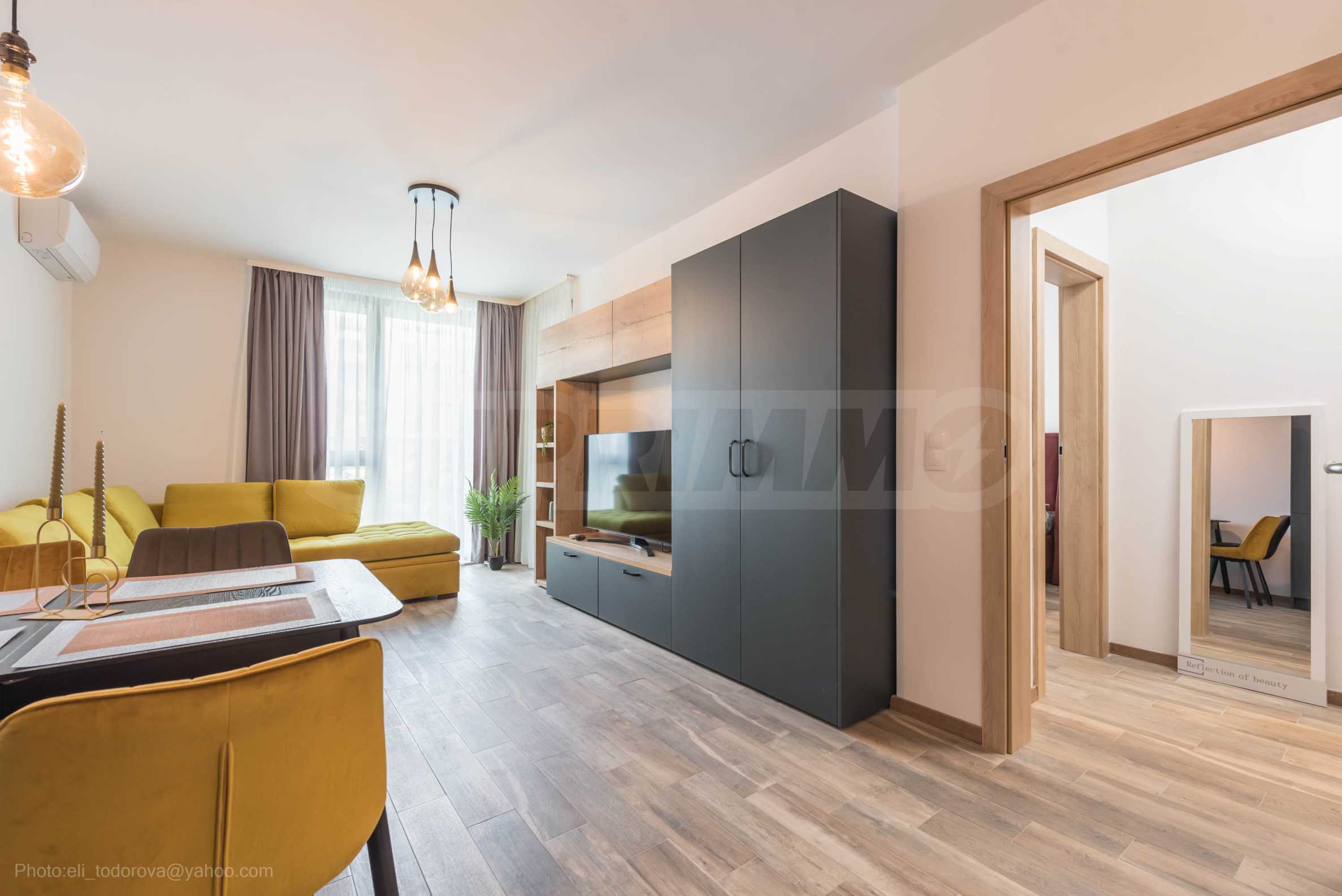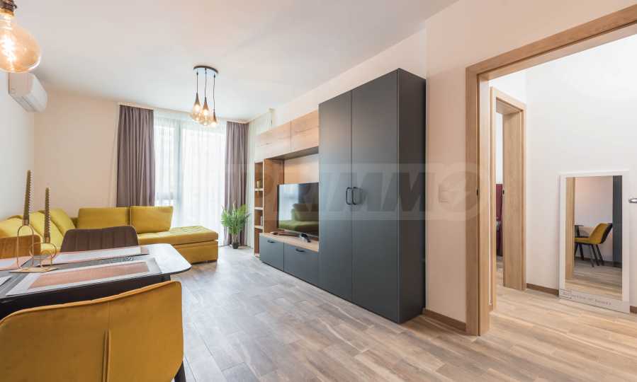 Представляем в аренду совершенно новую, комфортабельно меблированную двухкомнатную квартиру, являющуюся частью элитного недавно построенного комплекса в пешей доступности от пляжа Святых Константина и Елены.
