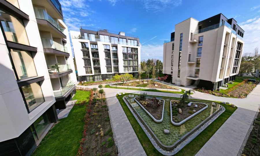 Комплекс закрытого типа с роскошными общими зонами, охраной и прекрасными садами, идеально подходящими для прогулок и отдыха. В ближайшее время откроются бассейн и СПА-центр, бесплатный доступ для всех жильцов.