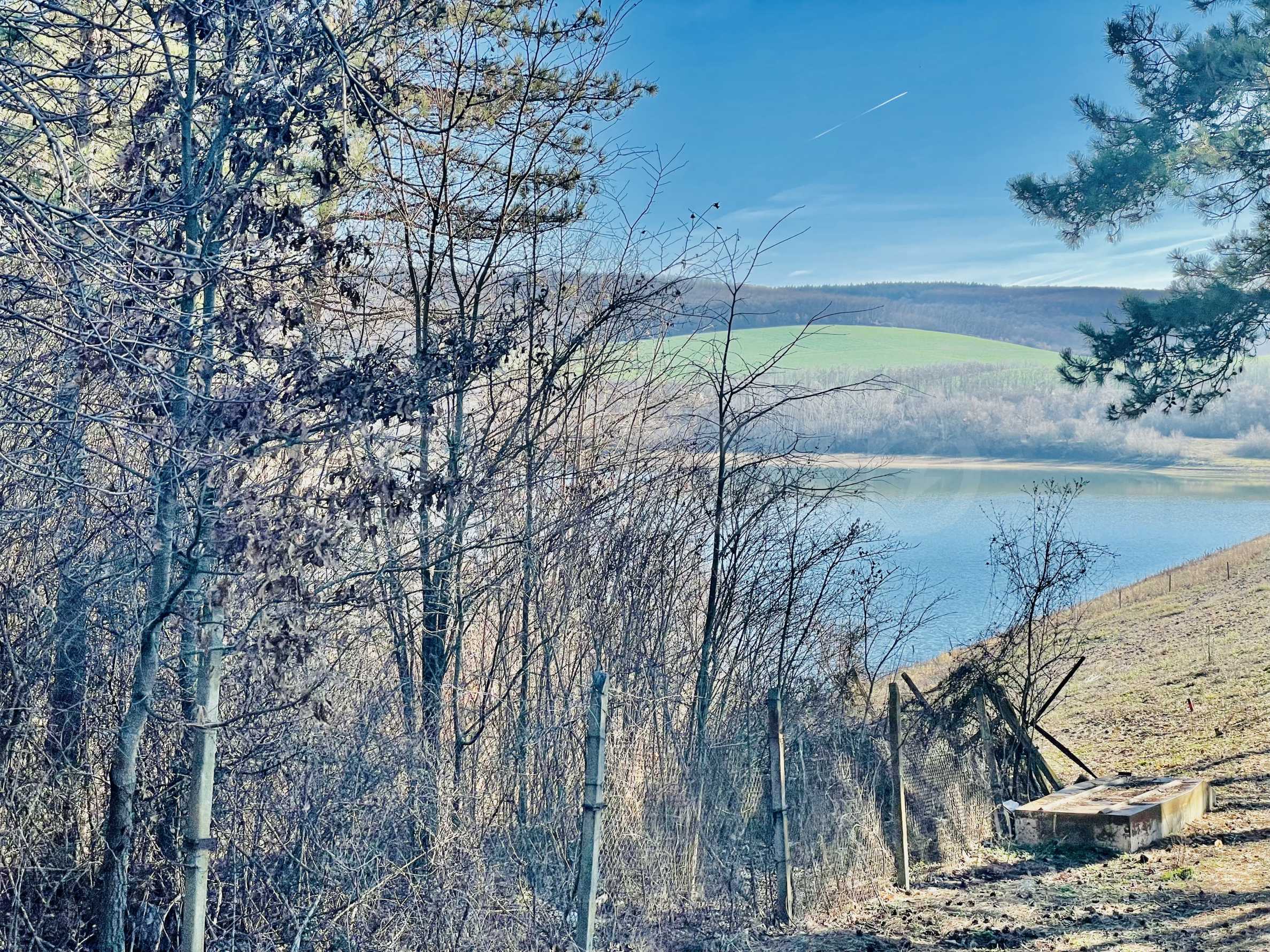 Сельскохозяйственная земля на берегу плотины, подходящая для кемпинга