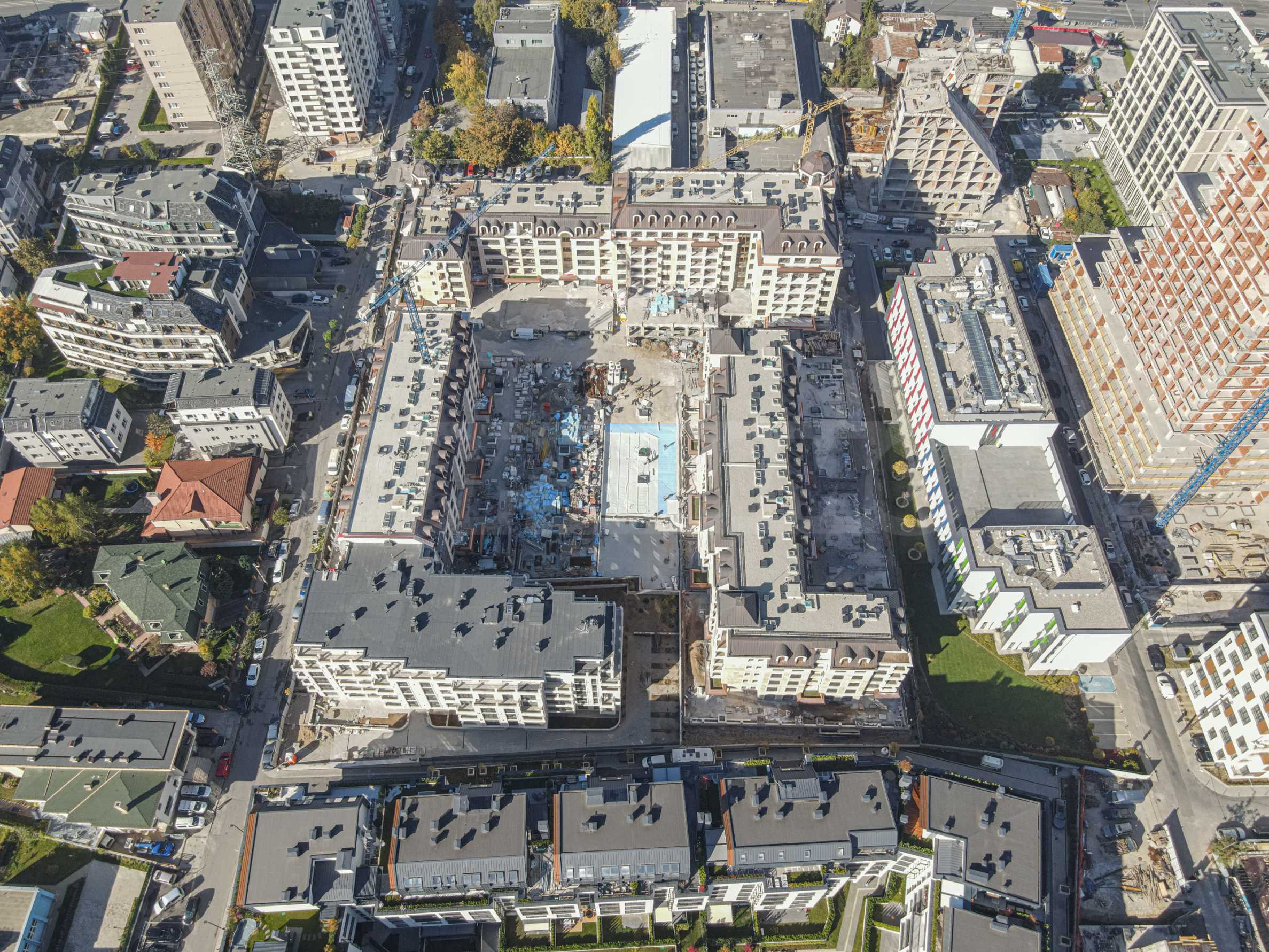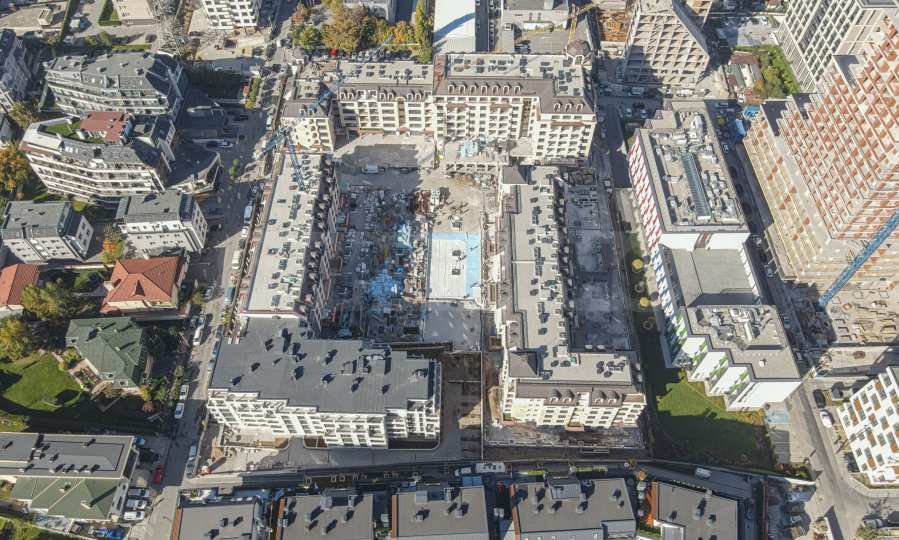 Комплекс состоит из 4 жилых корпусов, подземной автостоянки с гаражами и машиноместами, охраны, богато благоустроенной обширной парковой зоны с детской площадкой, зонами отдыха, СПА-центра с крытым бассейном и тренажерным залом, бистро и ресепшн с функциями консьержа, что обеспечит будущим владельцам полноценные 5-звездочные удобства, уют и комфорт проживания.