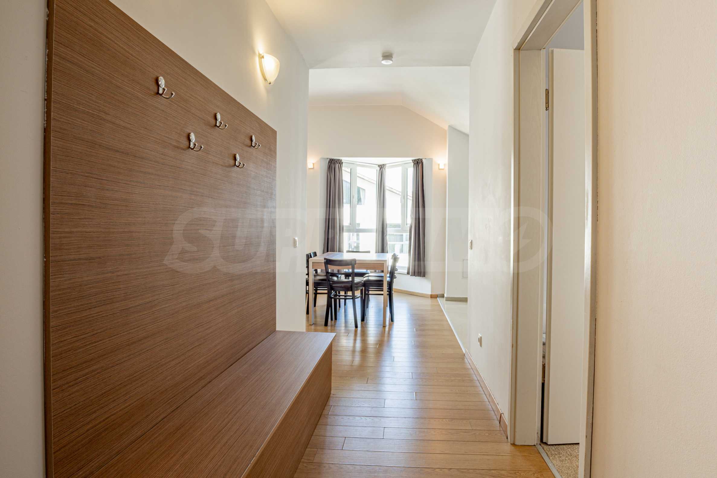 С большим удовольствием представляем роскошно обставленную и просторную трехкомнатную квартиру в современном закрытом комплексе, построенном в районе Кошерина горного курорта Банско.