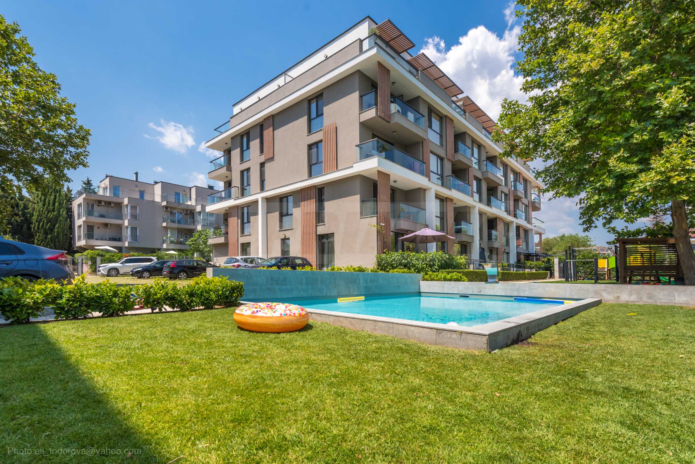 Выбирайте современную и стильную двухкомнатную квартиру посуточно в комплексе с бассейном на курорте Свети Св. Константин и Елена.