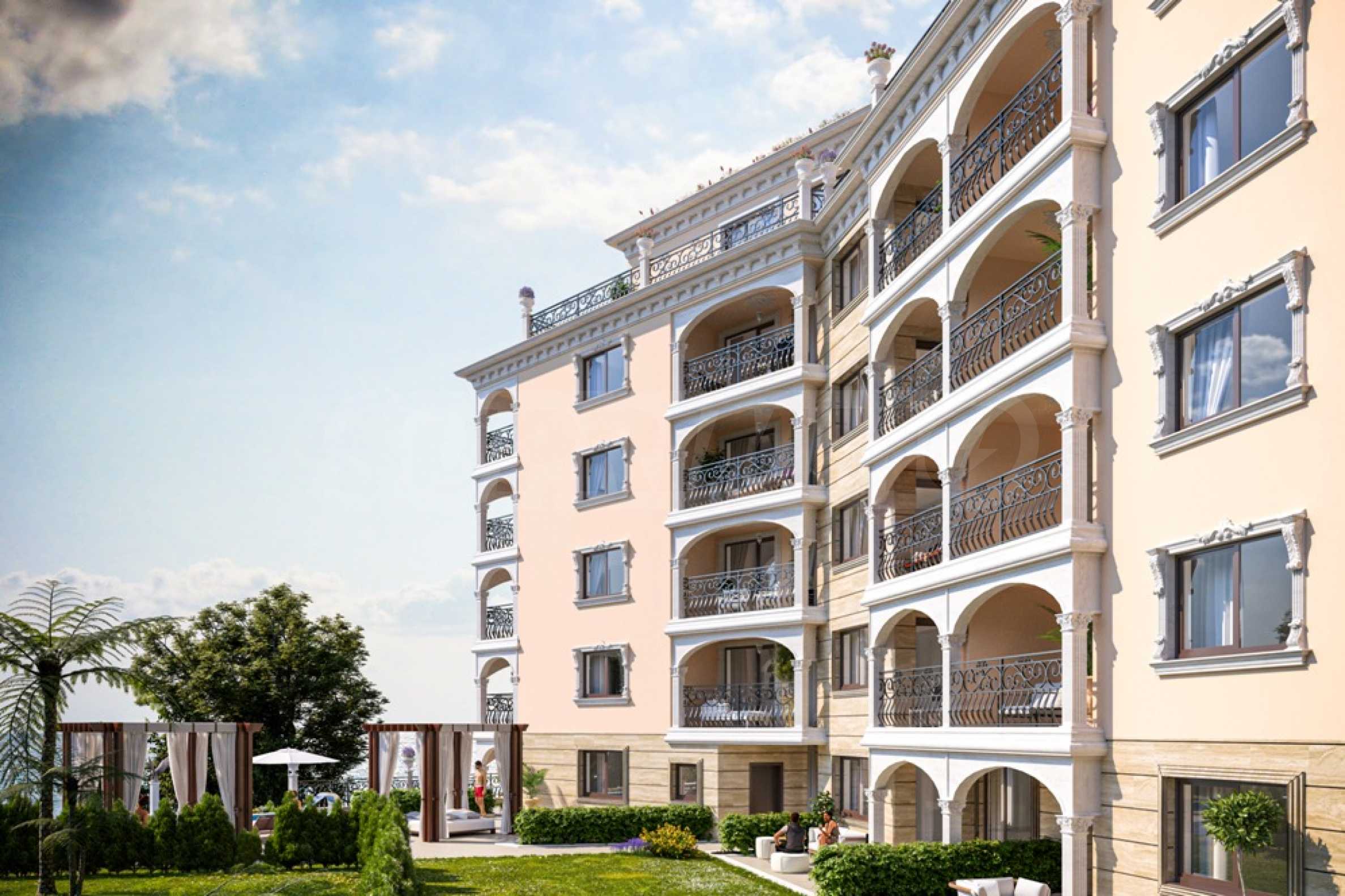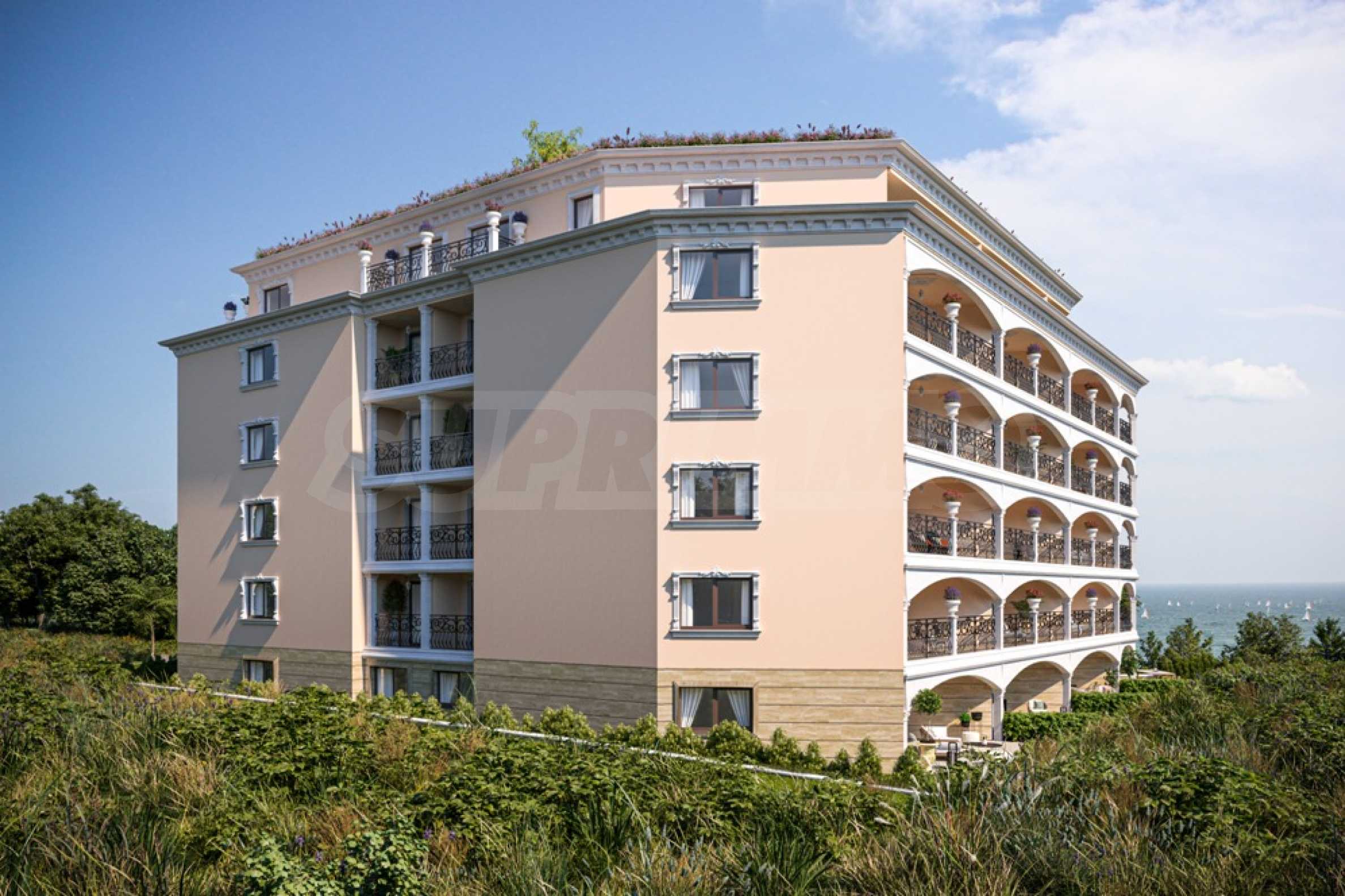 В элегантном и современном комплексе, в современном и классическом архитектурном стиле, расположенном на первой линии в новой части Несебра, в непосредственной близости от исторической части города и Южного парка.
