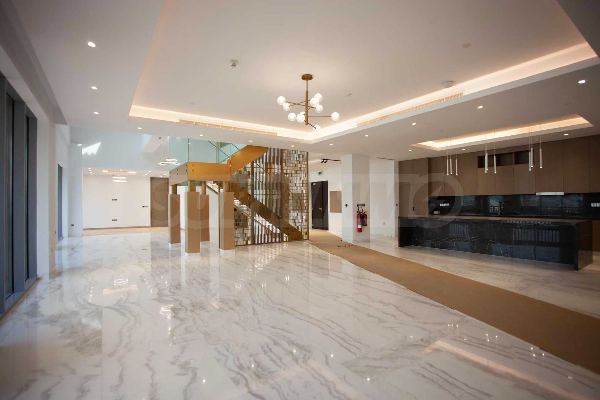 Недвижимость, которую мы представляем на продажу, представляет собой роскошный пентхаус с уникальными деталями интерьера и акцентом на естественное освещение. На двух этажах резиденции расположены 10 комнат, в том числе спальня для личного персонала и 4 спальни со своей гардеробной и прилегающими ванными комнатами с туалетом. В доме есть 3 балкона с уникальным видом и просторная терраса, на которой расположен бассейн. В апартаментах есть хорошо оборудованная кухня и элегантно обставленные ванные комнаты.