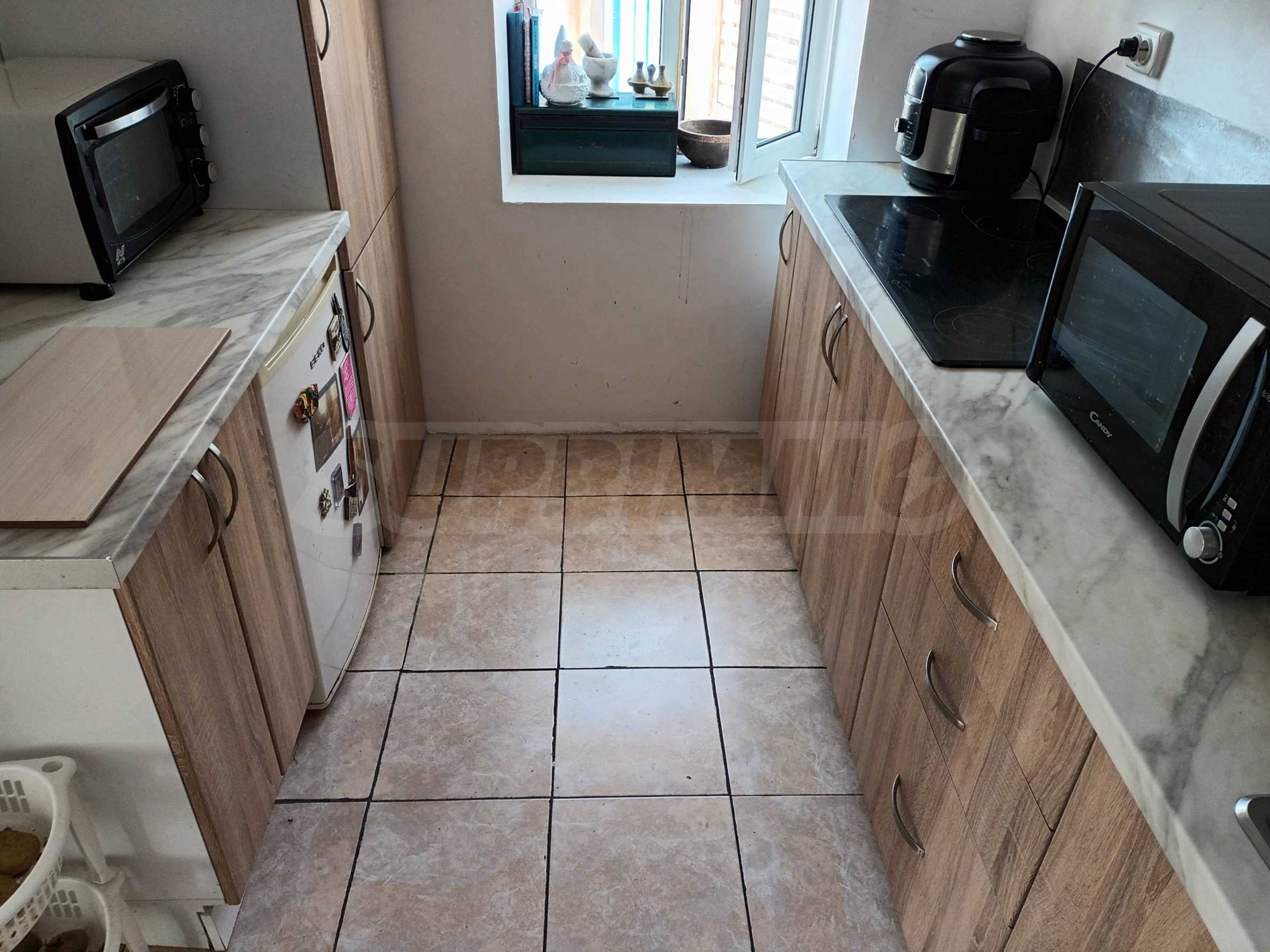 Полы - терракота и ламинированный паркет, окна - стеклопакеты.
