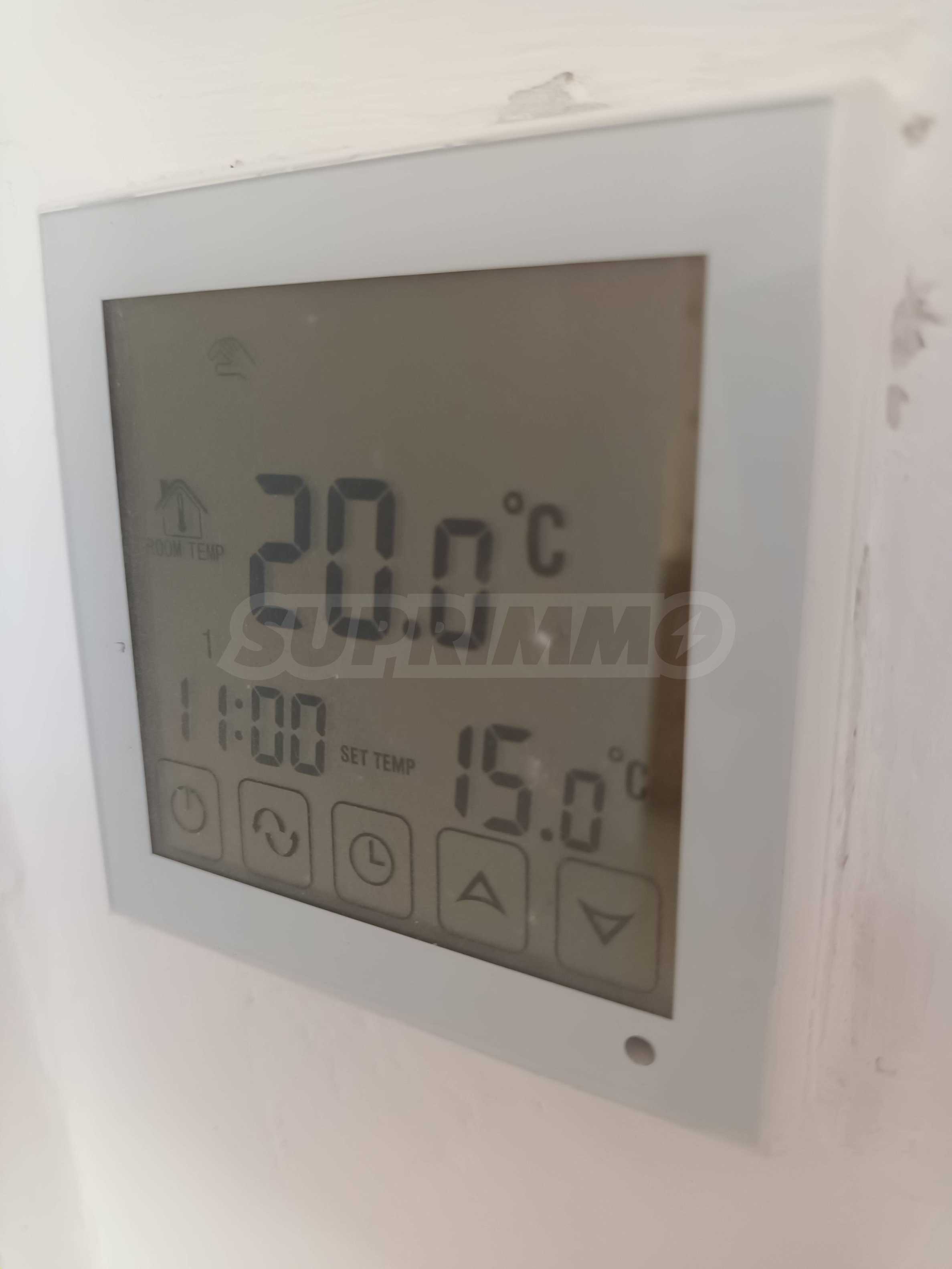 Отопление осуществляется кондиционерами на втором этаже, дровяными печами и электрическими полами с подогревом на первом этаже, в каждой комнате есть отдельный автономный контроллер.