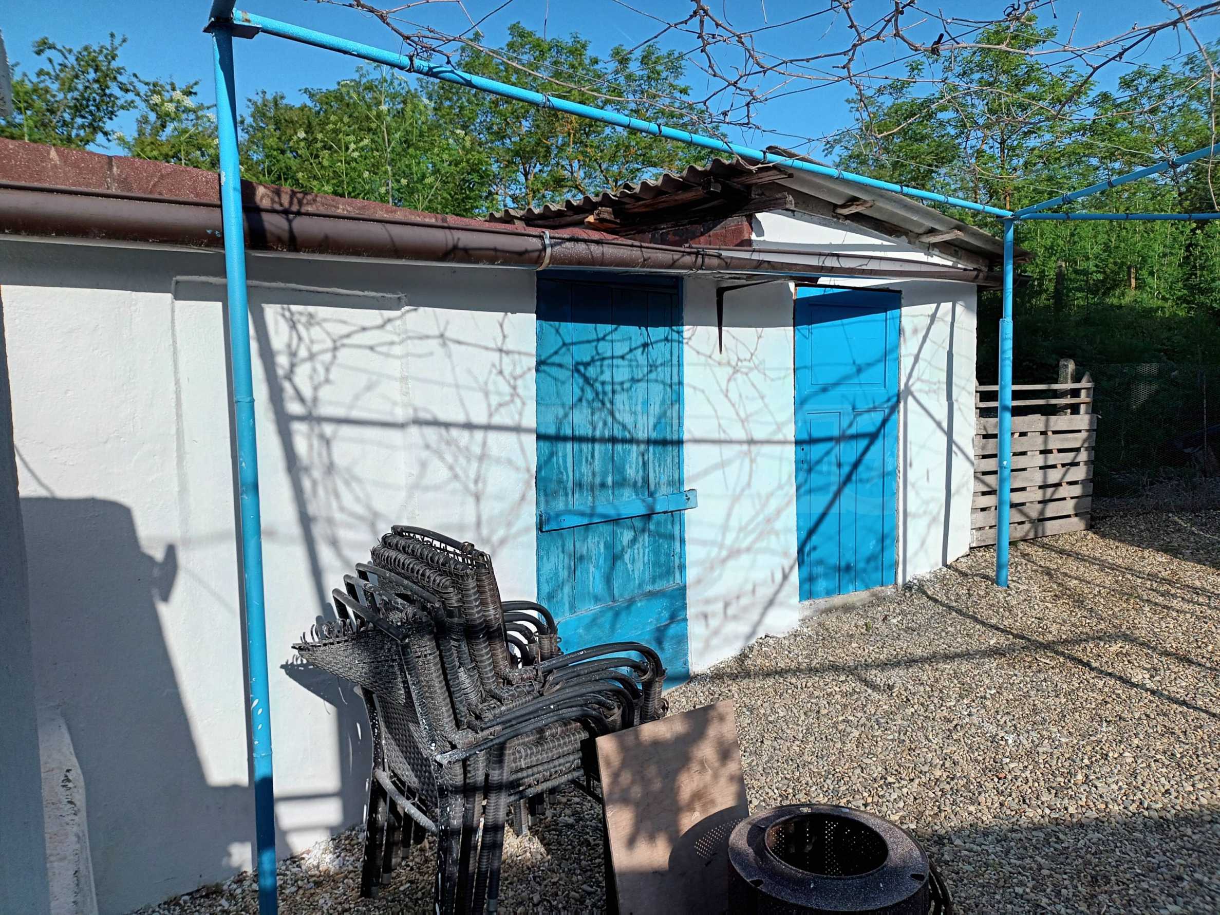 На территории есть гараж, большая пристройка, которая в настоящее время используется как мастерская, и еще одна пристройка меньшего размера, которую можно использовать как мастерскую или летнюю кухню.