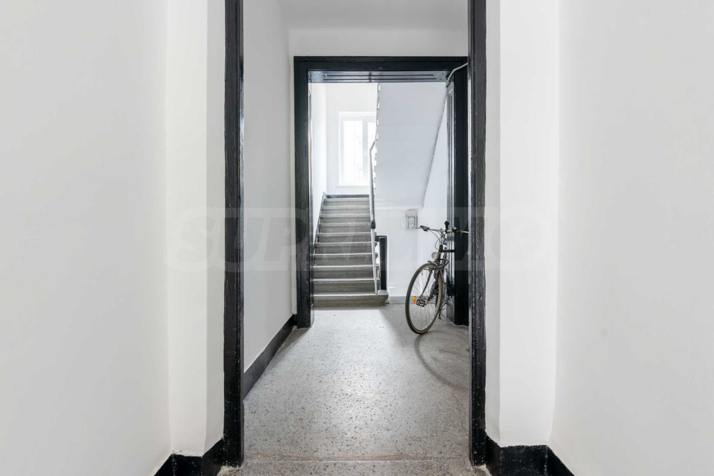 Квартира расположена в нескольких шагах от Министерства общественных работ, в непосредственной близости от Математической средней школы, улицы Раковской и бульвара Васила Левски. Менее чем в 10 минутах ходьбы находятся памятник Александру Невскому и Национальная опера. Район отличается характерной архитектурой: невысокие дома с двориками, аккуратные входы с орнаментами и культурные здания. К квартире прилагается парковочное место во внутреннем дворе здания, что является существенным преимуществом для центральной части города.