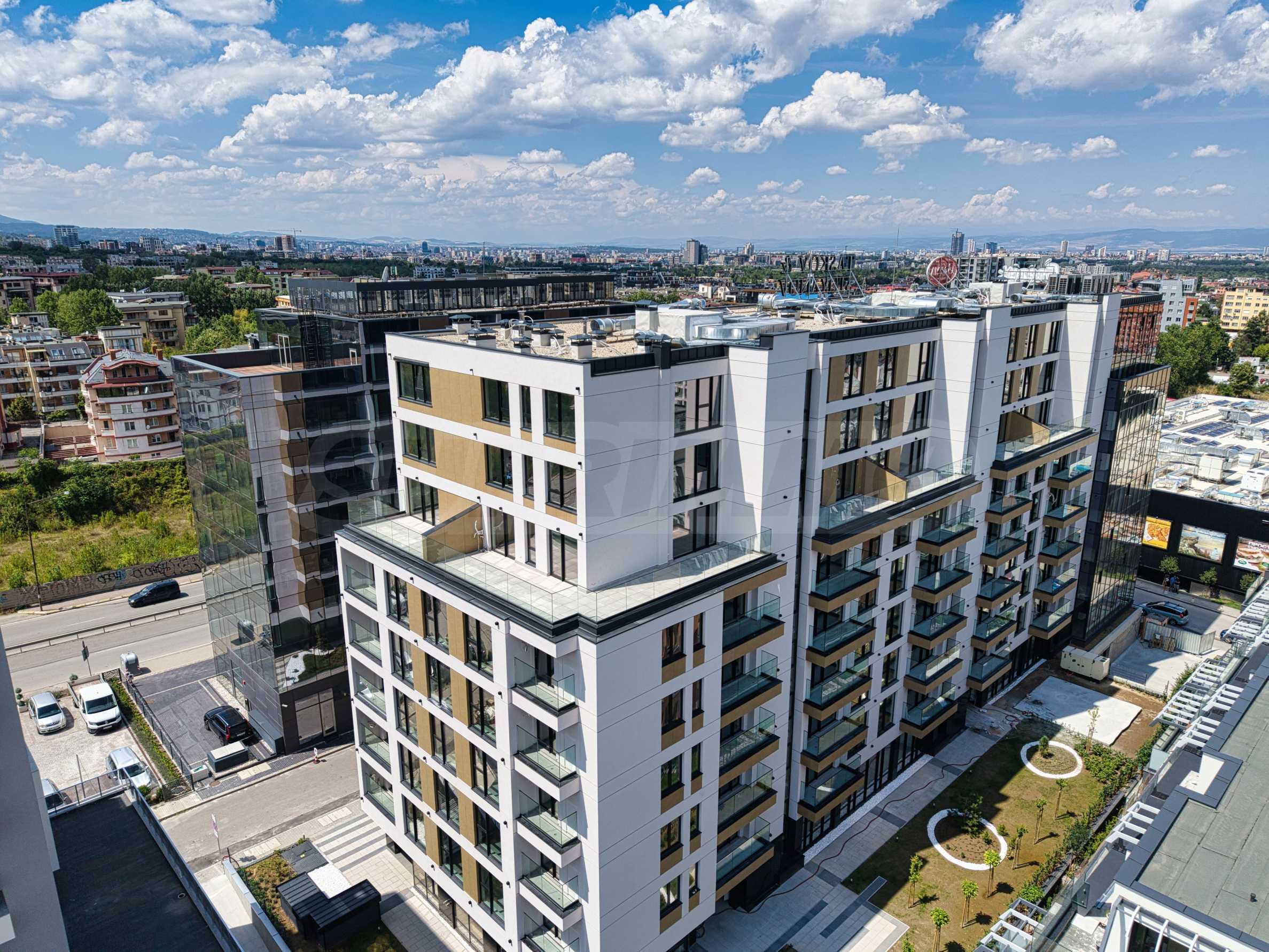 Здание удобно расположено рядом с остановкой общественного транспорта, будущей станцией метро (3 мин. пешком), университетом «Студенческий Град», Кольцевой дорогой, торговыми центрами «Ринг Молл» и «Парадайз Центр», бизнес-парком «София», природным парком «Витоша», детскими садами и школами.
