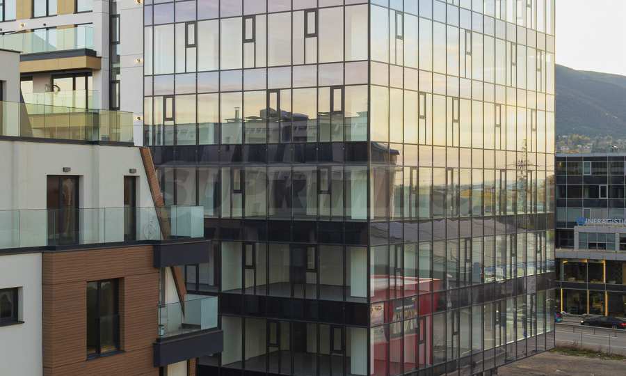 • Вентилируемый фасад из алюминиевых окон LAMINAM, ALUMIL с тройным остеклением и теплой дистанционной рамкой;