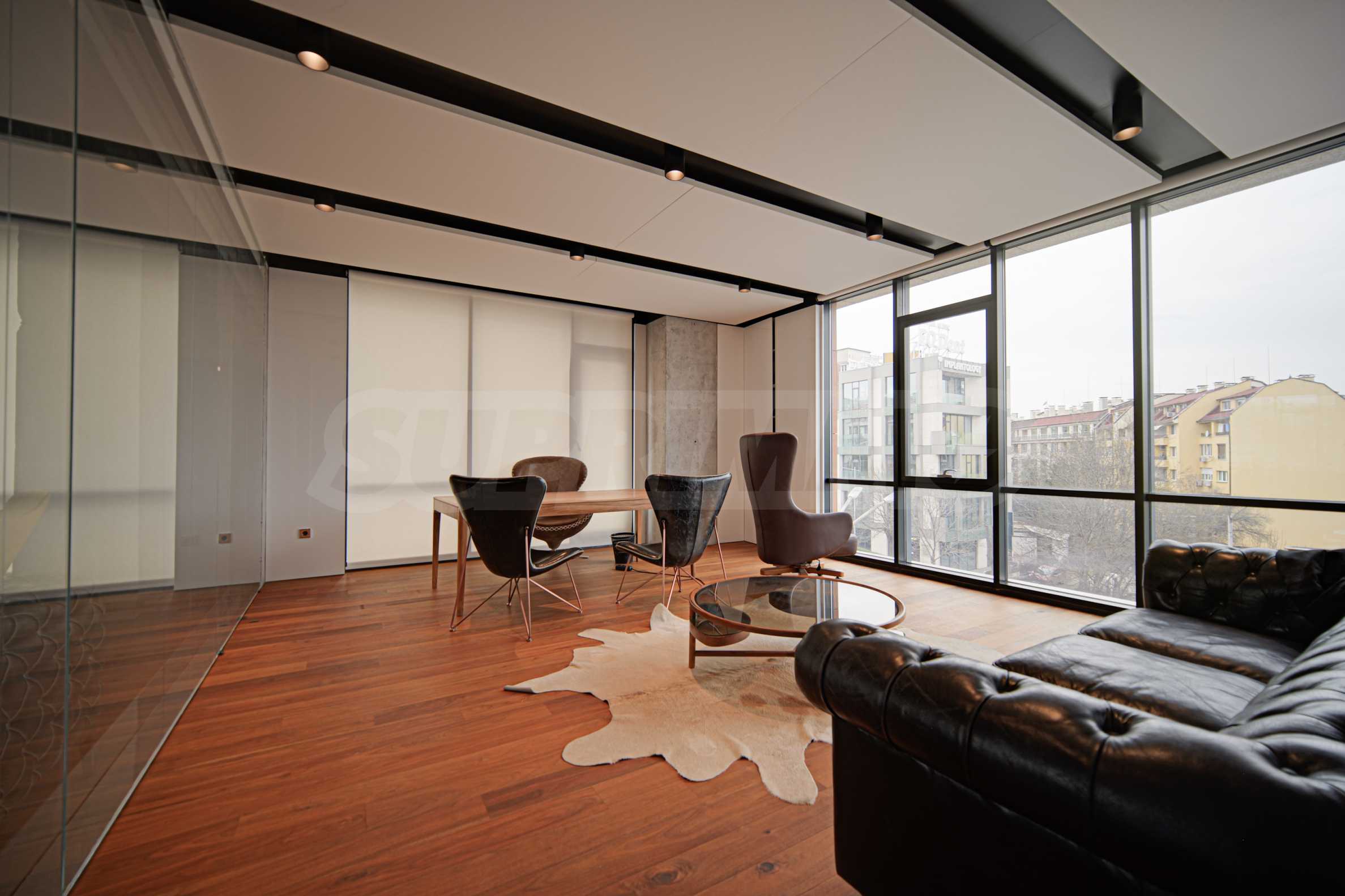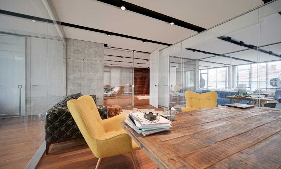 • четыре независимых кабинета, разделенных стеклянными стенами, что делает их светлыми и создает ощущение простора. Каждый из шкафов можно отделить элегантными встроенными жалюзи;