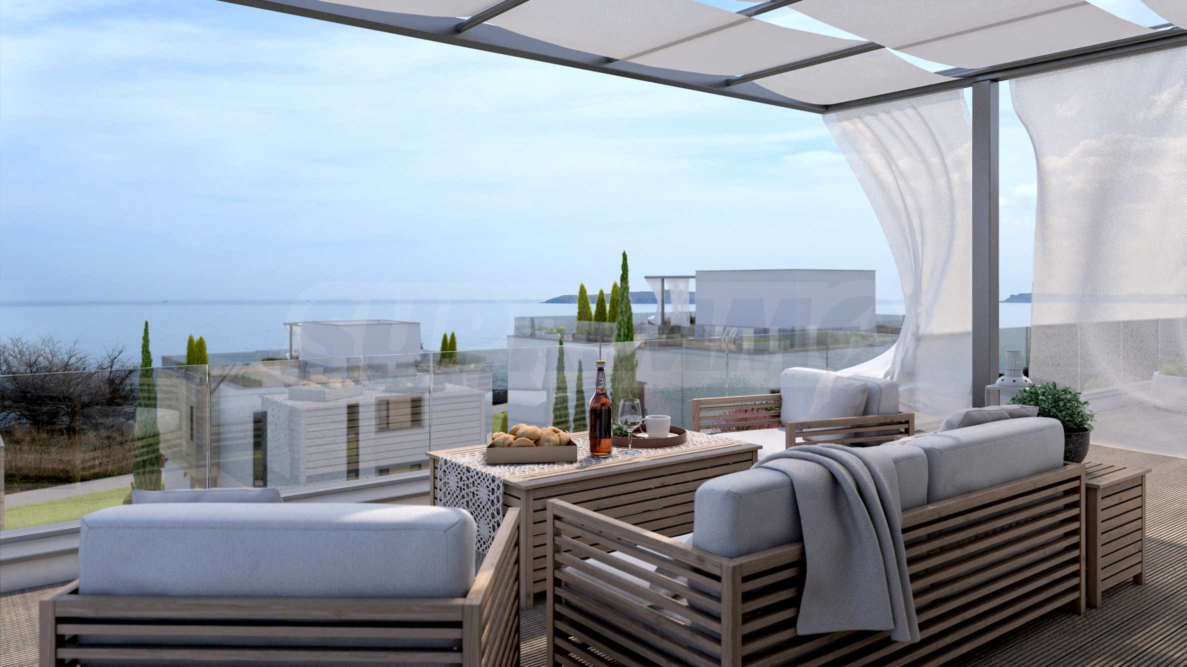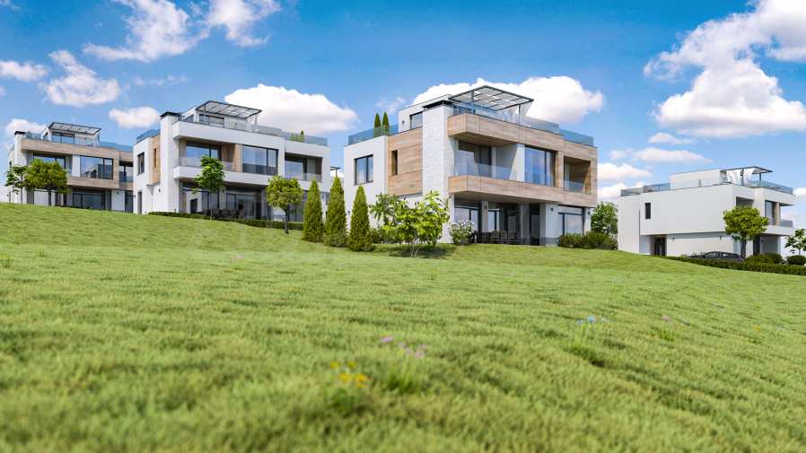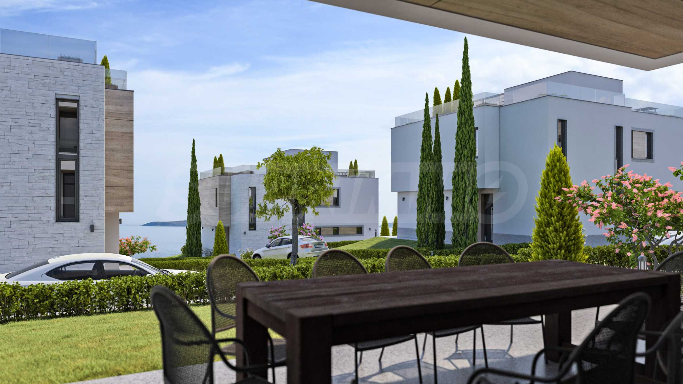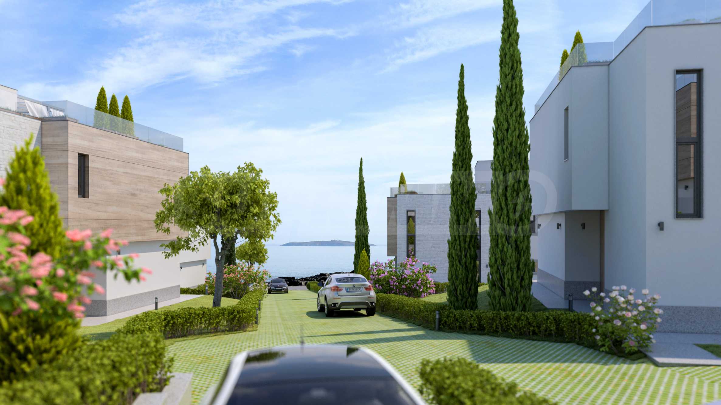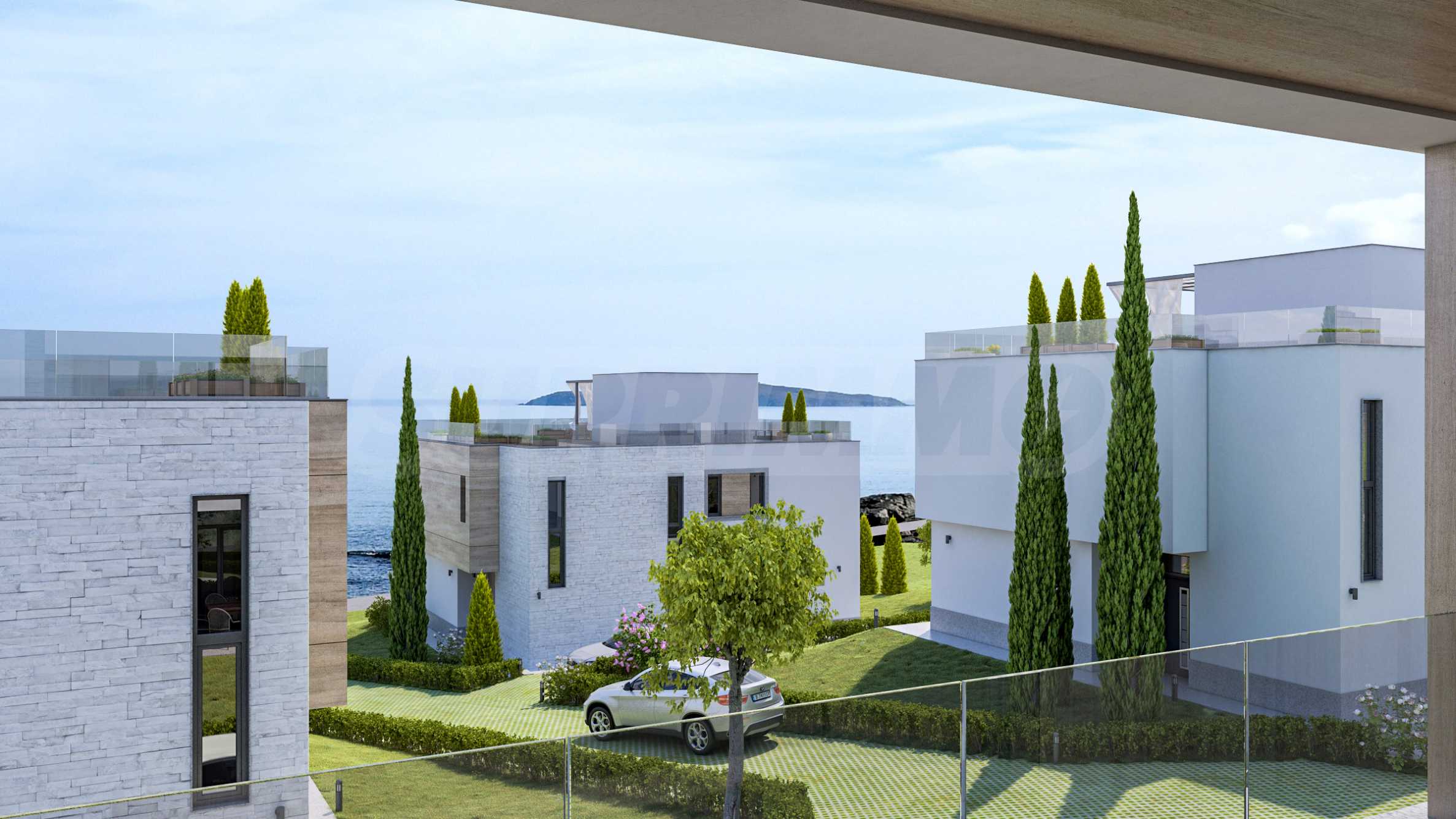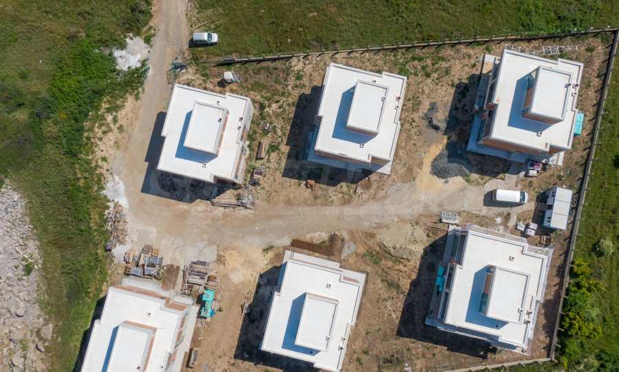 Трехуровневые дома ориентированы на море, из окон открывается панорама на морской залив и остров «Св. Иван».