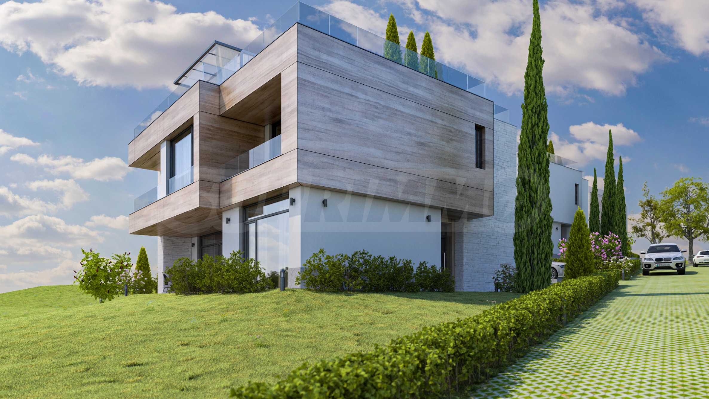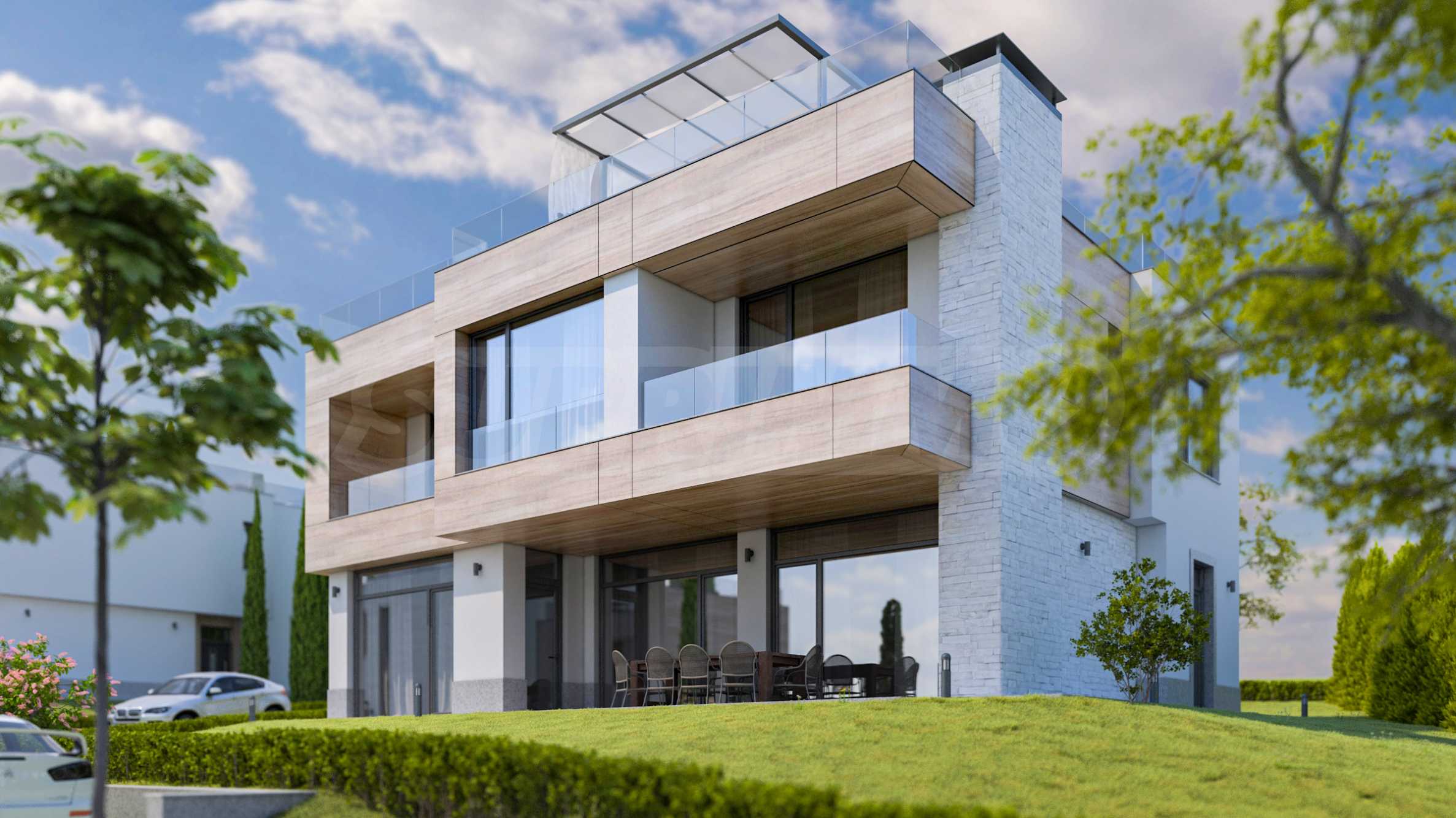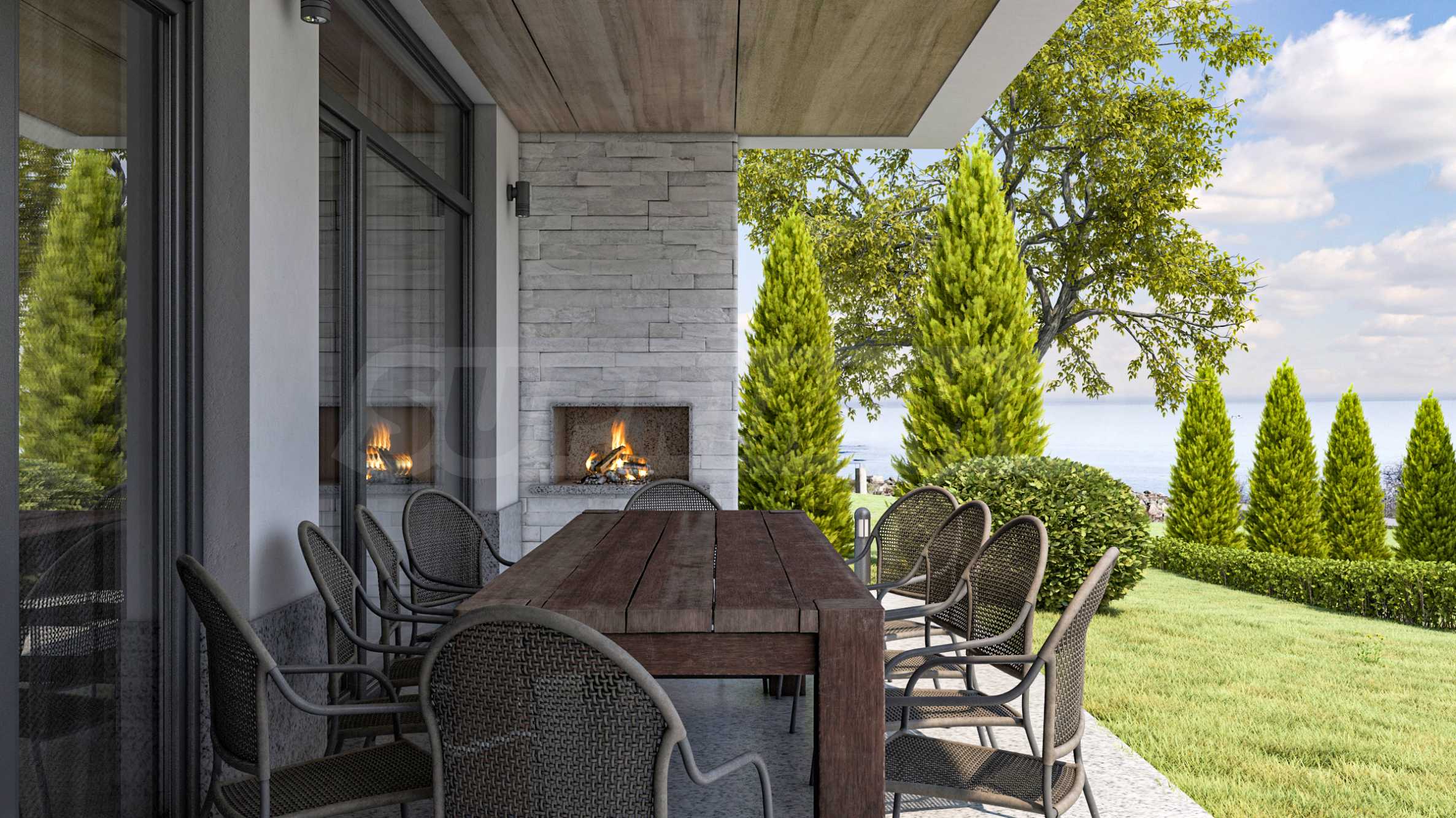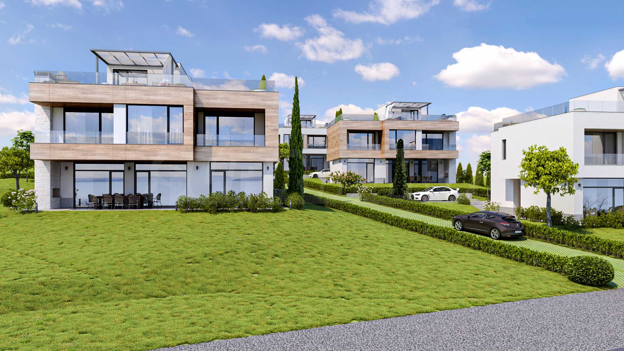Трехуровневые дома ориентированы на море, из окон открывается панорама на морской залив и остров «Св. Иван».