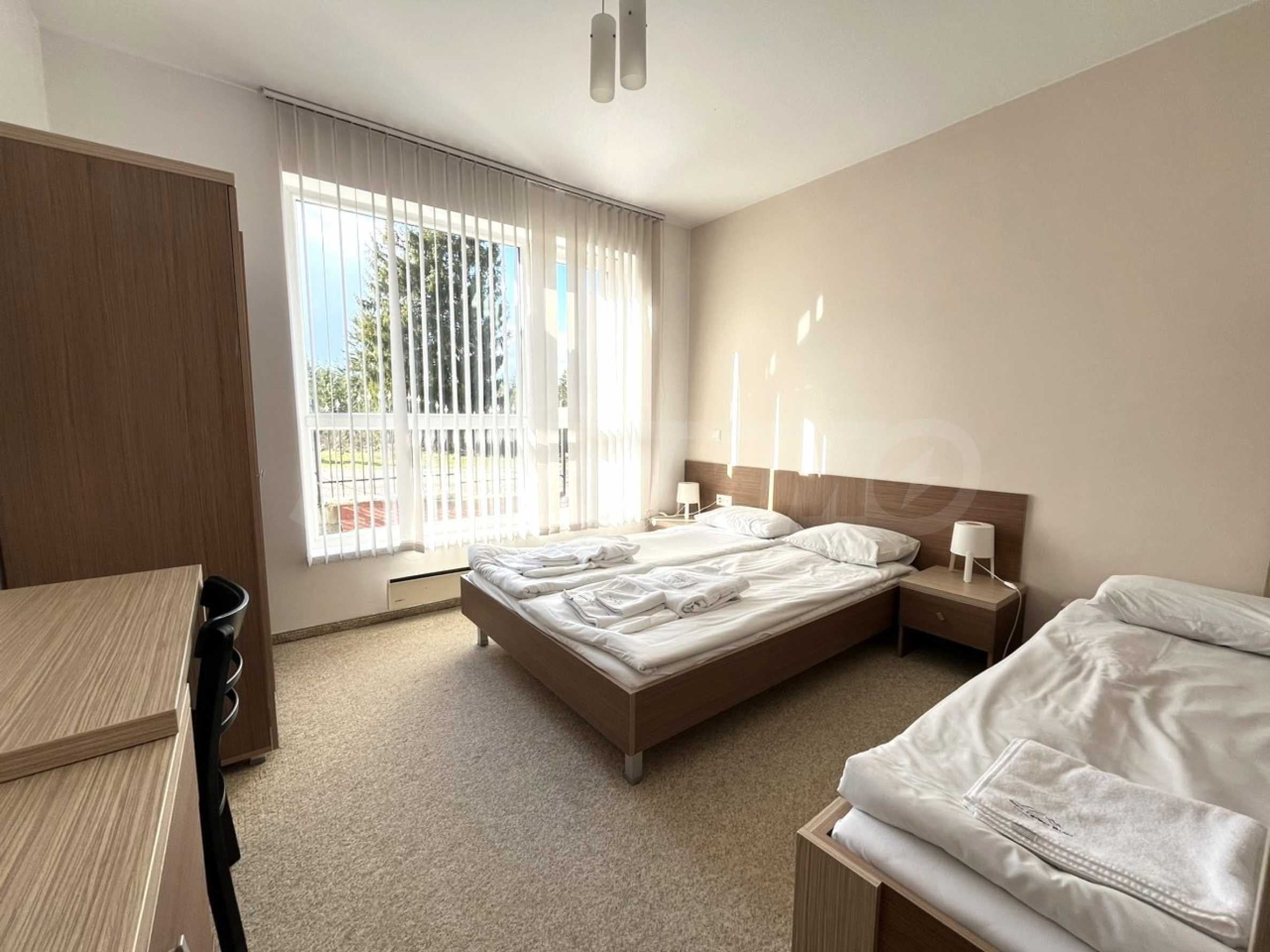 две спальни с ковровым покрытием, качественными матрасами, шкафами и французскими окнами;