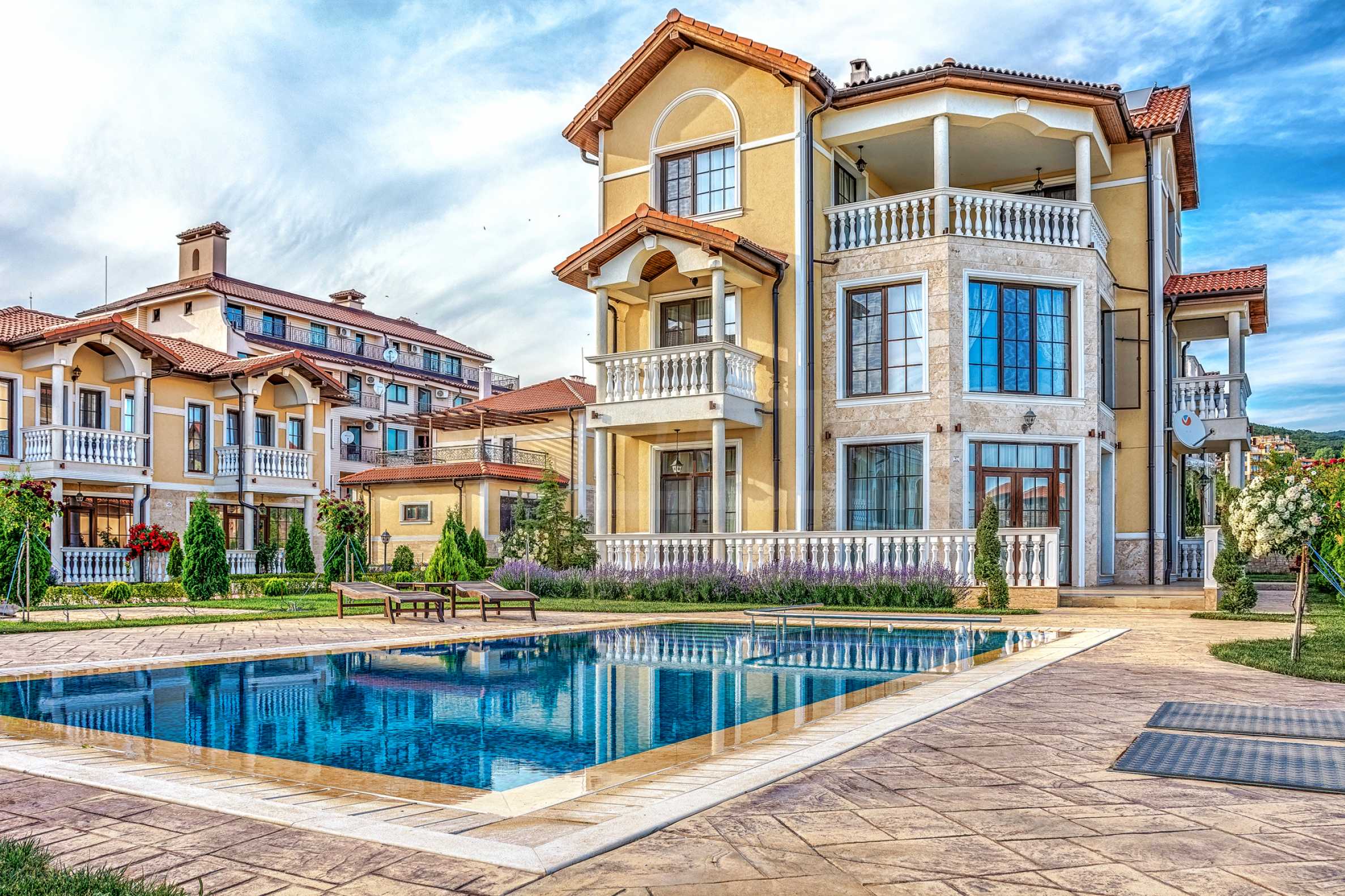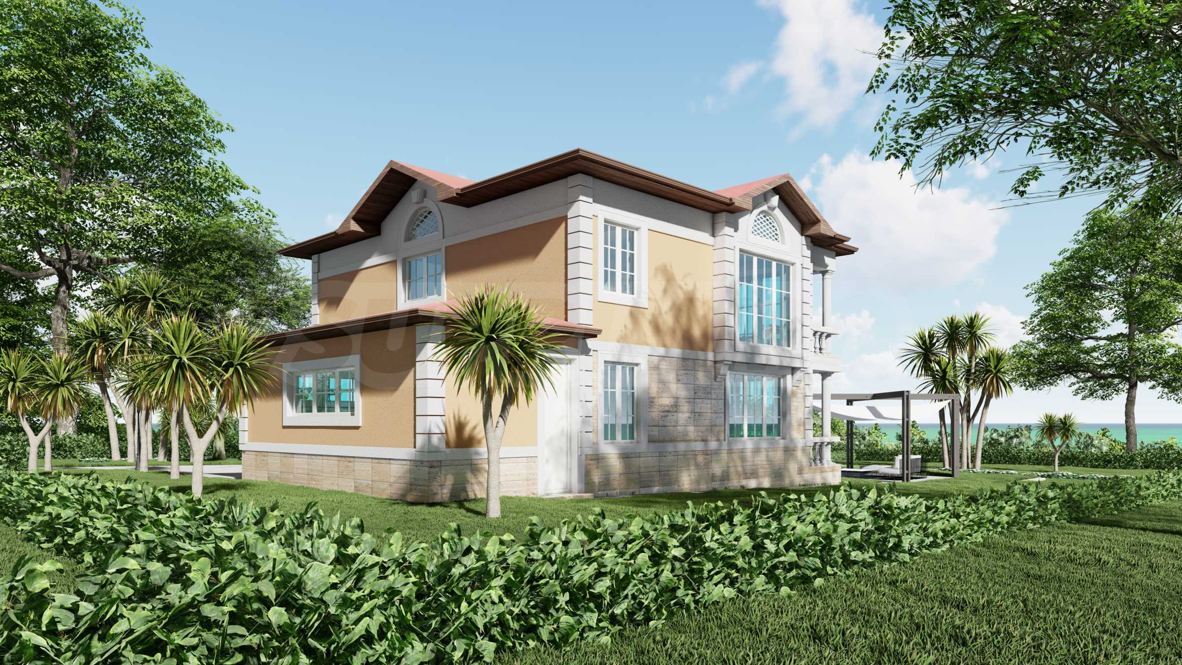 Комплекс состоит из вилл и таунхаусов с просторными собственными дворами, парковочными местами, бассейнами, гаражами, верандами с прекрасным видом на море и залив Солнечного берега.
