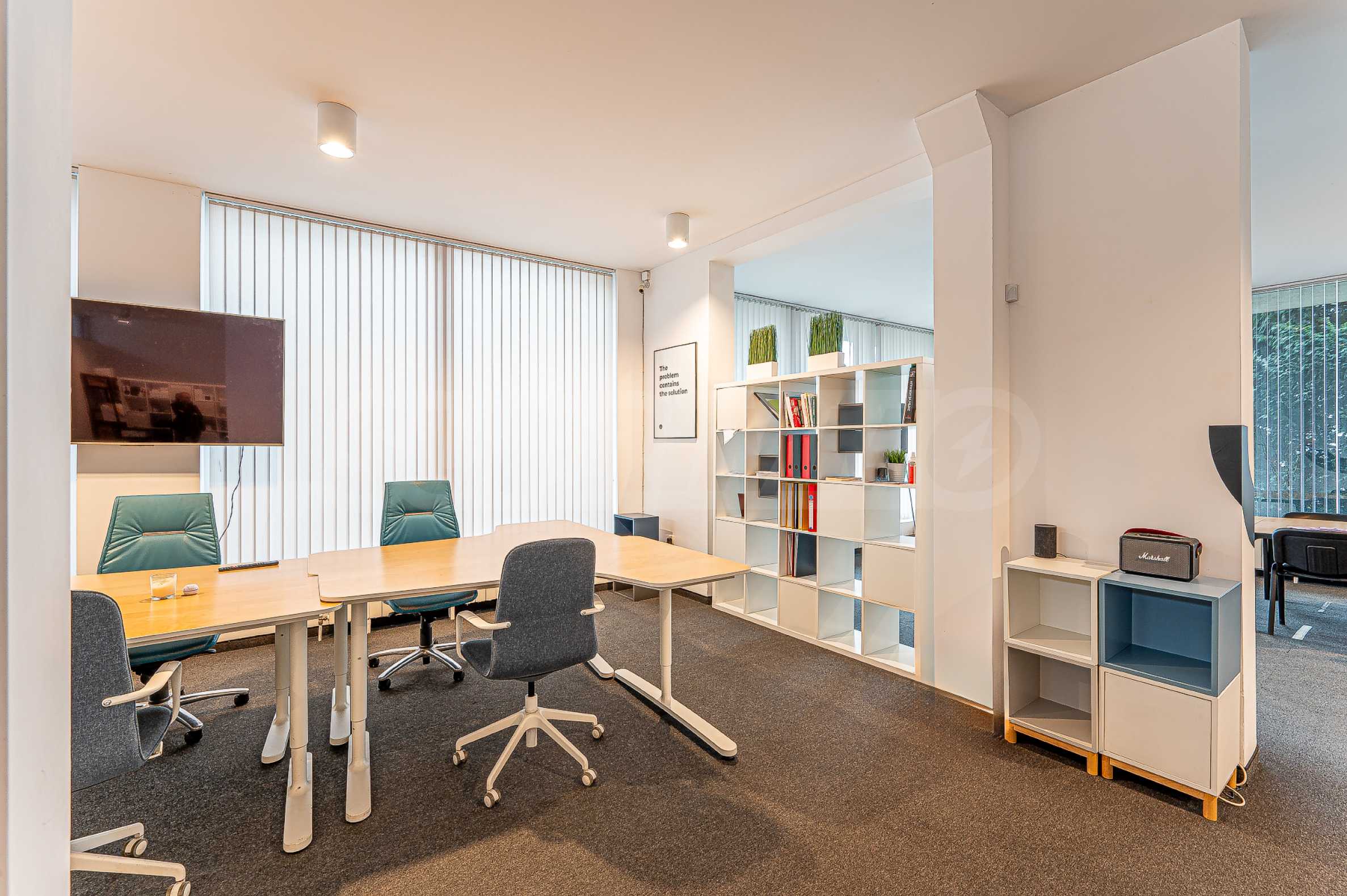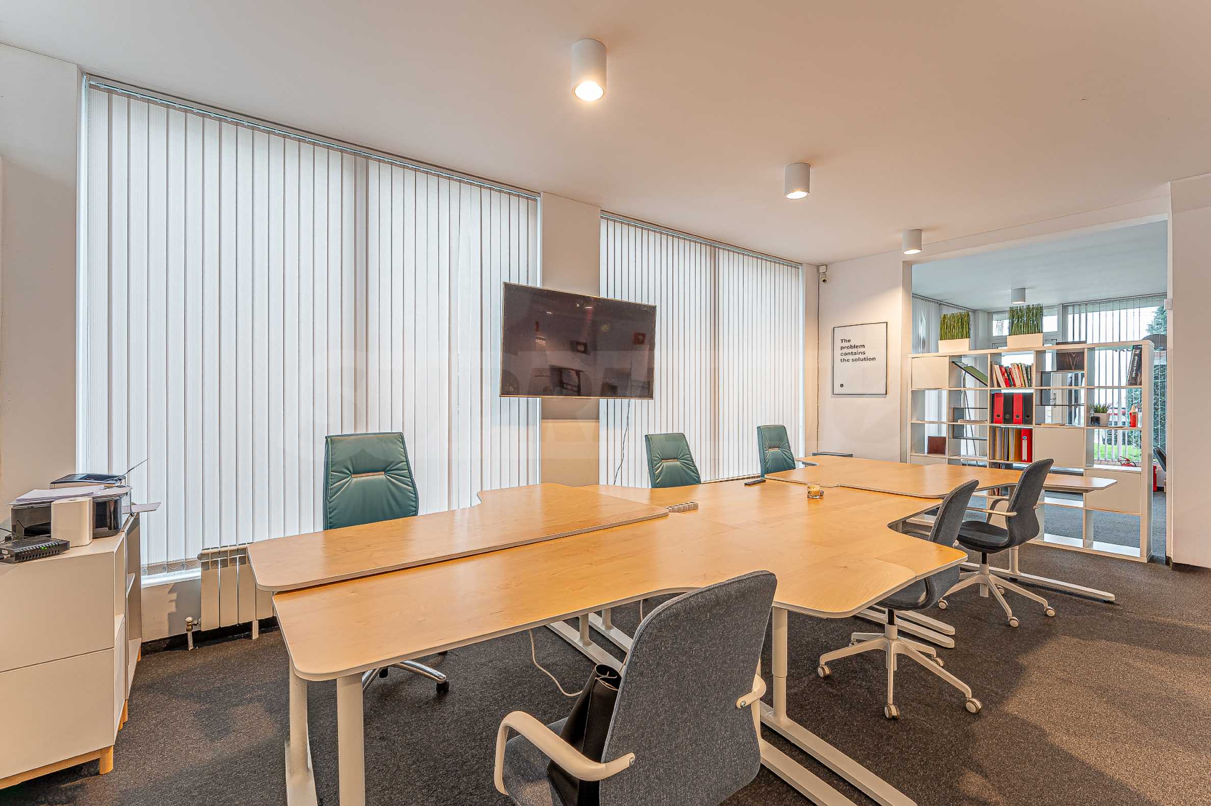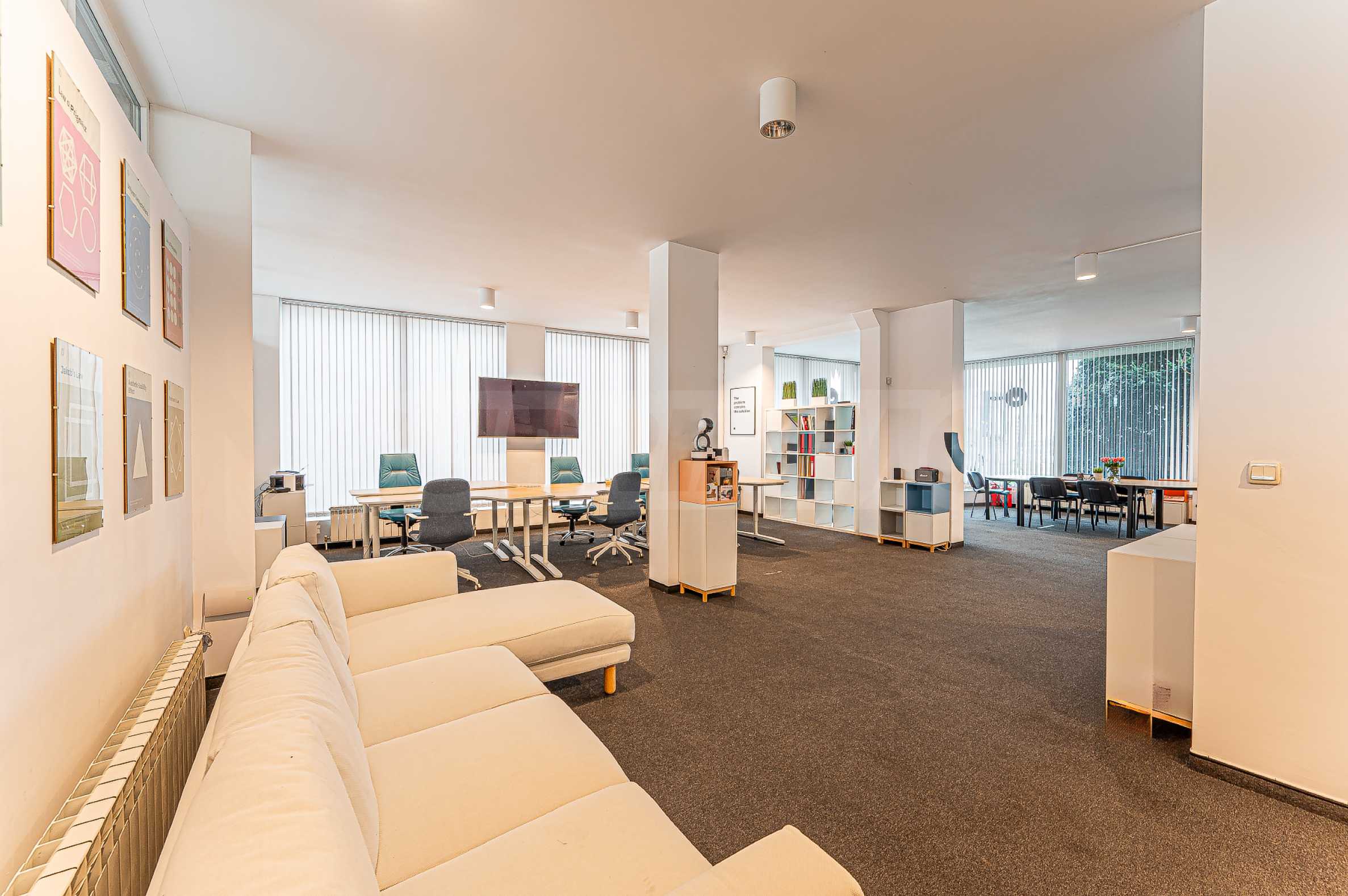 Офис продается полностью меблированным. Есть возможность организовать более удобный для вас способ, а также разместить больше рабочих мест, а также разделить их перегородками. Одно свойство, позволяющее использовать разные макеты и варианты использования.